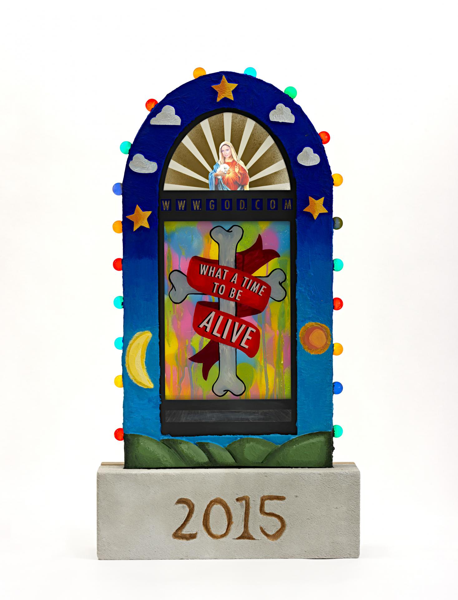 The exhibition features 49 works, drawn from 2,500 submissions, exploring the complexities of the modern world, conflict and war and the beauty of nature. Some works, such as Mahalia Kluwer’s altar-shaped sculpture featuring Paris Hilton in place of the Virgin Mary, comment on contemporary values in a satirical way, while others explore social and philosophical issues.