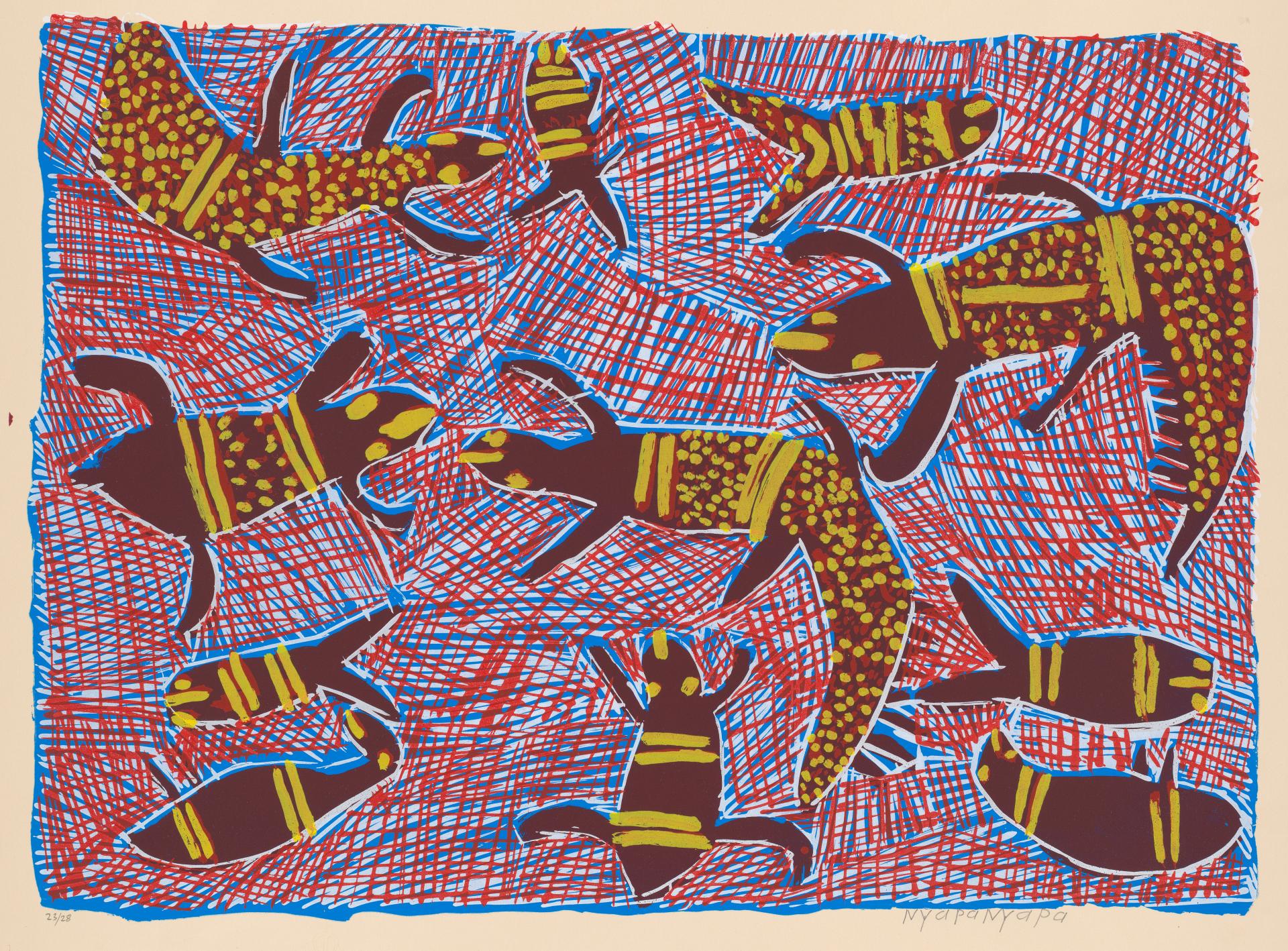 A highlight of the exhibition will be a floor-to-ceiling installation of seventeen of Ms N Yunupiŋu’s colourful screenprints, linocuts and lithographs representing geckos, turtles and lizards, which have informed the interactive spaces in the exhibition. Inspired by these works on display, children can explore and along the way learn the names of animals and how to count to five in Yolŋu Matha, the language of Yolŋu people, in a creative counting game. A specially produced film will also allow children to learn how bark is collected and prepared for painting, and be inspired to create their own digital bark paintings, choosing from a colour palette of Ms N Yunupiŋu’s natural ochres, or Djerrkŋu’s vivid and paints repurposed from disposable printer ink cartridges.