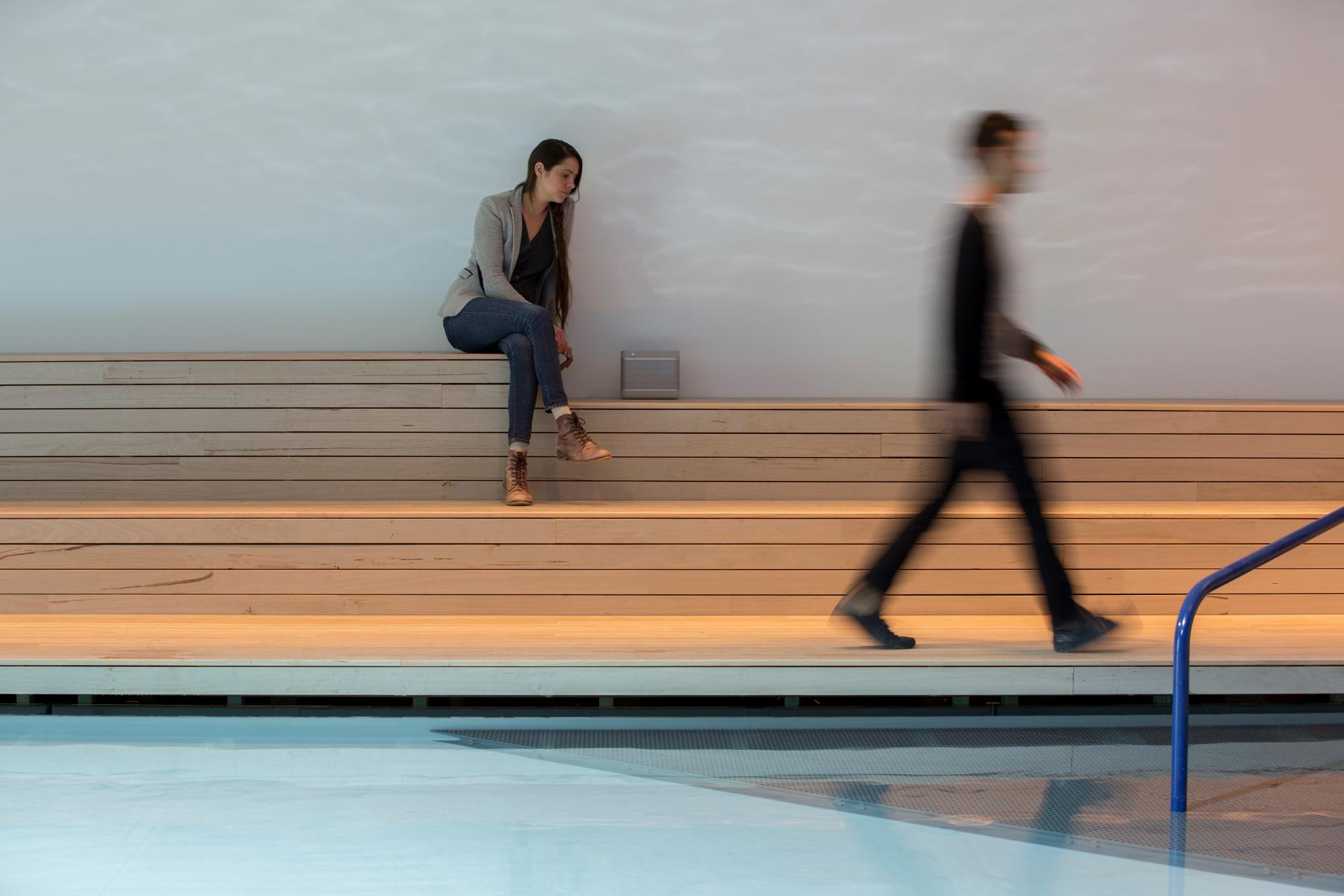 The installation also includes a series of eight ‘lanes’ that present audio excerpts from eight prominent Australian figures who share their personal stories to further reveal the relationship between the pool, its architecture and Australian cultural identity: Olympic gold medal winning swimmers Ian Thorpe and Shane Gould; environmentalist and 2007 Australian of the Year Tim Flannery; fashion designers Romance Was Born; writer of best-selling book The Slap Christos Tsiolkas; winner of the 2012 Miles Franklin Prize Anna Funder; Indigenous art curator Hetti Perkins and Australian rock musician Paul Kelly.