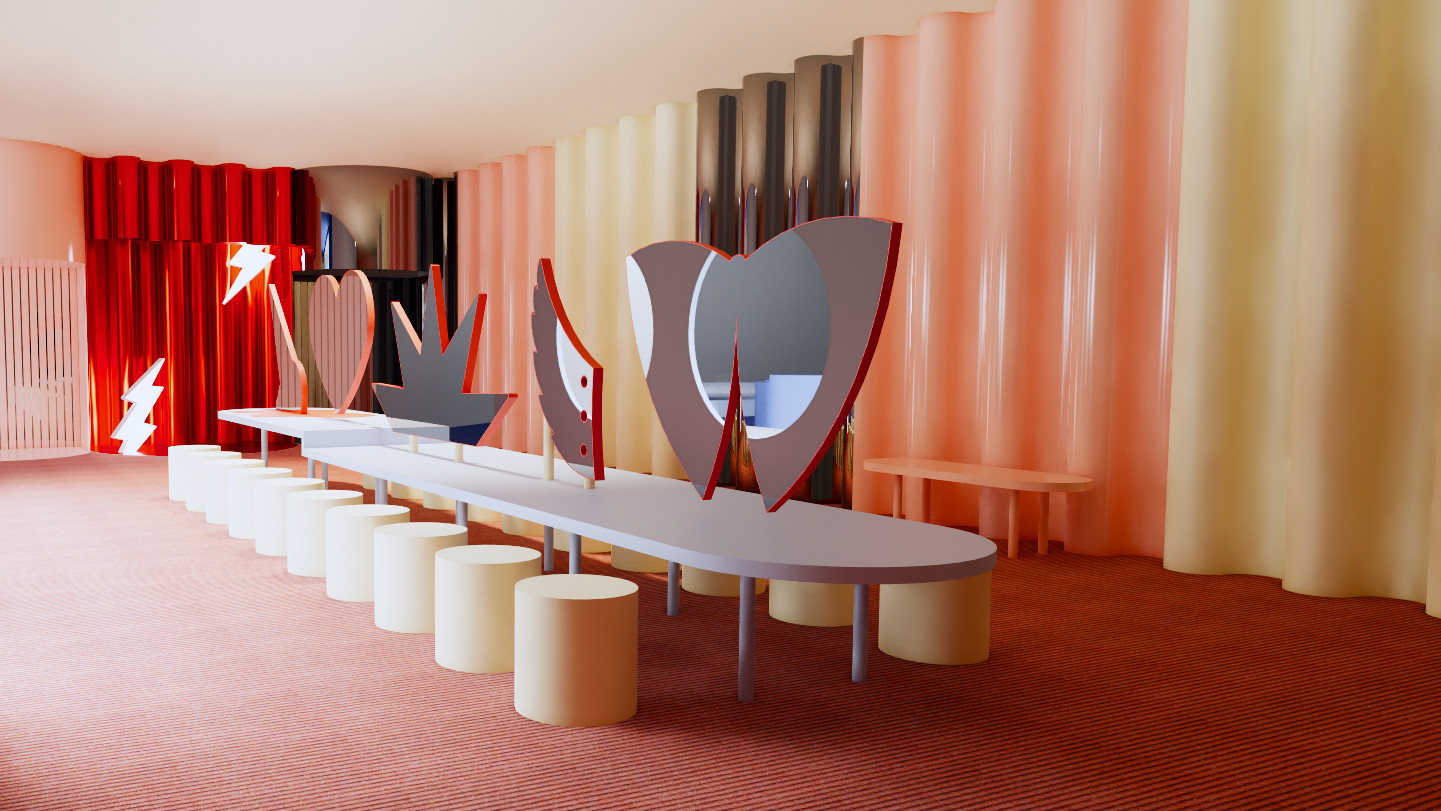Another major highlight of the exhibition is the interactive dress-up zone, featuring costumes made by Brynna Lowen, a Melbourne-based costume designer and maker. Children can try on a collection of costumes made especially for the exhibition, in the shape of hearts, stars and lightning bolts. Mirrors designed by Brustman, inspired by classic vanities, let children admire their party-ready looks and fully immerse themselves in the moment.