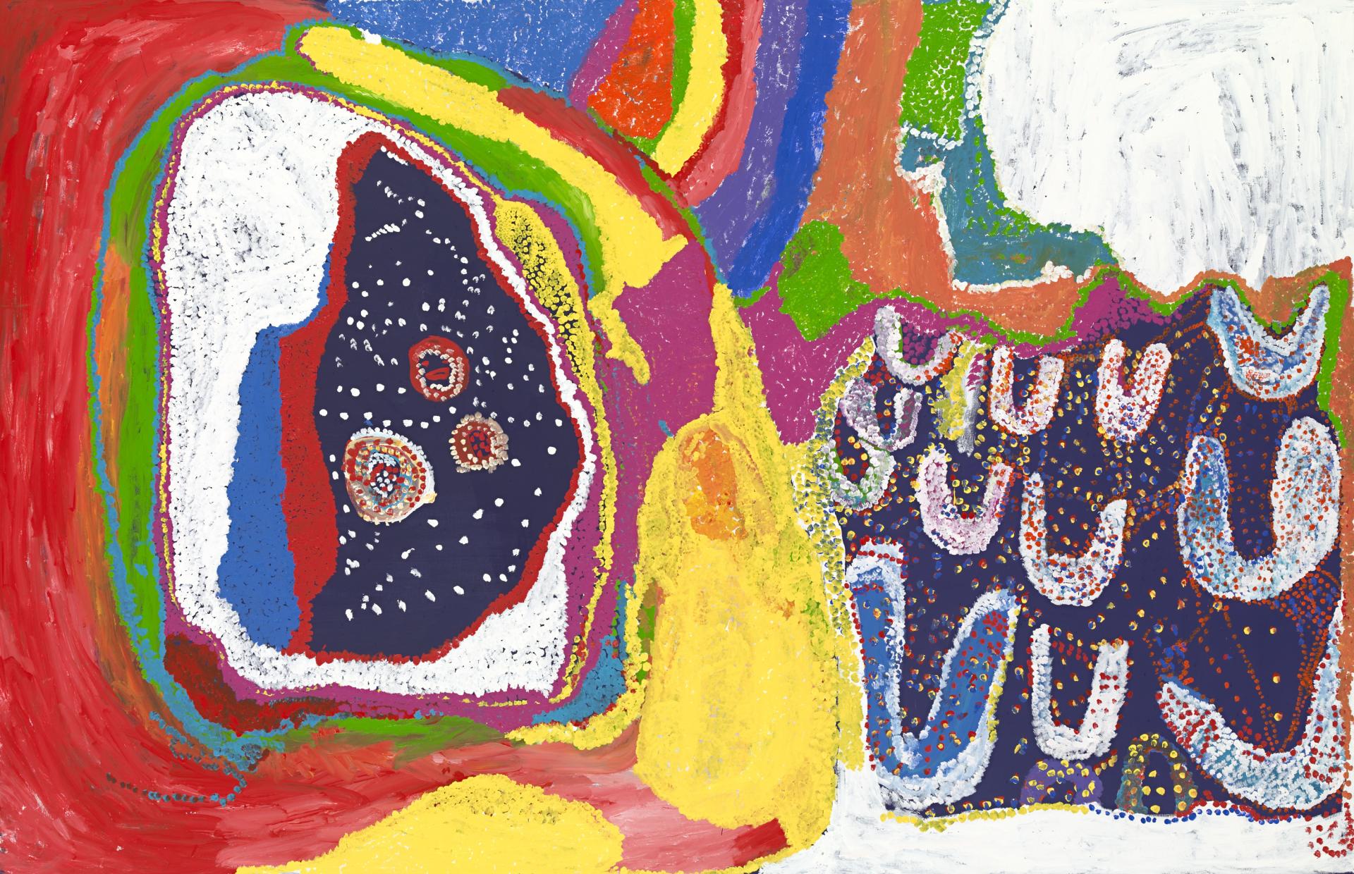 Large scale works by one of Australia’s most prominent contemporary artists Emily Kam Kngwarray will be an exhibition highlight, including the painting Anwerlarr anganenty (Big yam Dreaming)1995, measuring approximately three by eight metres, which travelled to the Royal Academy of Arts, London as part of the Australia exhibition in 2013. Emily Kam Kngwarray, Judy Watson and Yvonne Koolmatrie, all featured in this exhibition, represented Australia at the Venice Biennale in 1997 in a landmark moment which acknowledged the importance of Indigenous women’s art practice on an international scale.