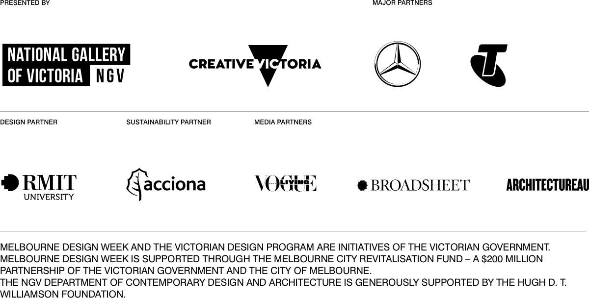 Melbourne Design Week (MDW) is an annual 11-day program of talks, tours, exhibitions and workshops that celebrate and interrogate design through its varied disciplines, including: communication design, industrial design, service design, gaming, architecture, landscape architecture, urban design, fashion, craft and functional art. MDW is an opportunity for people within these disciplines — including designers, educators, thinkers and businesses — to come together to share ideas, show and sell new work and consider how design can be used as a force for good in an increasingly complex and precarious world.