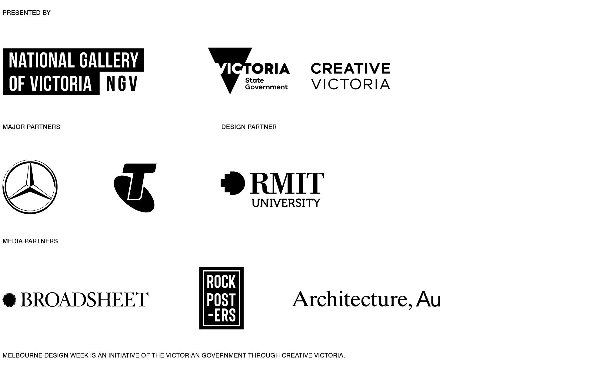 In reaction to the growth in the influence, complexity and ubiquity of design, Melbourne Design Week calls for meaningful opportunities for the public, government, industry and the design sector to meet on common ground, and to experience, examine, communicate and think about design.