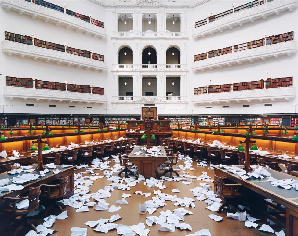 Born 1972, Melbourne, Victoria; lives and works in Melbourne. Recent projects include The Space Between Our Hands, Echigo-Tsumari Snow Art Project, Matsudai, Japan, 2012, and On the Nature of Things, Centre for Contemporary Photography, Melbourne, 2012. In 2010–11 Coulter was the recipient of the Georges Mora Foundation Fellowship at the State Library of Victoria, culminating in the project 10,000 Paper Planes, 2011, which involved the release of 10,000 paper planes into the domed La Trobe Reading Room of the library, for which he was awarded the Keith and Elisabeth Murdoch Travelling Fellowship, 2011.