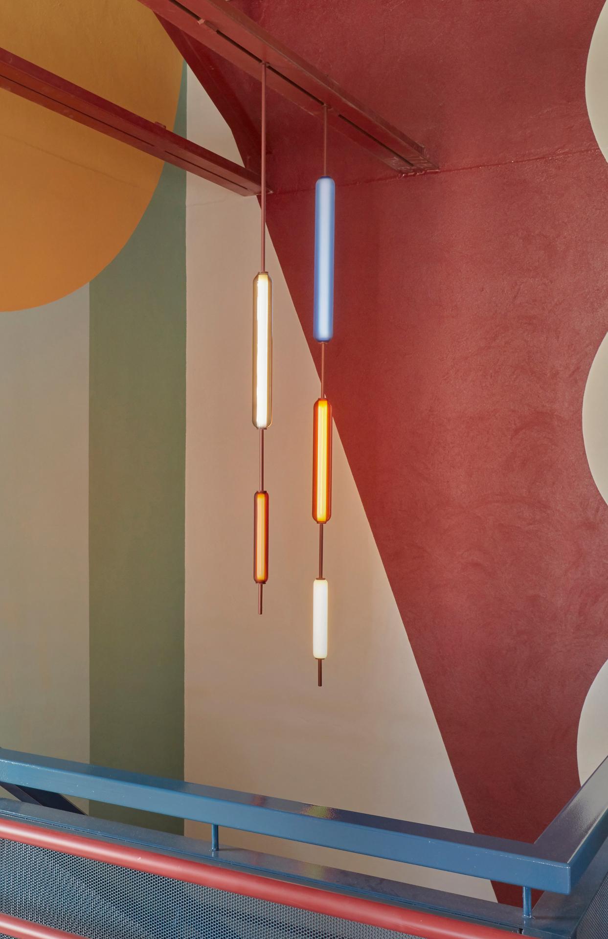 The titular ‘flask’ refers to individually sculpted glass luminaires, which are customisable in colour, size and shape, linked together by a small family of brass and aluminium components that connect, mount and suspend. The sustainable design utilises energy-efficient LED technology for lighting output and is 100 percent Australian-made, with most components fabricated in Victoria. The versatile system can be adapted to suit client’s design needs, from intimate bedside wall lights to large-scale lobby installations, and can be reconfigured for future projects; Linacre has also employed the Flask system to create conceptual lighting sculptures and installations.