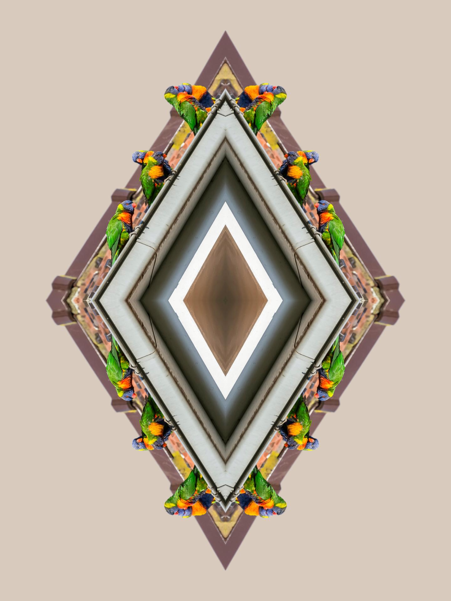 This new print is drawn from Morris’s public installation, Rainbow Lorikeet #2, 2022, which is featured on the walls of the St Kilda Foreshore Vaults. To create the work, Morris studied the rhythm and habits of native birds interacting with various urban spaces, using the birds’ resilience to reflect on how Indigenous knowledge and culture also survives and adapts to continual, irreversible change.