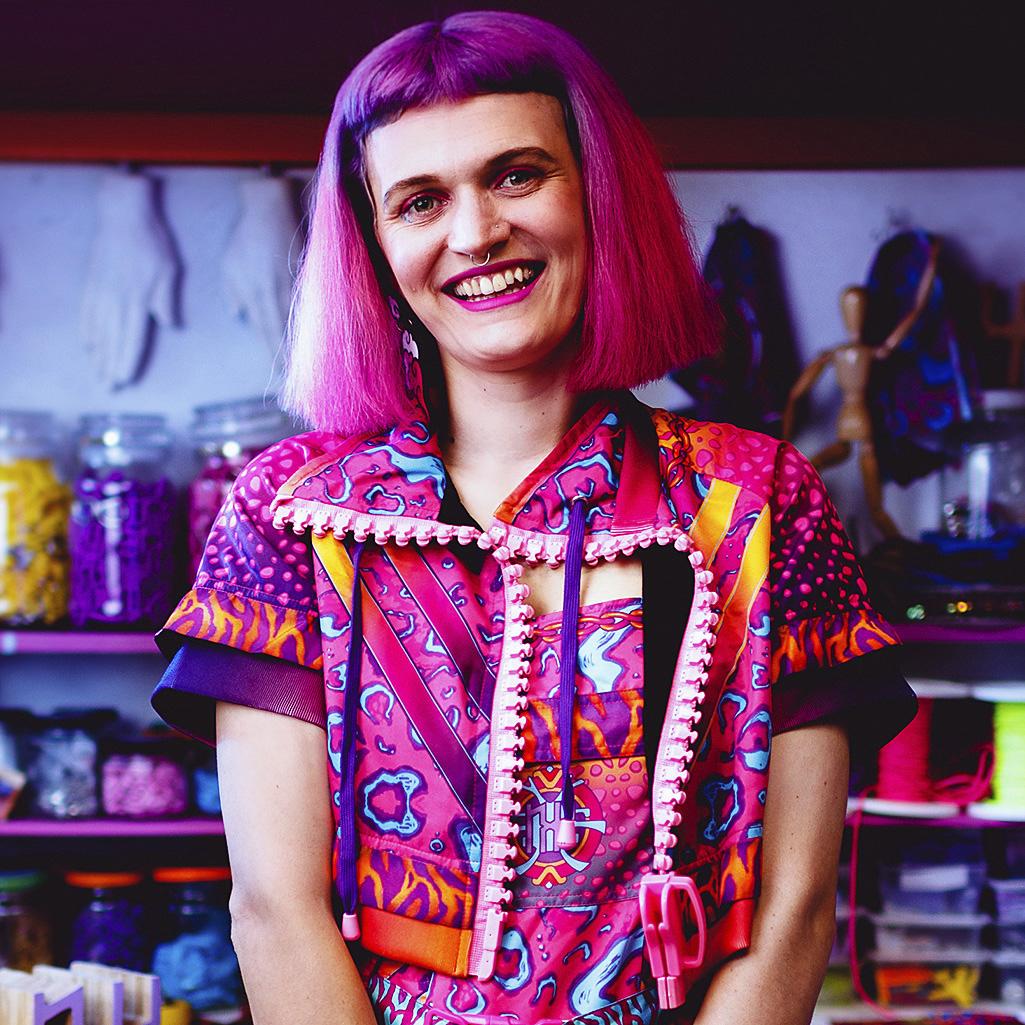 Nixi Killick is an independent fashion designer working in contemporary streetwear. Worn by the likes of Lady Gaga, Sia and Kimbra, Killick’s vibrant, psychedelic and futuristic digital prints are derived from her original watercolour paintings, inspired by her background in circus, performance and the arts. Recent collections see fashion colliding with technology, incorporating laser cutting, body armour and augmented reality components.