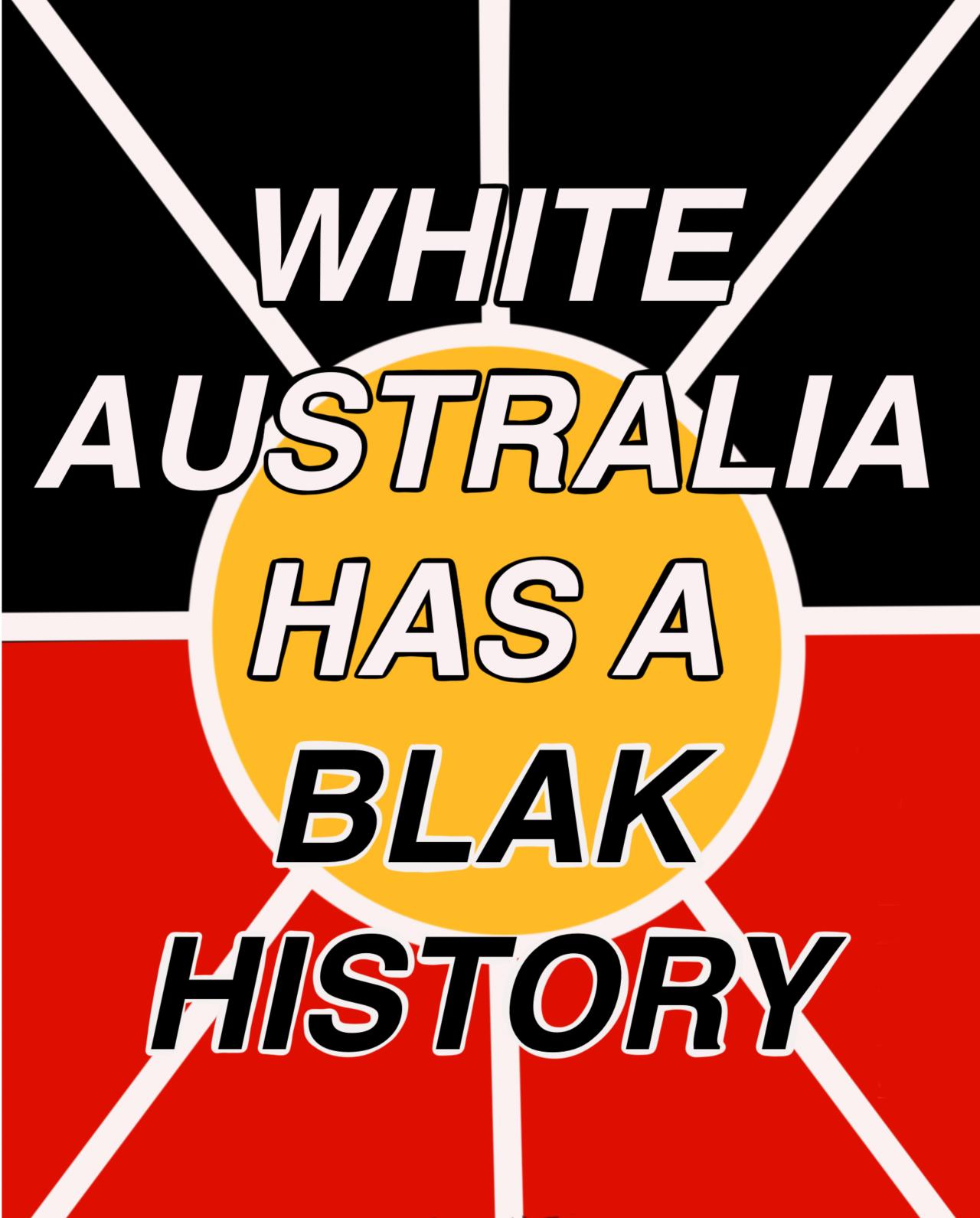 Red’s new work White Australia has a Blak history, 2022, commissioned for Melbourne Now as part of the Print Portfolio project, was created in response to Invasion Day (aka Australia Day). The design comes from a hand-painted sign that Red made for an Invasion Day rally in 2017 – which she has digitally redrawn and printed with Troppo Print Studio in Coburg – demonstrating the confluence of art and activism that often characterises her work. Summoning the iconic slogan that appeared on Mandandanji artist Laurie Nilson’s NAIDOC week poster in 1987, Red draws subtle connections between First Nations activism across the intervening decades, and highlights Australia’s enduring reluctance to meaningfully acknowledge First Nations people and the dispossession at the heart of Australian history. The play on words is not only a celebration of First Nations strength, continuity and sovereignty, but also an allusion to the shadowed history of colonial violence since invasion. For Red, this piece is a gentle reminder to the nation’s citizens that the land they celebrate on always was, and always will be, Aboriginal land.