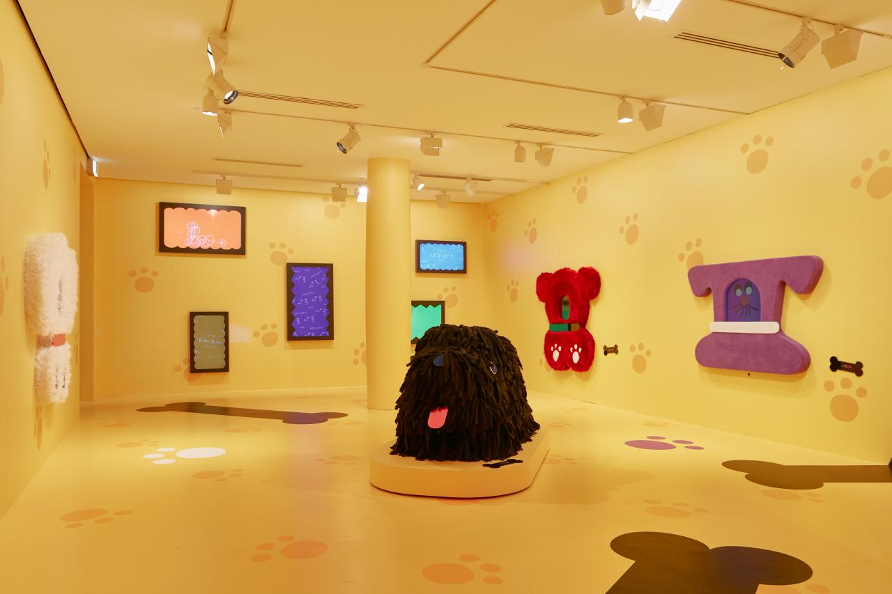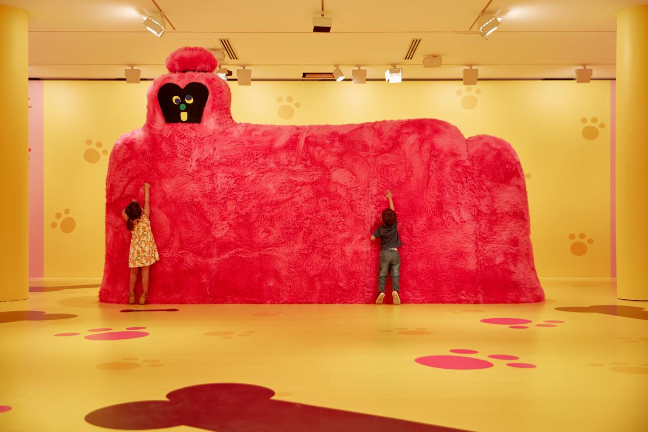 Central to the exhibit is Kawai’s larger-than-life hot pink faux fur sculpture of a dog named Arty (based on the briard breed), which is surrounded by a display of dogs, each sporting colourful coats made from different fluffy materials. Adjacent to the display, and inspired by a long history of puppet making, Kawai has designed a set of theatre booths and a puppet activity for children to make and record performances with a multimedia program. Children can then share these creations with friends and family via social media and email.