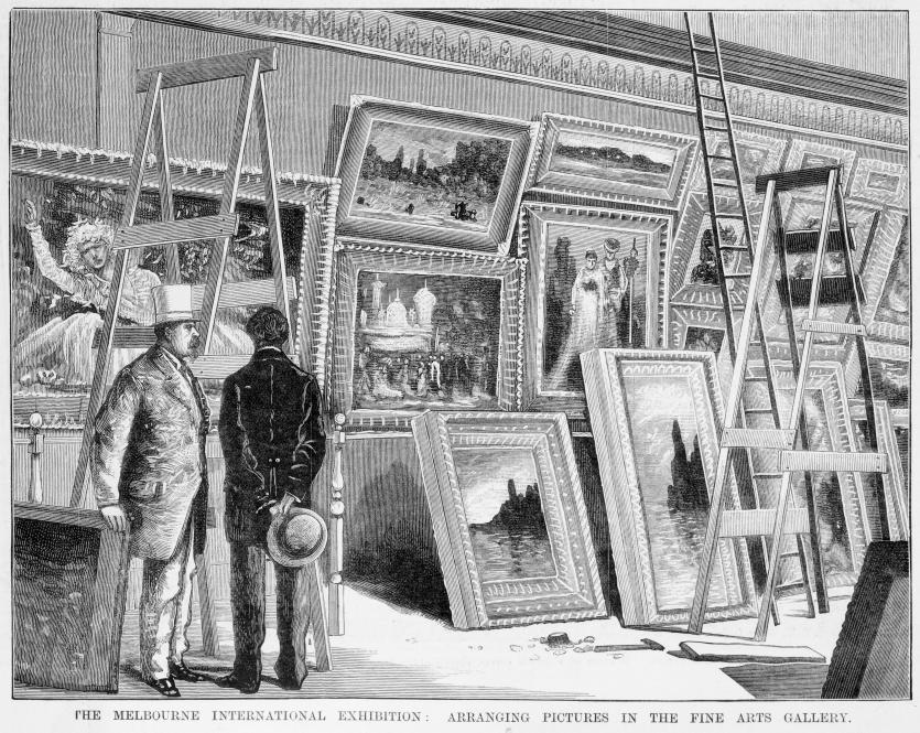 The Melbourne Intercolonial Exhibition, Fine Arts Court, October 6 1875. Calvert, Samuel, engraver. Pictures Collection, State Library of Victoria.