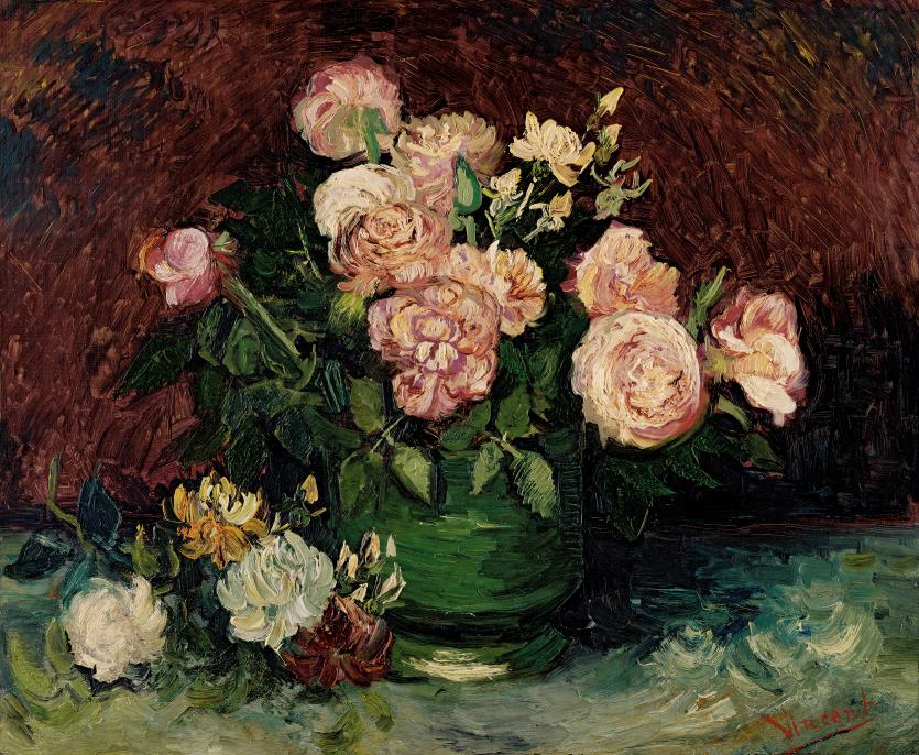 From 1886–87, unable to tolerate formal art classes nor able to find regular models to sit for him, Van Gogh decides to bring himself up to date with recent art movements by applying the principles of each movement to flower paintings.