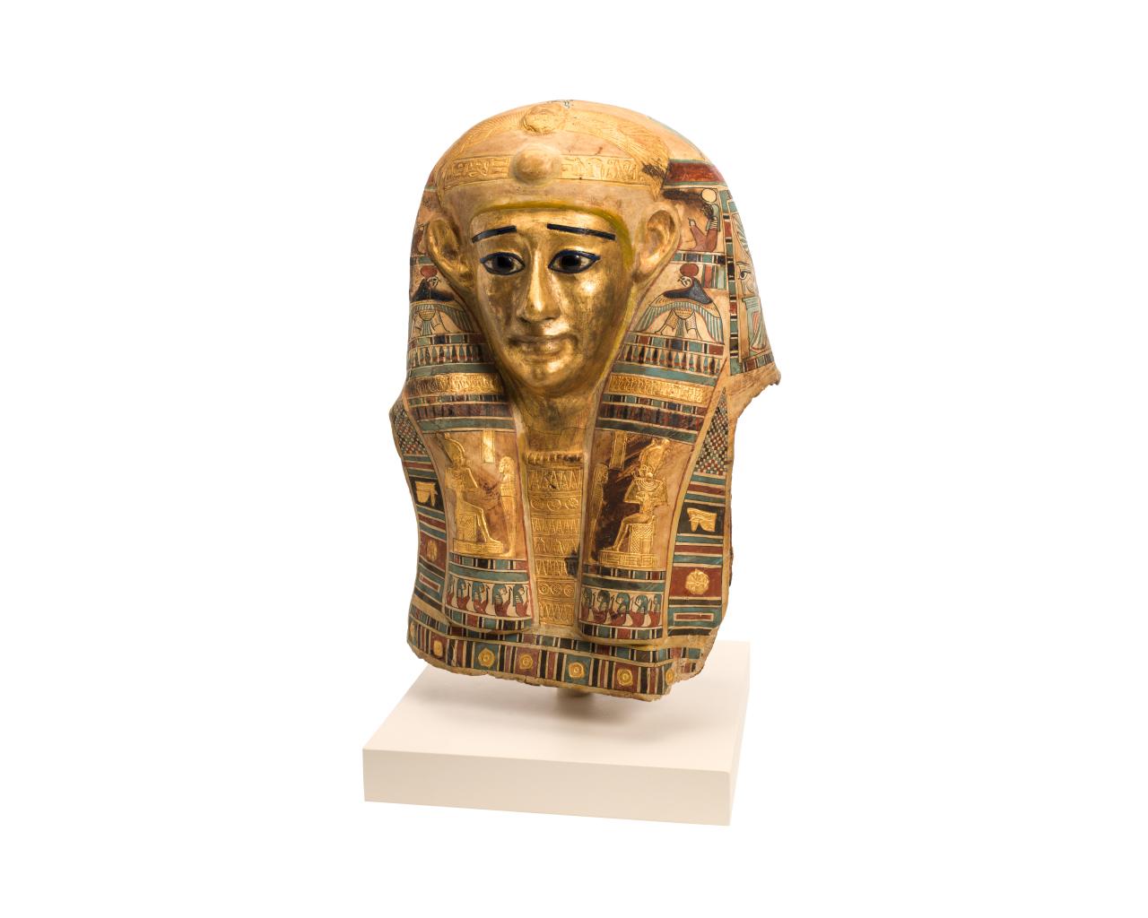 Artwork number 2: Egypt, Head covering of Padihorpasheraset, Roman period, 1st century CE – 2nd century CE, cartonnage, gilt, glass paste, pigment, National Gallery of Victoria, Melbourne, Felton Bequest, 1939 D144-1994
