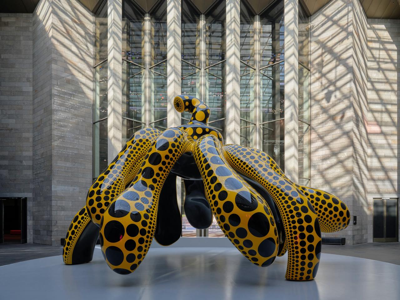 A number of Yayoi Kusama artworks are on display in the public spaces outside the ticketed exhibition.