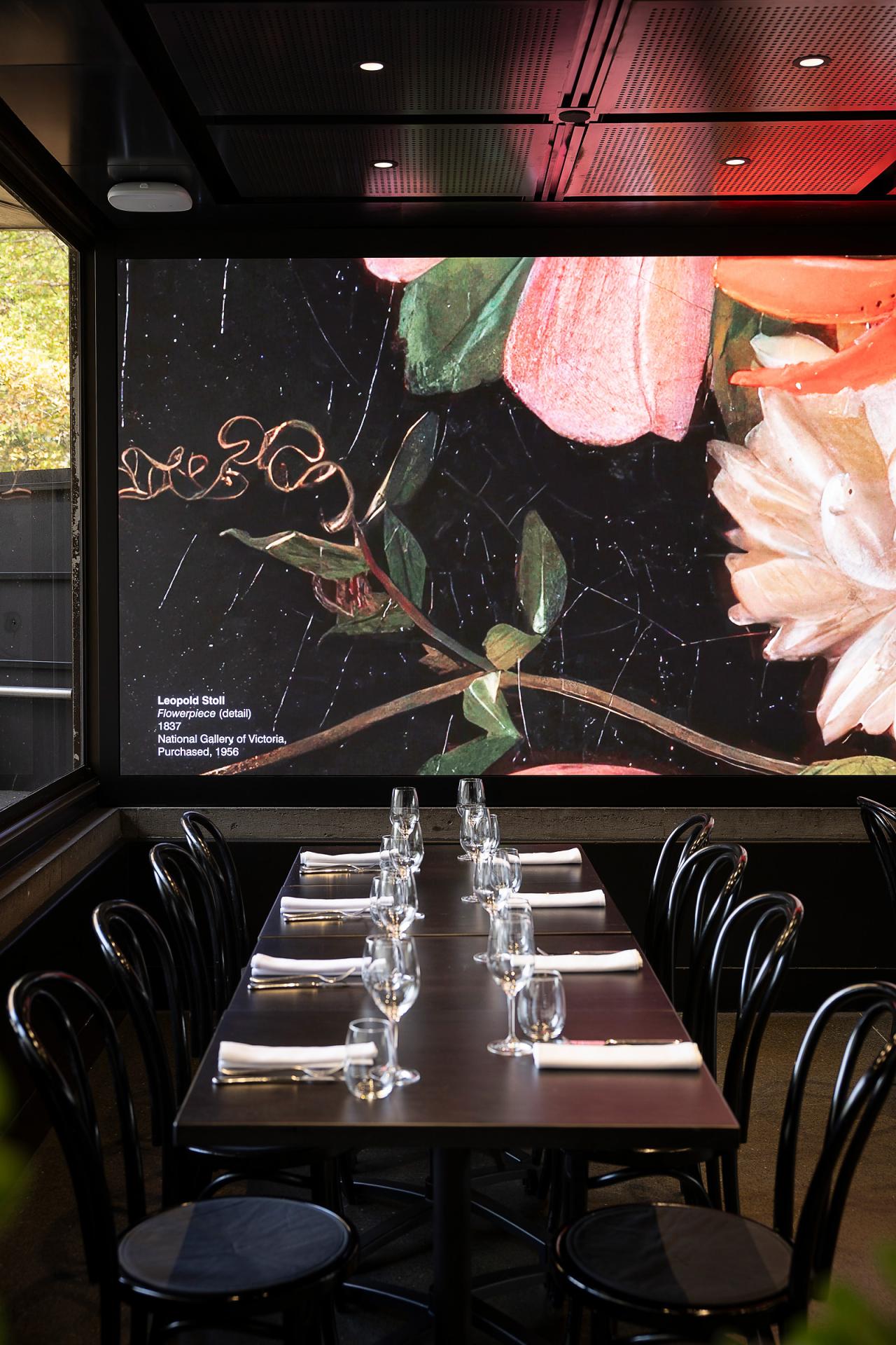 This unique function space is nestled within the Gallery. A premier venue for corporate breakfasts, product launches, intimate dinners, wedding receptions and cocktail functions, Garden Restaurant is located within the heart of Melbourne’s cultural precinct. With a capacity of up to 180 cocktail style and 160 seated dinner (130 with dancefloor, maximum recommended for weddings).