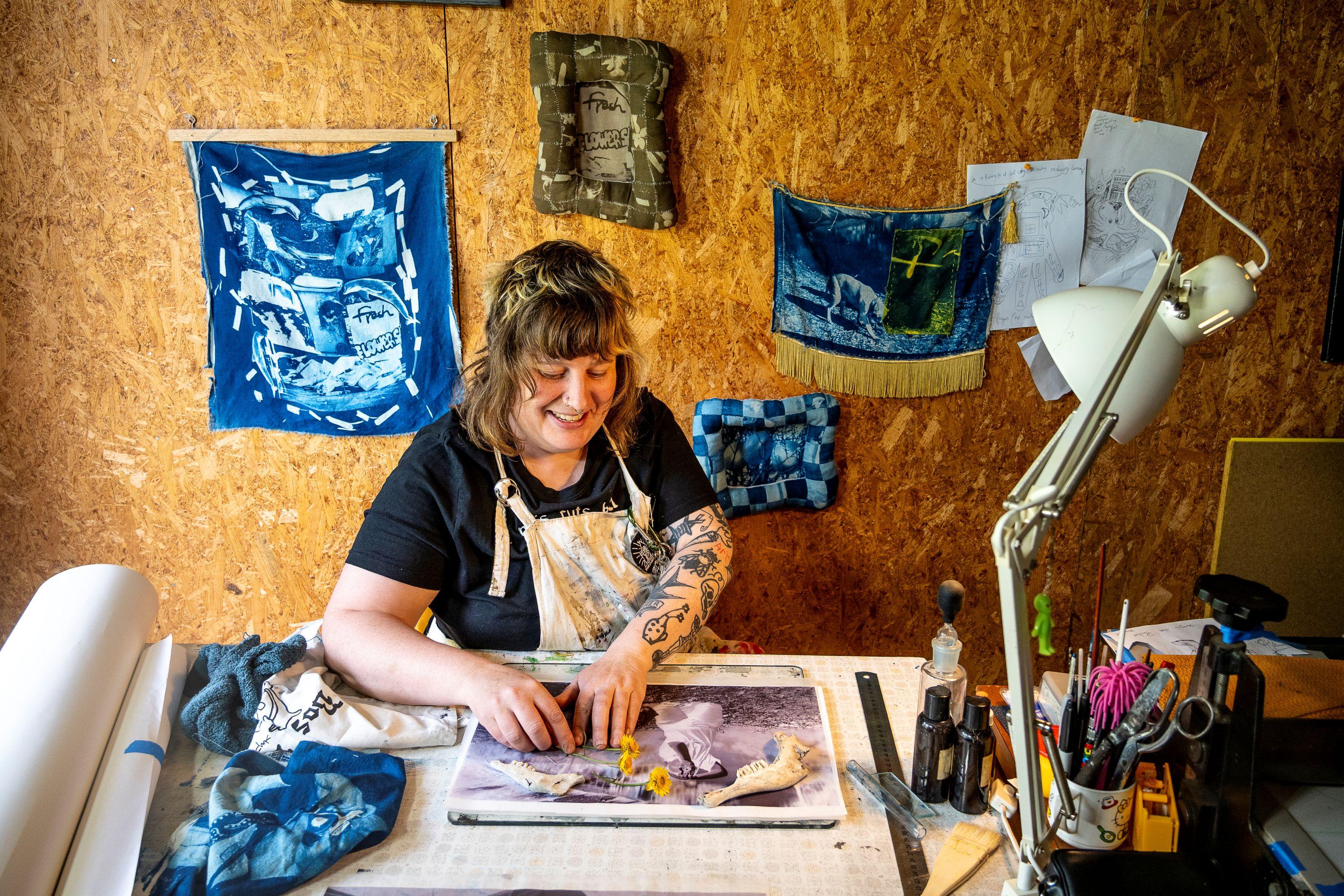 In this hands-on workshop, participants will be introduced to the cyanotype process – a photographic technique that uses sunlight or UV to create striking blue-toned prints. Guided by multidisciplinary artist Emma Armstrong-Porter, participants will learn how to create and compose images for cyanotype exposure, experimenting with materials and forms to produce their own unique prints.