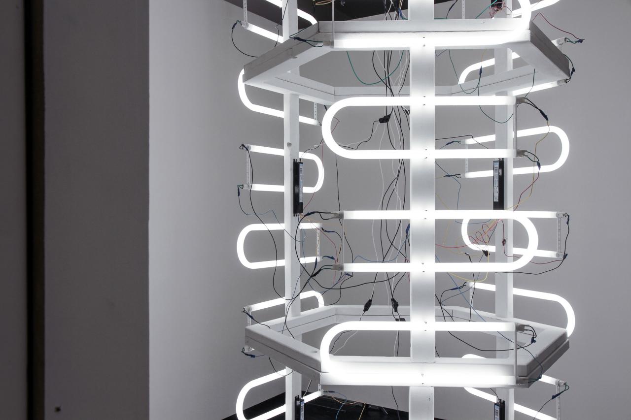 Blinside presents new site-specific work by three artists who investigate spatially diverse installations. Fly – Sky High Majed Fayad reconstructs the seemingly timeless space of an Emirates ‘flight’ lounge in Gallery One as an approach to consumerism and capitalism invading the Middle East. In Gallery Two, Meagan Streader and Genevieve Felix Reynolds’ 579X425X337 is a response to the Euclidian architecture of the gallery through geometry, light and abstract painting.