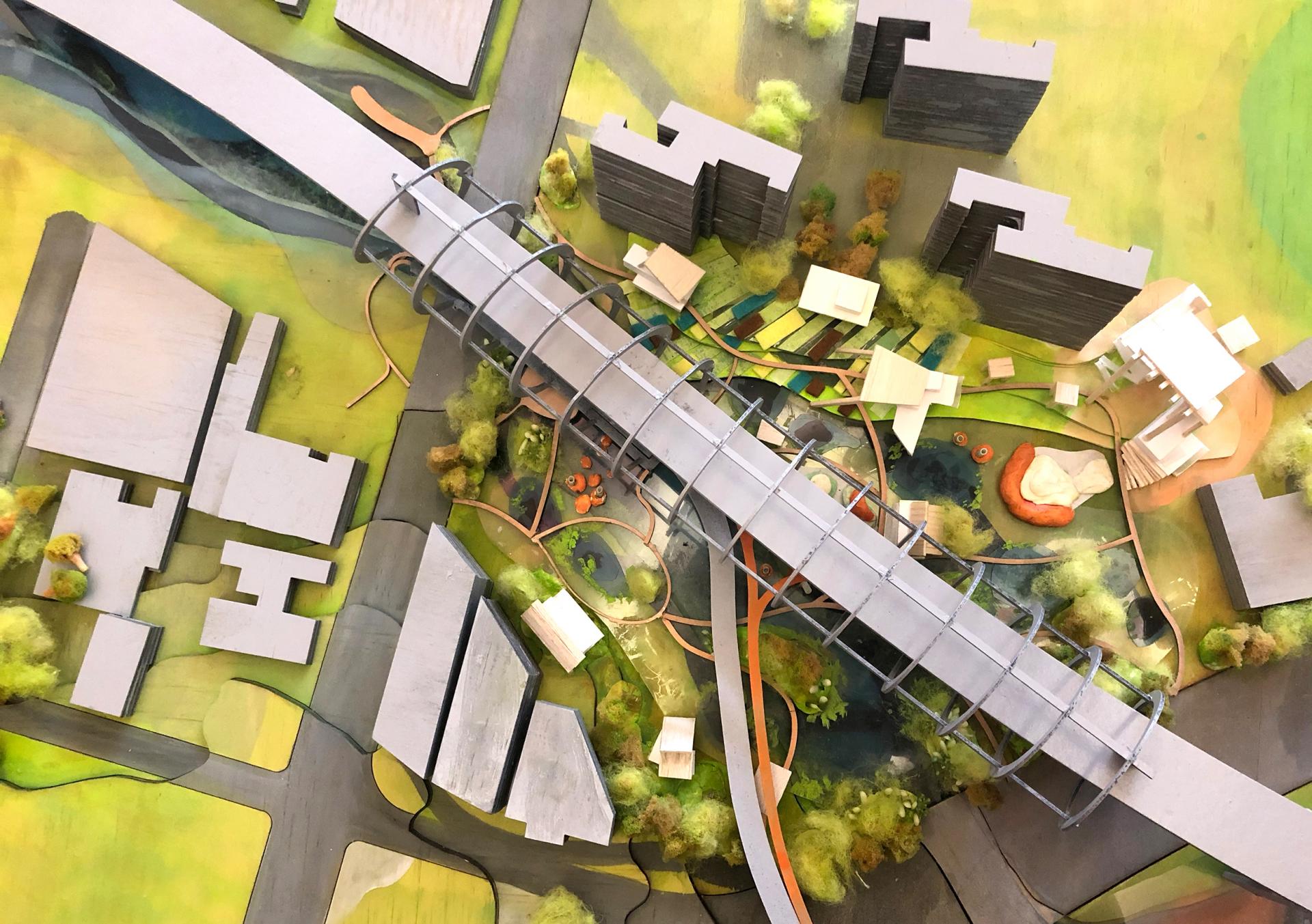 The exhibit demonstrates how architecture and landscape approaches can reconnect vegetal, water and human systems while enhancing accessibility, open space, water and air quality, health and well-being.