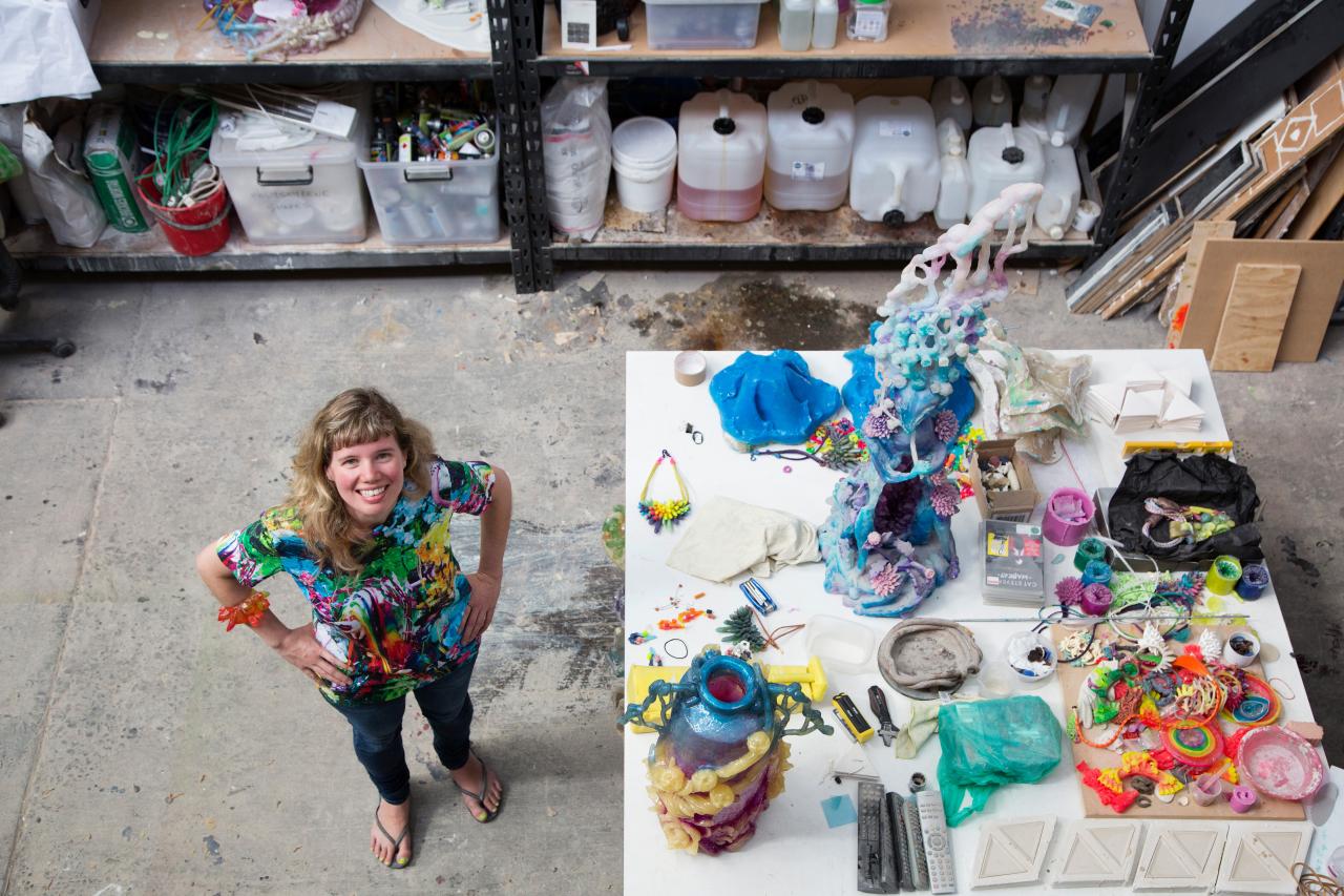 Melbourne based artist Kate Rohde takes inspiration from decorative arts, science and mythological creatures to create intensely colourful jewellery and sculptures. Kate has exhibited at the Art Gallery of South Australia, Heide Museum of Modern Art and in 2015 was a finalist in the Rigg Design Prize at the National Gallery of Victoria. Her work is held in the collections of several institutions including the National Gallery of Victoria, Art Gallery of South Australia and Bendigo Art Gallery.