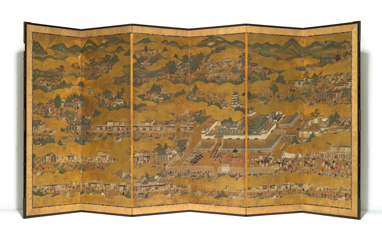 Learn about the history of this type of genre painting and how to read it, taking in the complex array of temples, shrines, castles, celebrations and everyday life depicted as well as the political themes embedded.