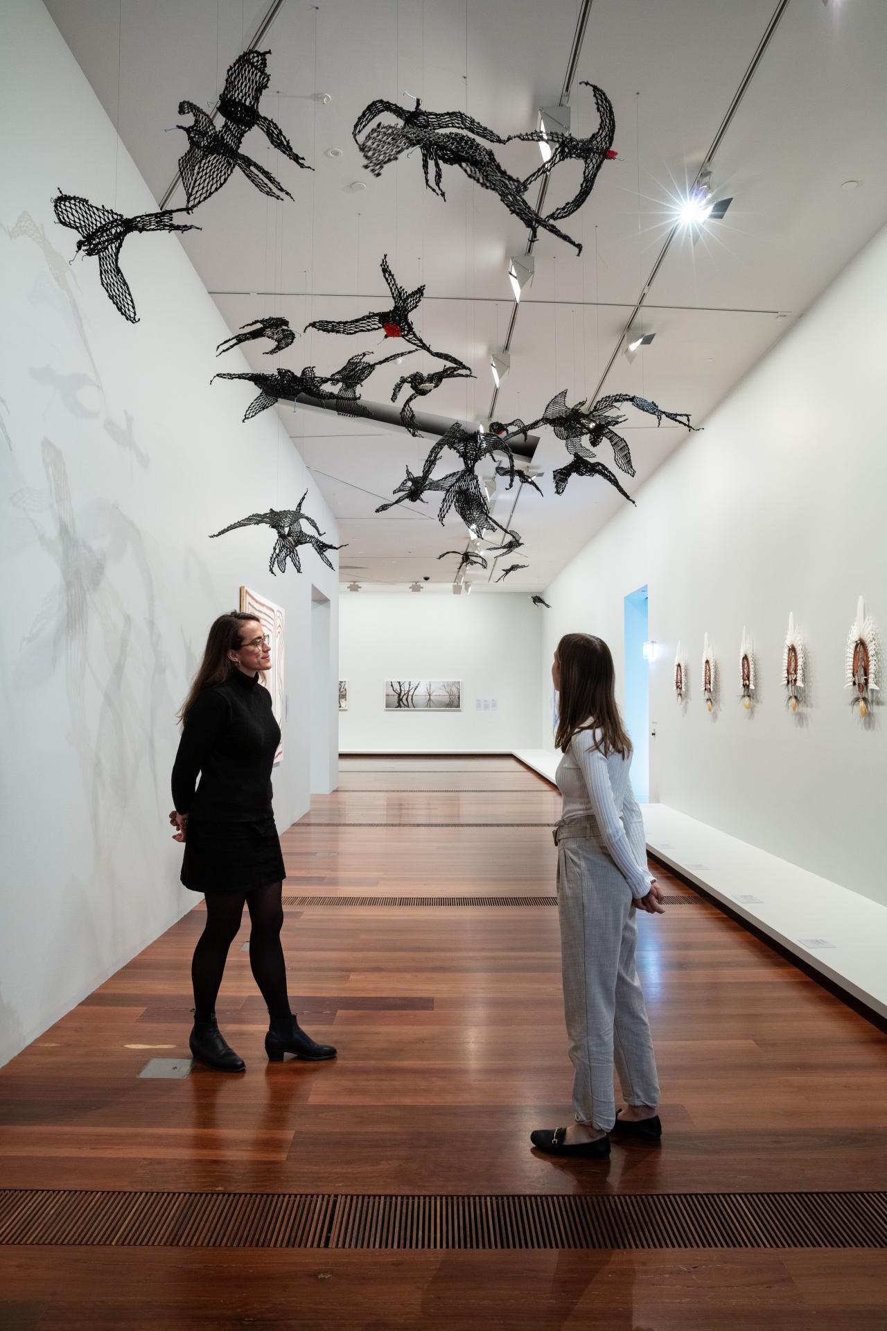 Torres Strait Islanders are intimately connected to the winds that blow through the Torres Strait. Jimmy J. Thaiday expresses the important role of waumer birds in understanding these changes to the weather through his work Waumer, pirates of the air, 2015. This week, explore this work and others depicting animals in Big Weather; an exhibition which explores Indigenous cultural knowledge and understanding of Country, weather systems and the land on which we live.