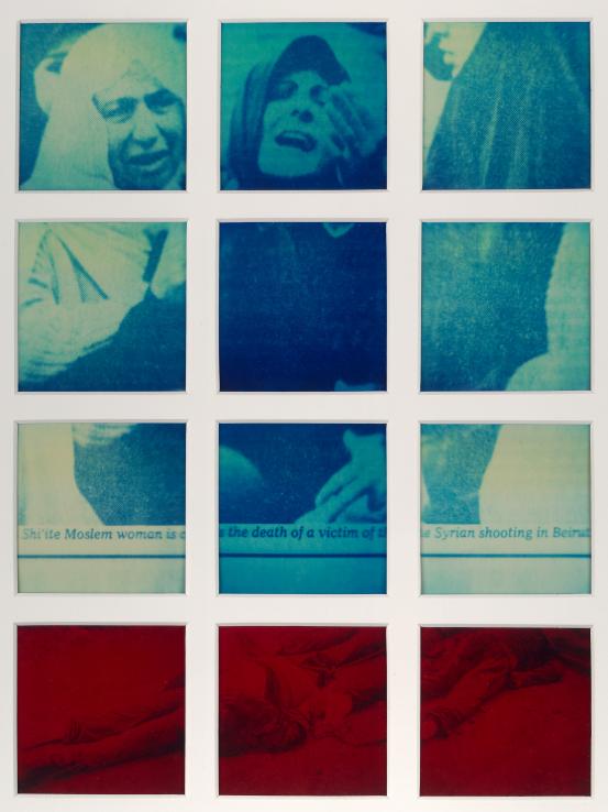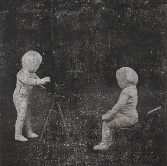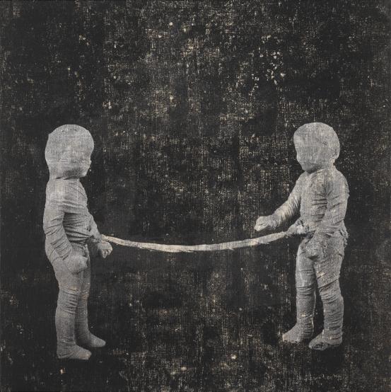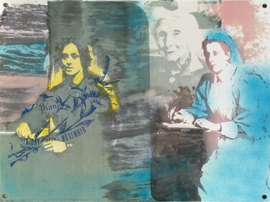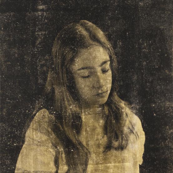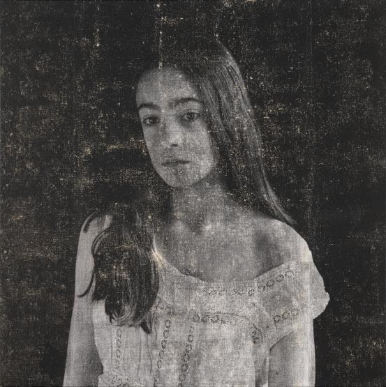 photo-screenprint, metallic foil, water-based pigment on canvas