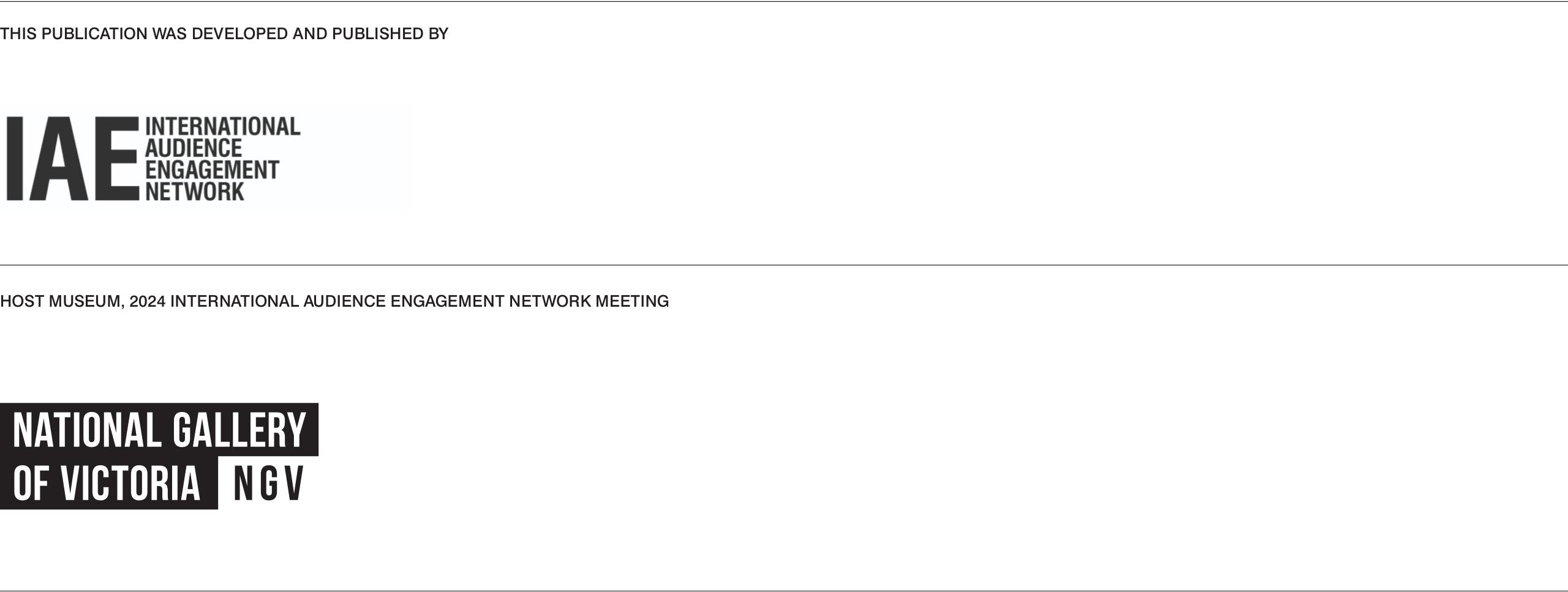 Thank you also Zoe Kirkby, Programs and Audience Engagement Manager and Monica Do, Programs and Audience Engagement Coordinator, National Gallery of Victoria, for their support in delivering the 2024 IAE Network meeting.