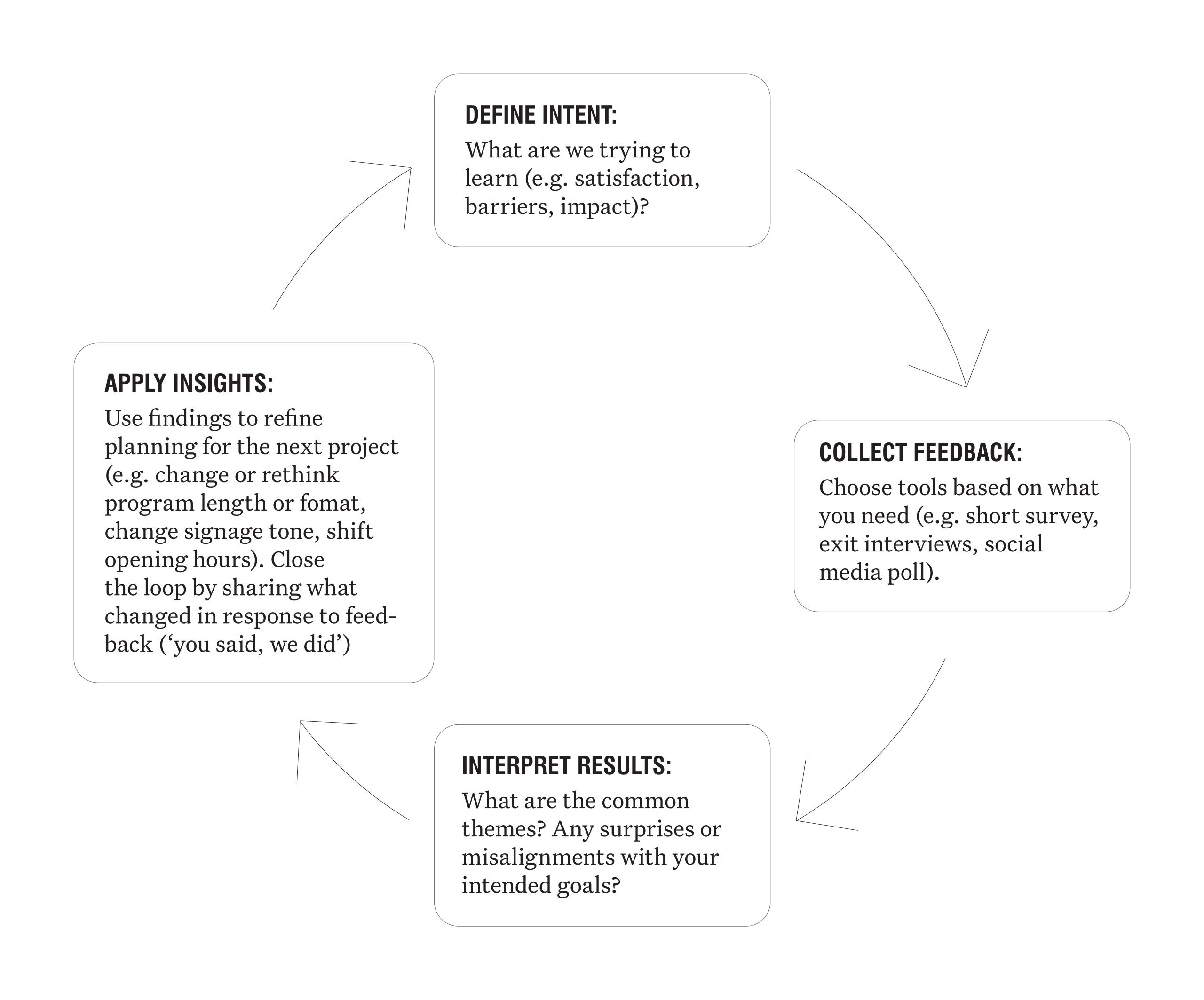 Feedback might come in the form of surveys, comments on social media, or through the museum’s communication channels, conversations with visitors, or observing visitor patterns or behaviours in your museum. But keep in mind audiences don’t always like change, so it’s critical to bring them on the journey too.