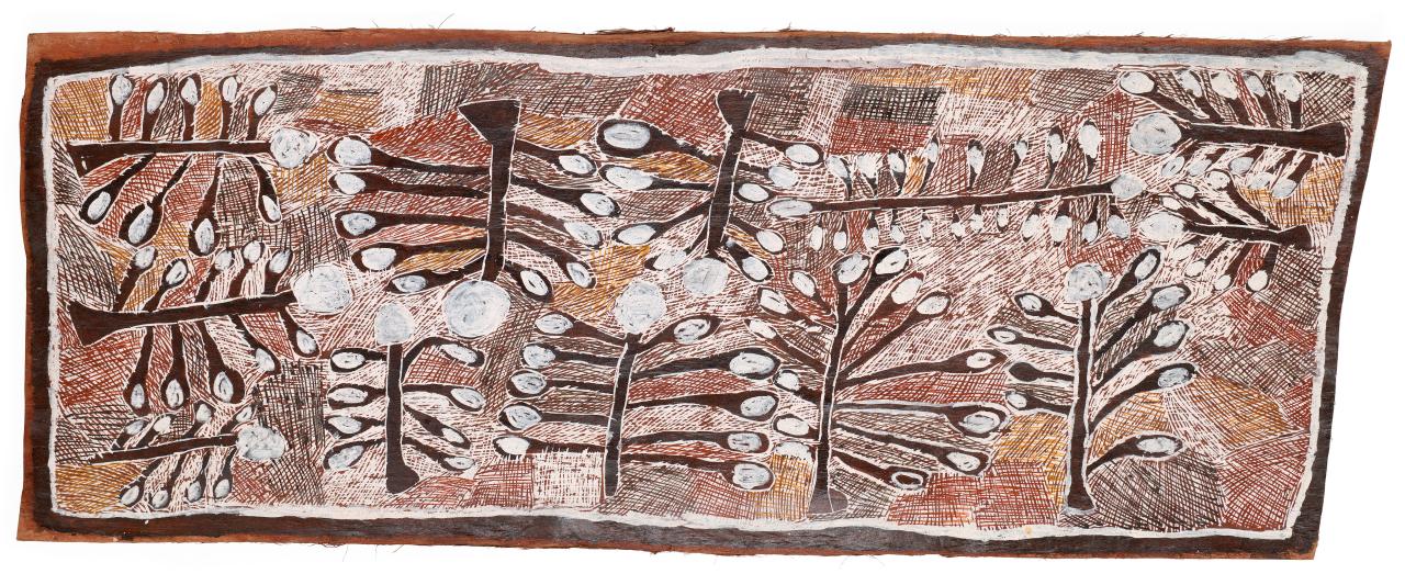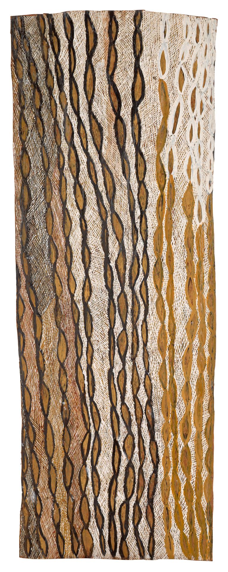 Bark Ladies: Eleven artists from Yirrkala celebrates the work of eleven innovative Yolŋu women artists. Yirrkala is an Aboriginal community in North-East Arnhem Land in the Northern Territory of Australia. Yolŋu means ‘person’ in Yolŋu Matha (the language of Yolŋu people).