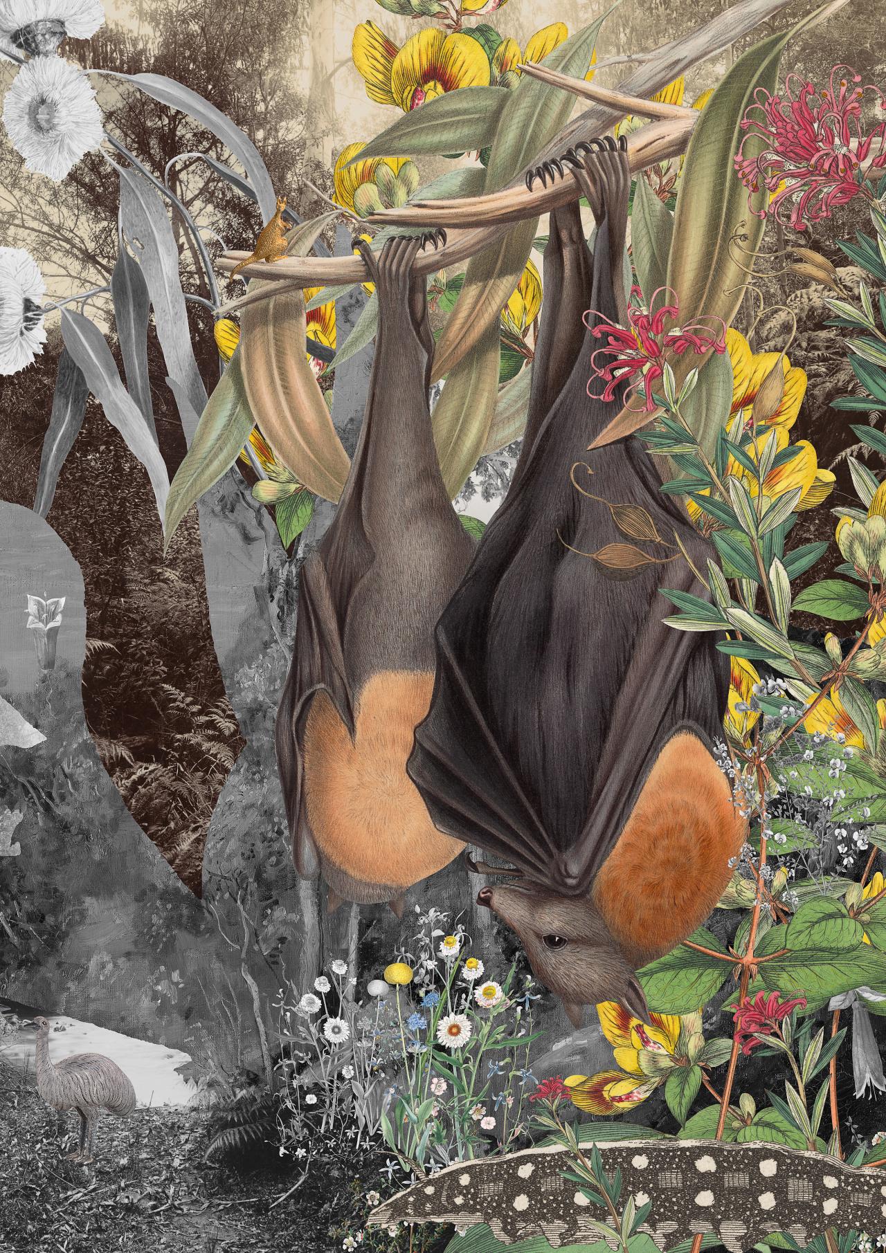 Gracia Haby and Louise Jennison have been collaborating for more than twenty years. As artists and wildlife carers, their practice often concerns the natural world, addressing themes of conservation and biodiversity through artists’ books, zines, collages, prints, drawings and, more recently, digital collages. The remaking of things, a new work commissioned for Melbourne Now, is a large-scale collage depicting a pocket of restored eucalyptus forest habitat. It is their largest installation to date.