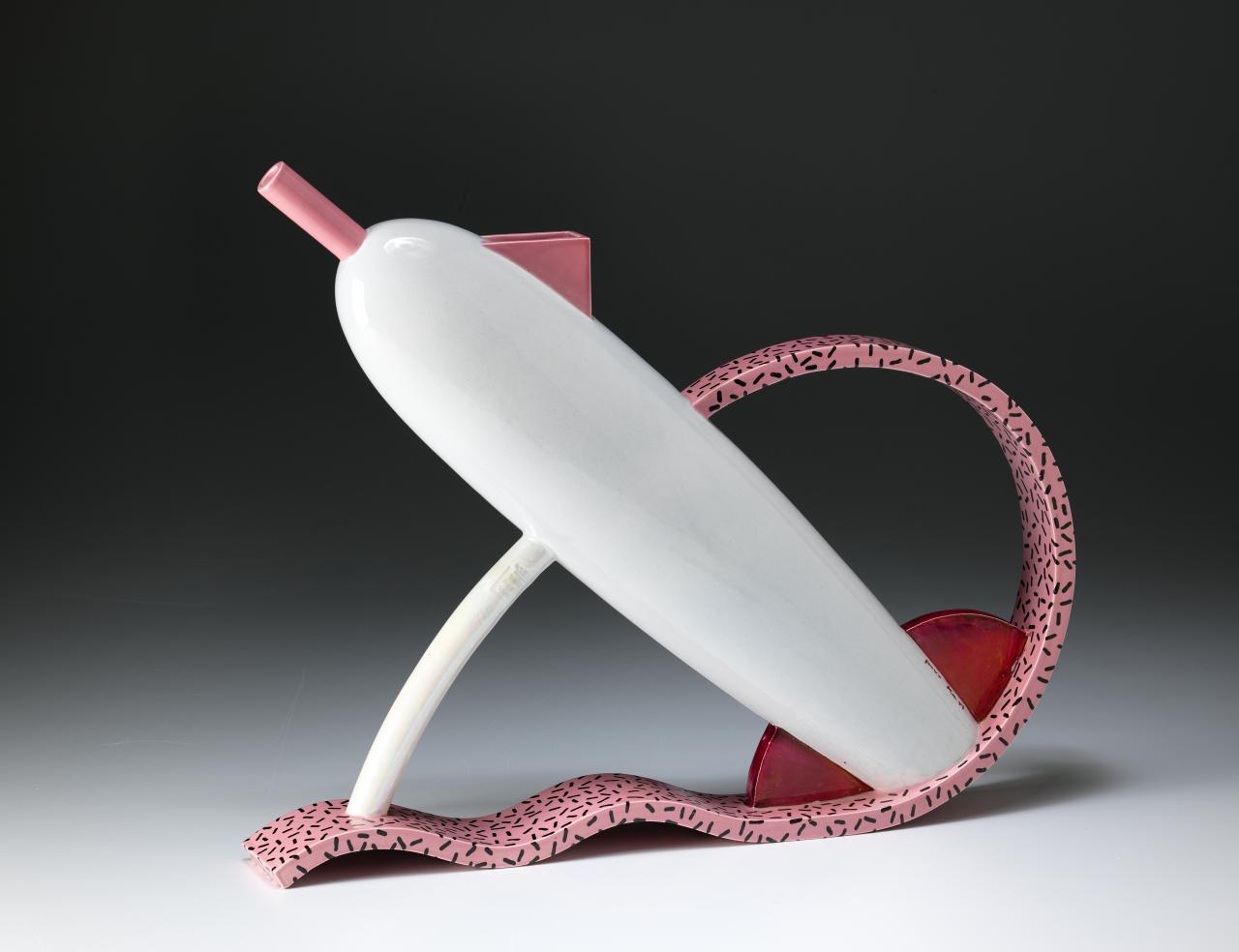 Ettore Sottsass was an Italian architect who established the Memphis design group in 1981 in Milan. The Memphis design group rejected traditional approaches to design and challenged ideas of what was popular or in style at the time. They created furniture and other everyday objects that used unusual forms and shapes in their structure and functionality. Geometric forms and prints, block pop-art colours, use of laminate and a feeling of fun and quirkiness were typically found in the designs. Memphis soon developed a global cult following, and celebrities such as fashion designer Karl Lagerfeld and musician David Bowie acquired hundreds of pieces for their own collections.