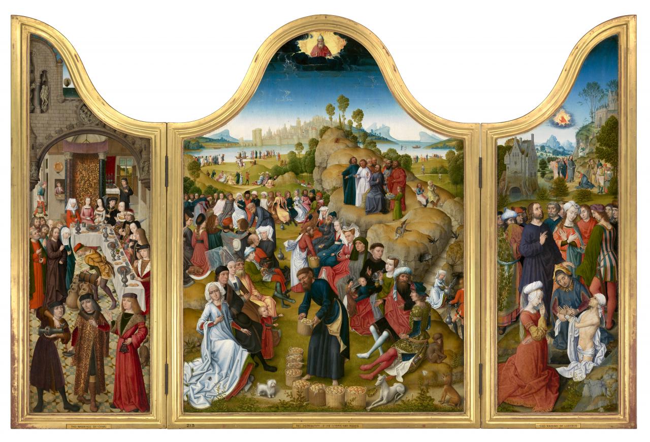 This iconic depiction always shows Christ in half-length, holding a bible in one hand and performing a blessing with the other. These images often portray Christ as somewhat stern, with an emphasis on God’s all-encompassing power and might. In this image, Christ holds the text ‘Come to me, you chosen by my Father’ (Mt 25:34). Matthew’s text invites followers and those curious to listen to the voice of God and to be nurtured by Christ.