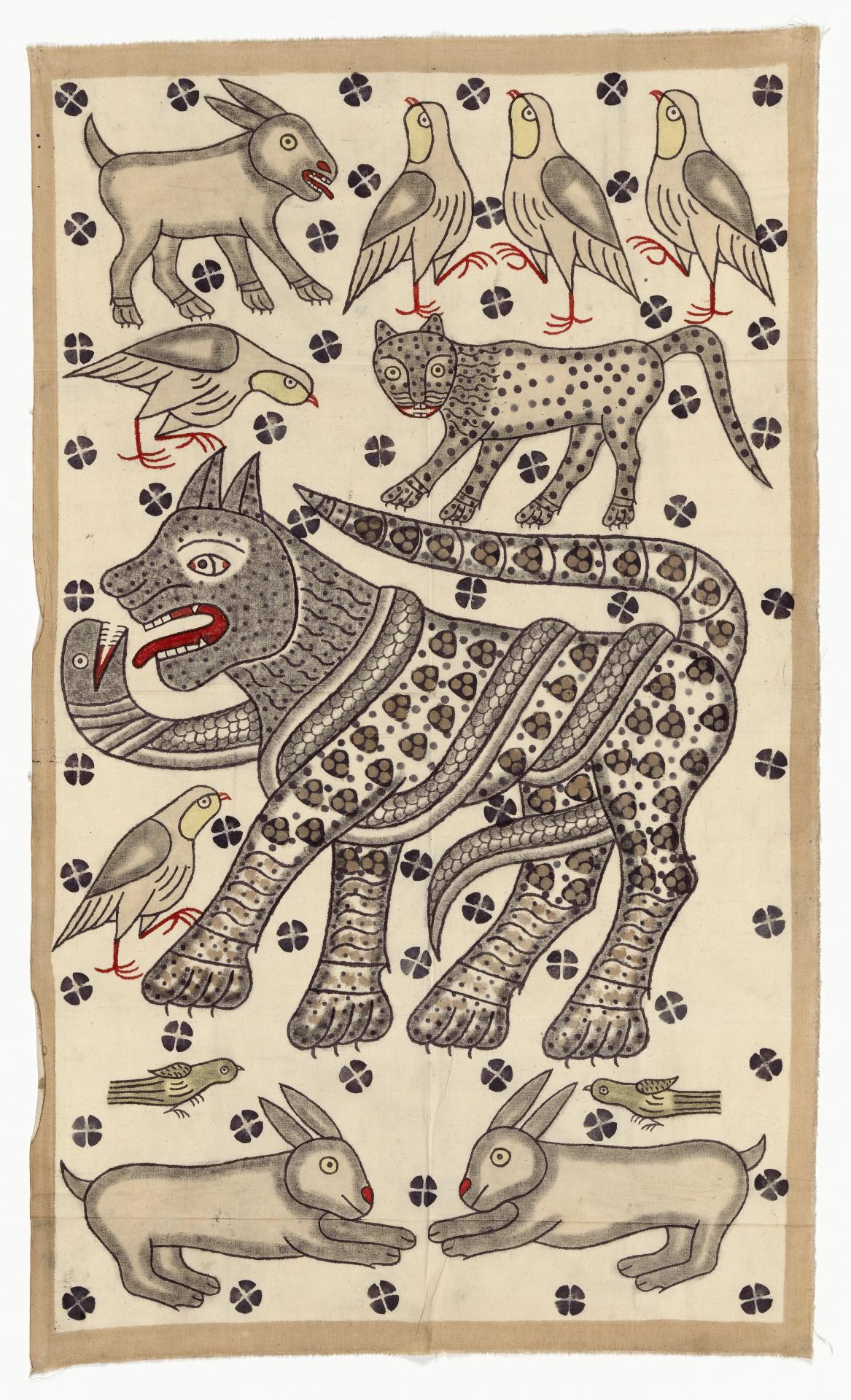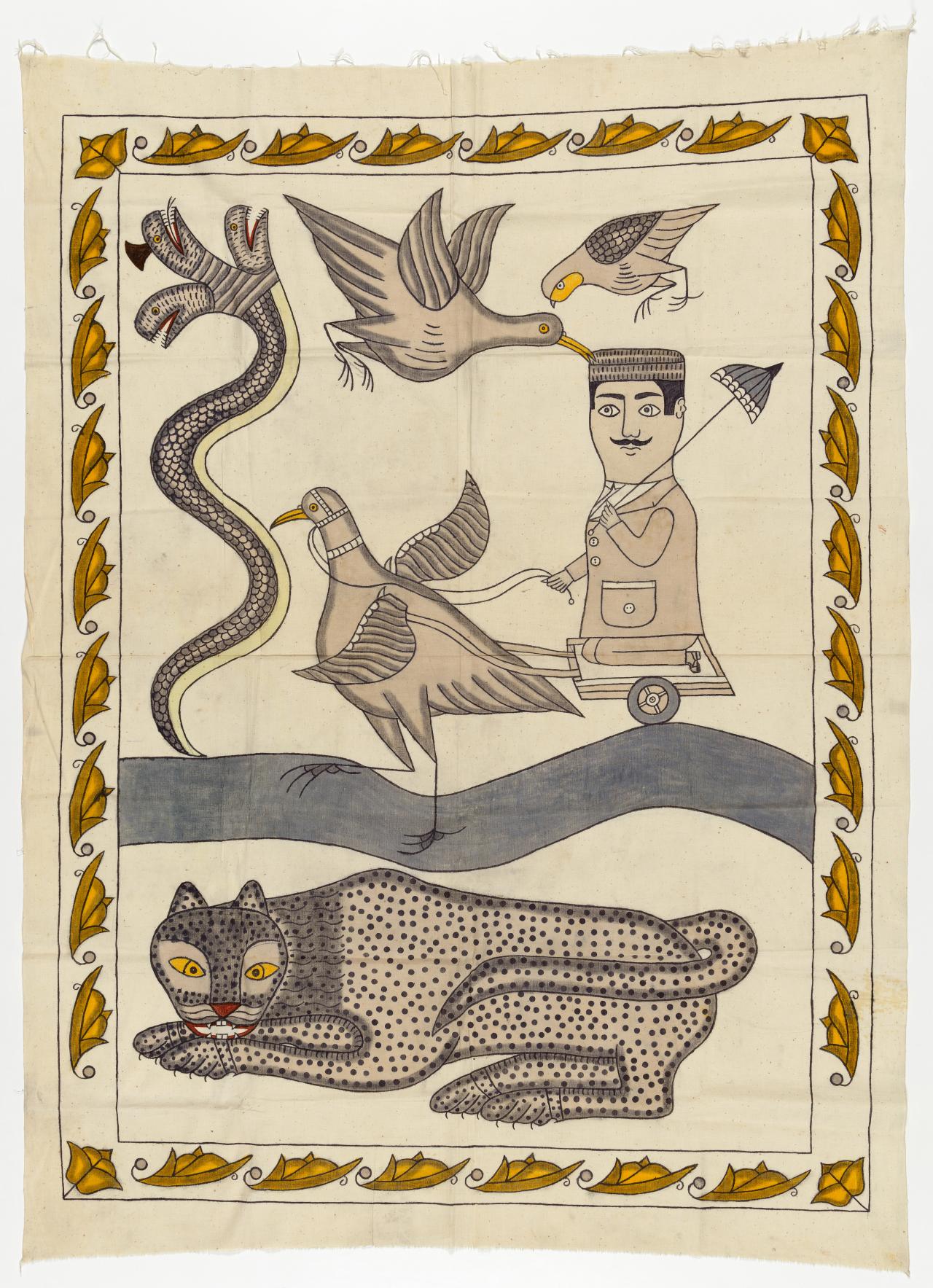 Draw an animal with lines that leap off the page inspired by the bold use of line in Haji Abdullah Wakil Zadhah and his family’s storyteller chirehs.