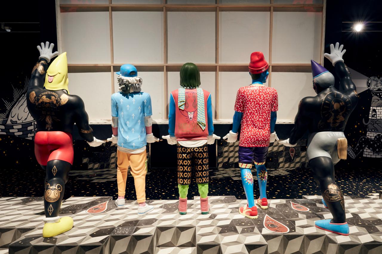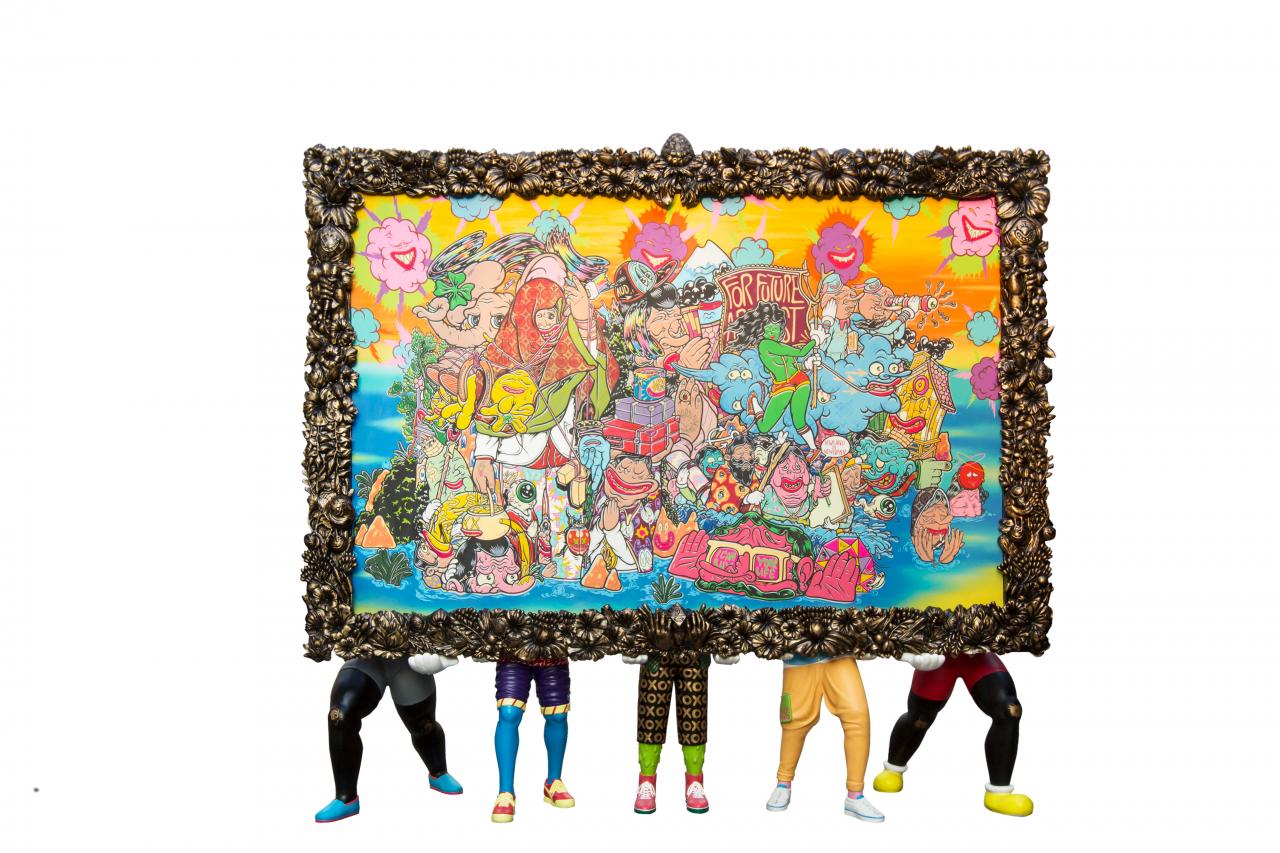Uji Handoko Eko Saputro (aka Hahan) was born in Kebumen, Java, Indonesia, in 1983 and graduated from the Indonesian Institute of the Arts, Yogyakarta, in 2009. Hahan’s work encompasses various forms of media, including sculpture, painting, printmaking and music. It is characterised by a vibrant and chaotic mix of colour, humour and references to music, popular culture, comics and street art – blurring the boundaries between ‘high’ and ‘low’ art to comment on contemporary art, politics and culture.