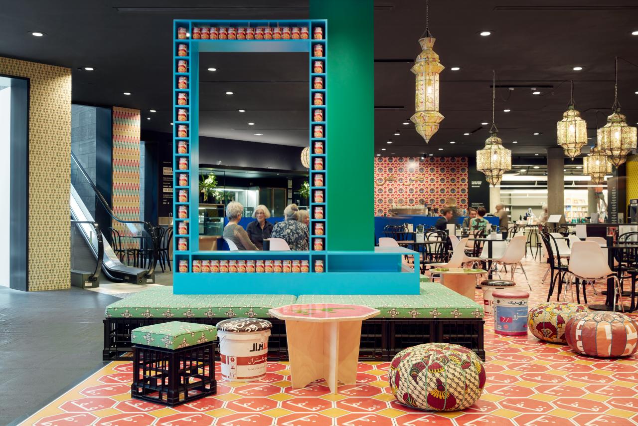 Look closely at the furniture that Hassan Hajjaj has constructed for the Gallery Kitchen. What materials have been used? Why might Hajjaj have chosen these?