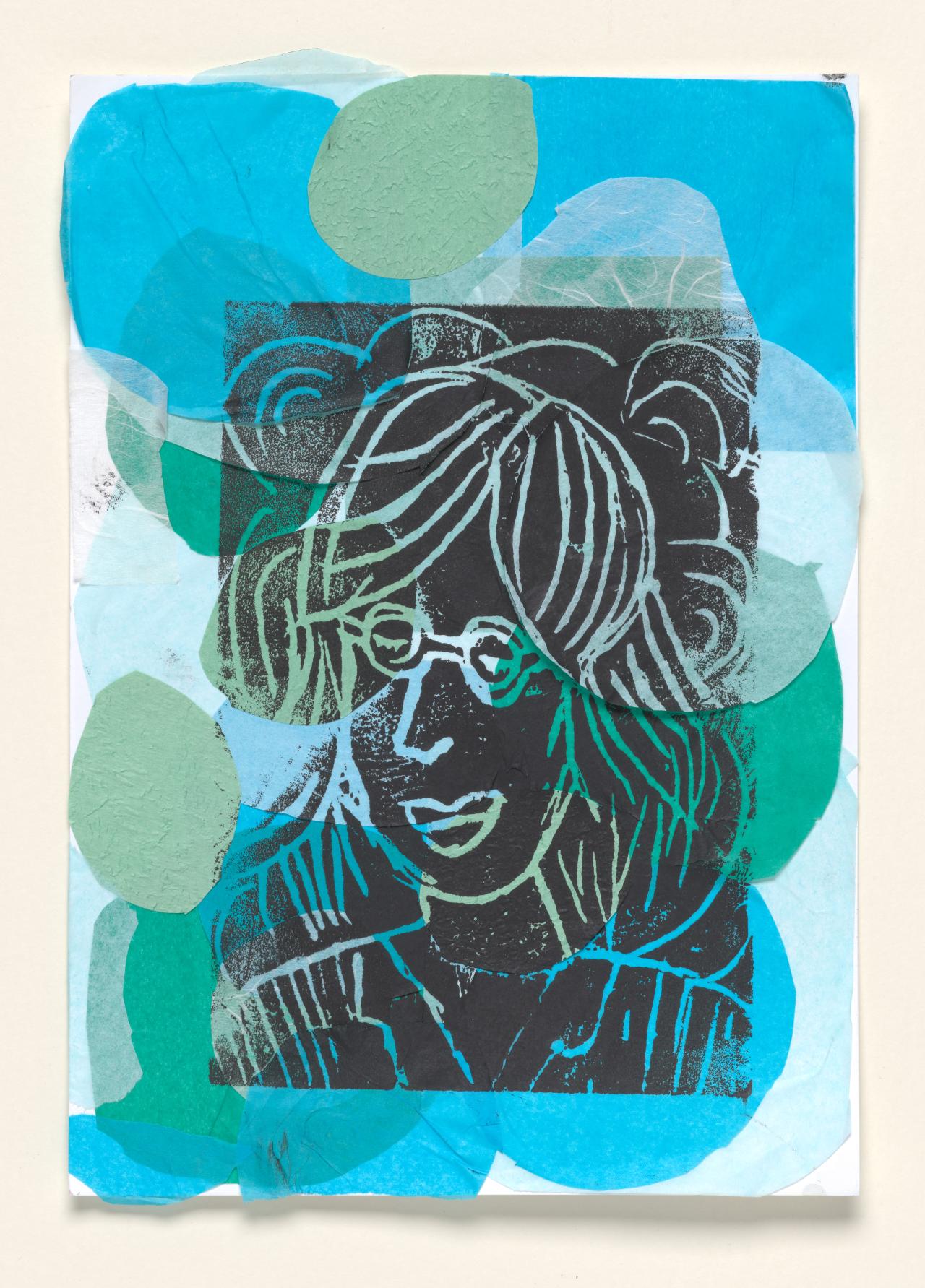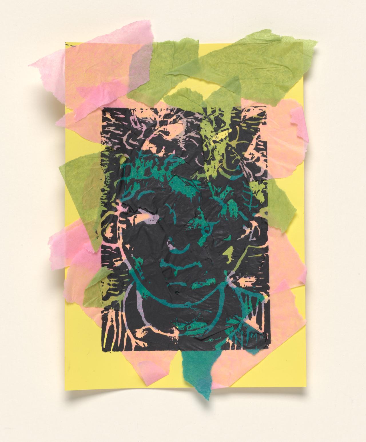 - Show students some examples of the ‘Print my Portrait’ artwork they will be making. Ask them to examine the construction of the background (coloured tissue paper collage) and foreground (ink print of a face).