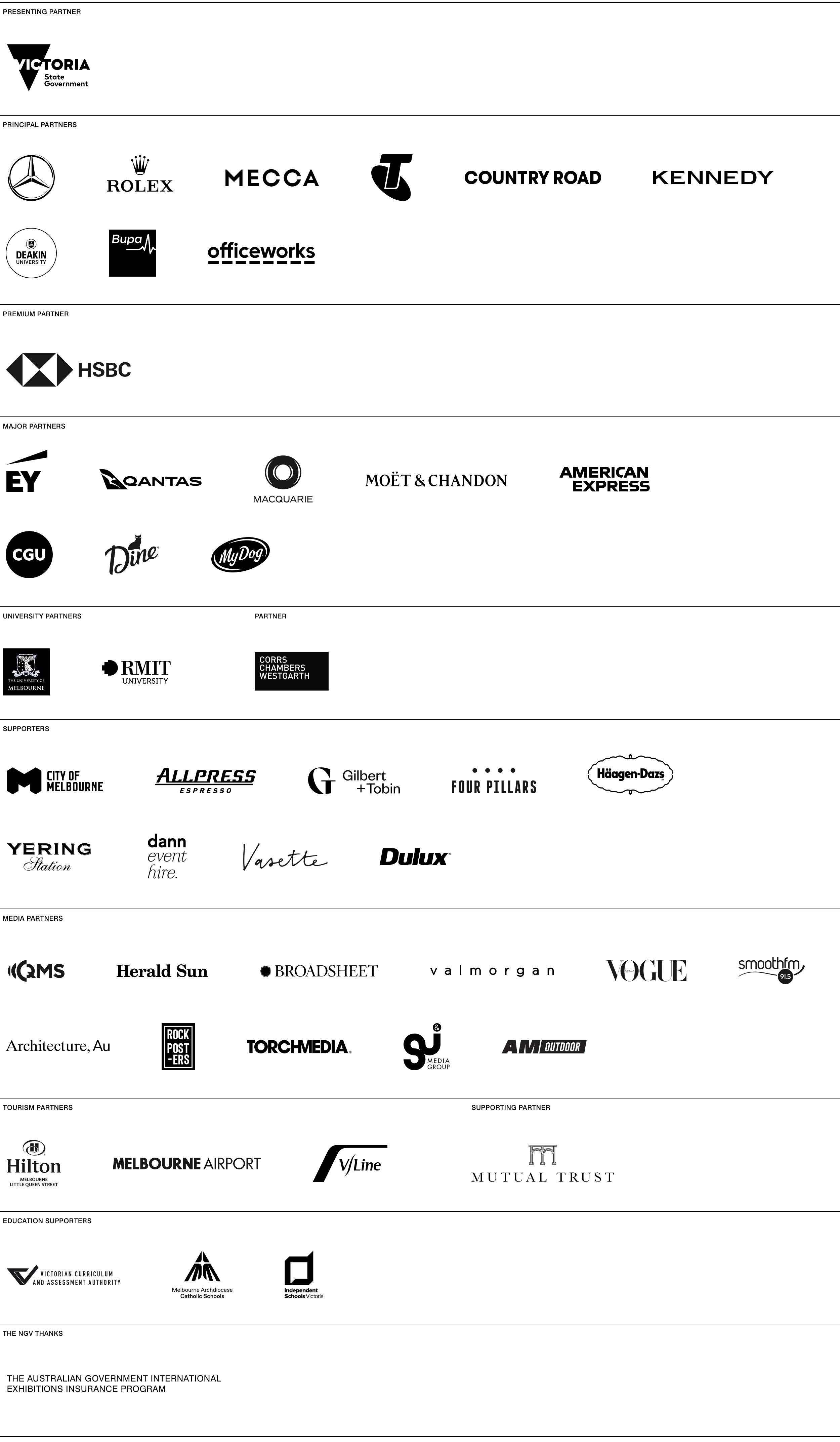 The NGV is grateful for the support and generosity of our partners who make our exhibitions and projects possible.