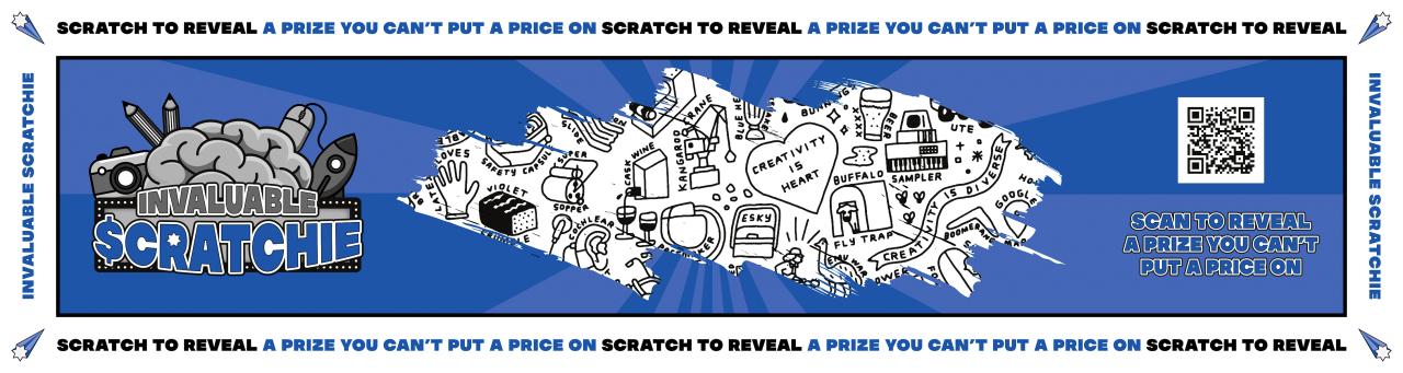 Lured by the promise of winning large cash prizes, approximately 3 million Australians buy a scratch card each year. Invaluable Scratchie reimagines the scratch card by replacing the dollar value of the prize, typically hidden behind the silver scratch ink, with “creativity” – a prize that it’s impossible to put a price on.