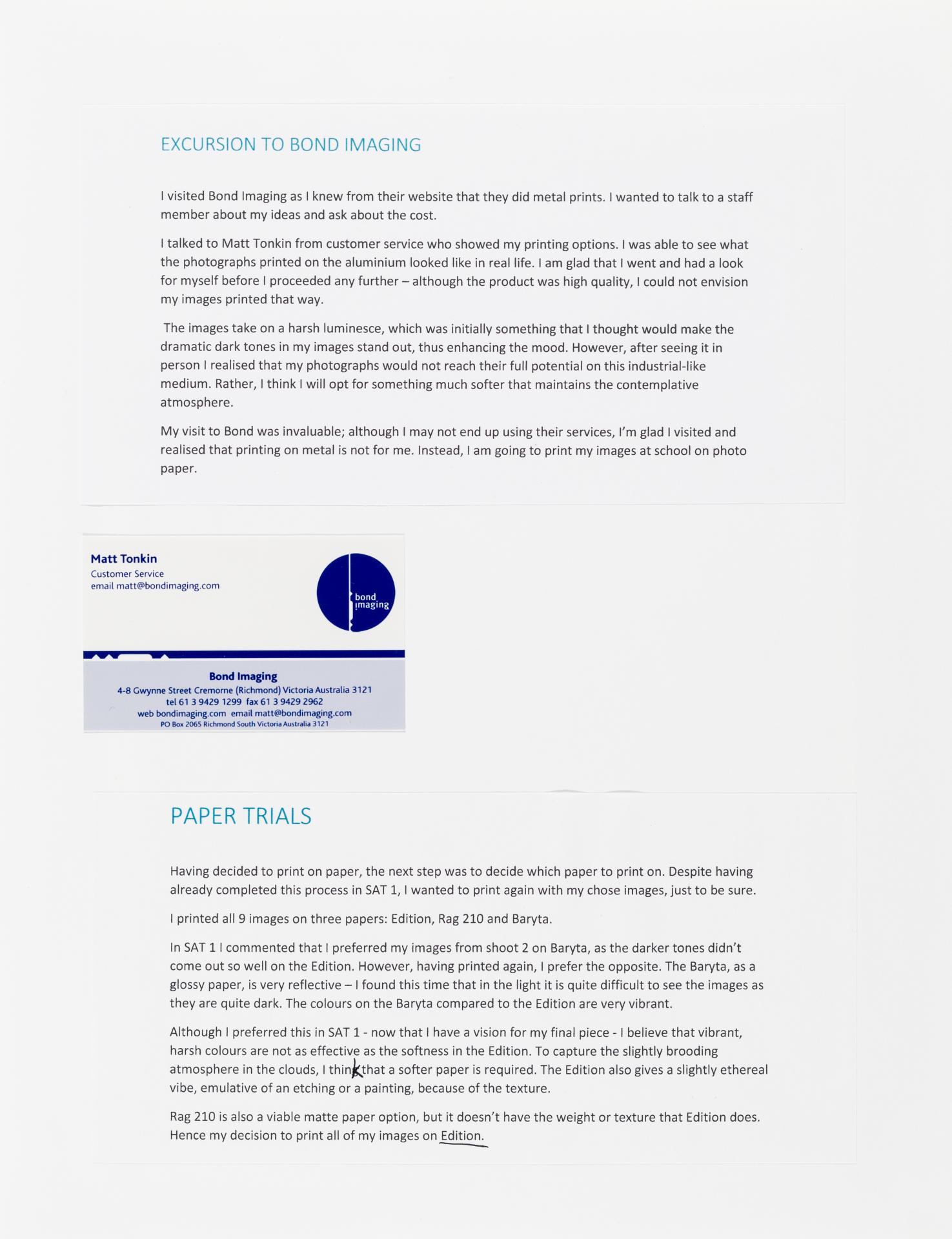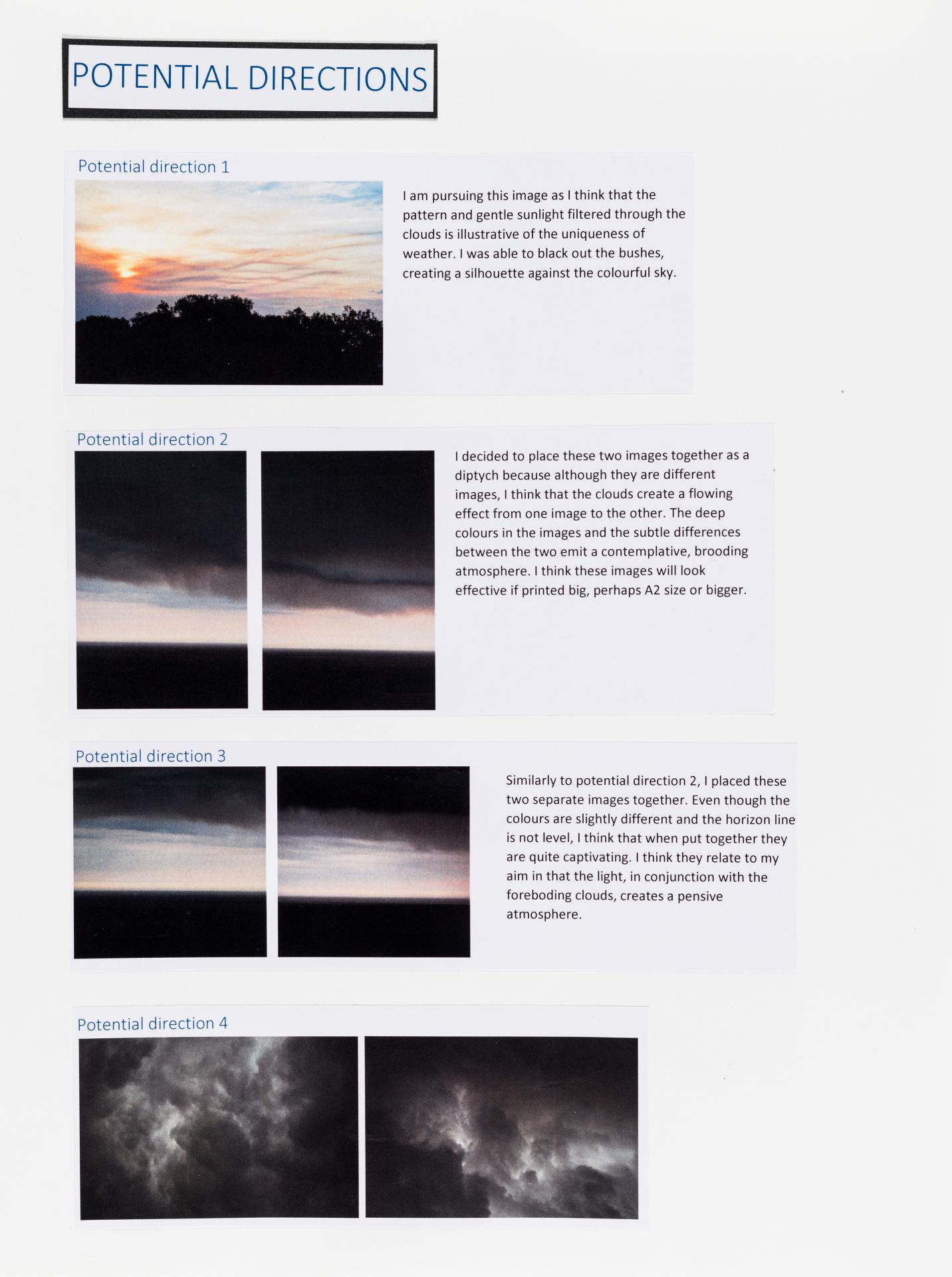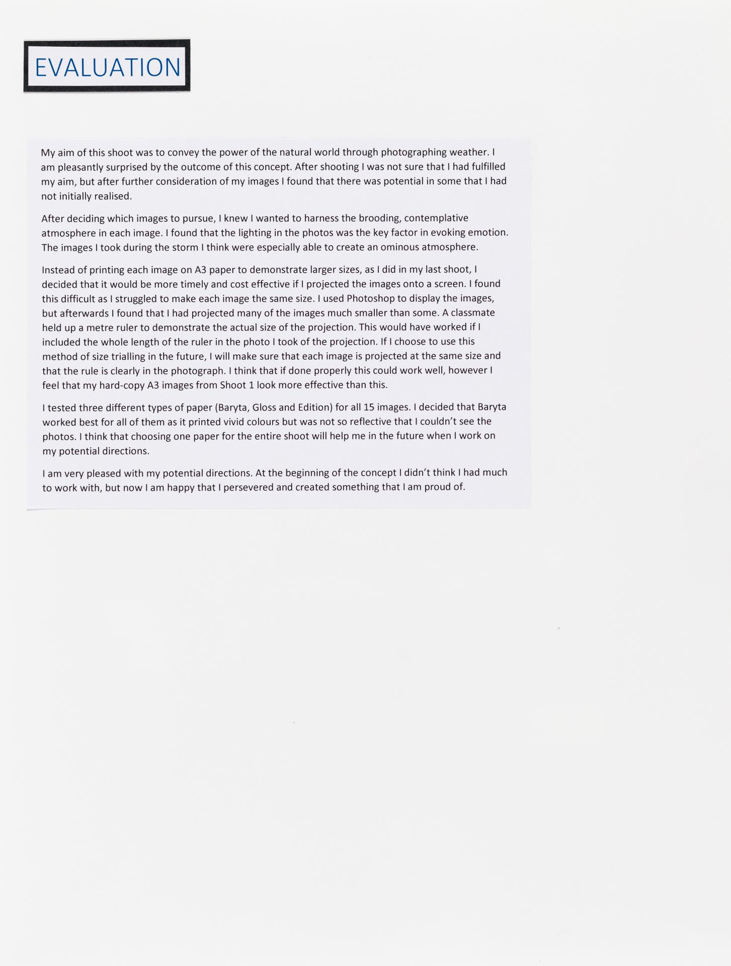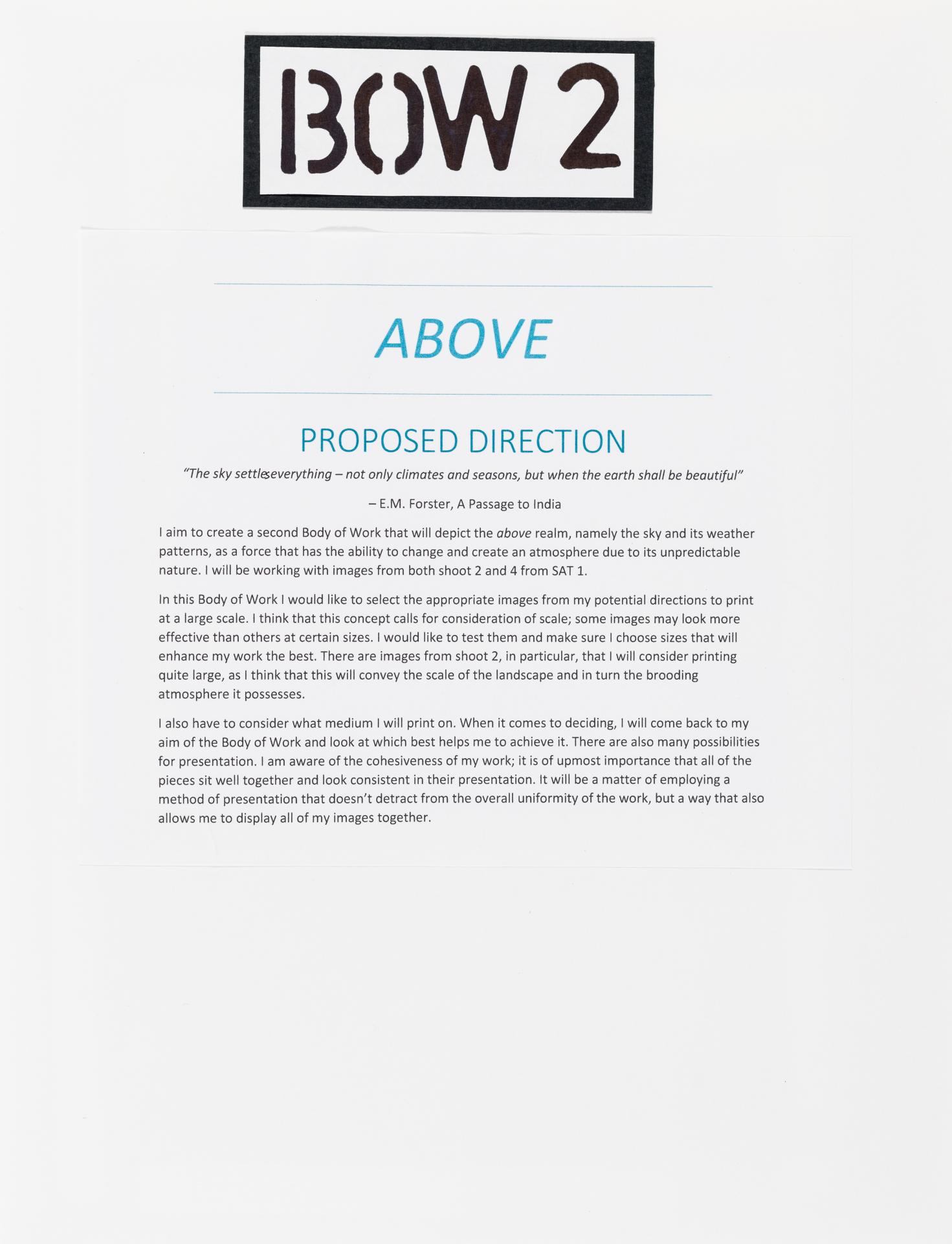 The exploration proposal should have an explanation on the focus and subject matter that is to be explored and developed as part of the design process. There needs to be a discussion of conceptual possibilities and how ideas will be explored. Art forms that will be part of the process must be referenced and an explanation given of how aesthetic qualities will be explored in relation to the stated ideas. Materials, techniques, process and skills should be referenced and discussed in relation to the ideas to be explored.