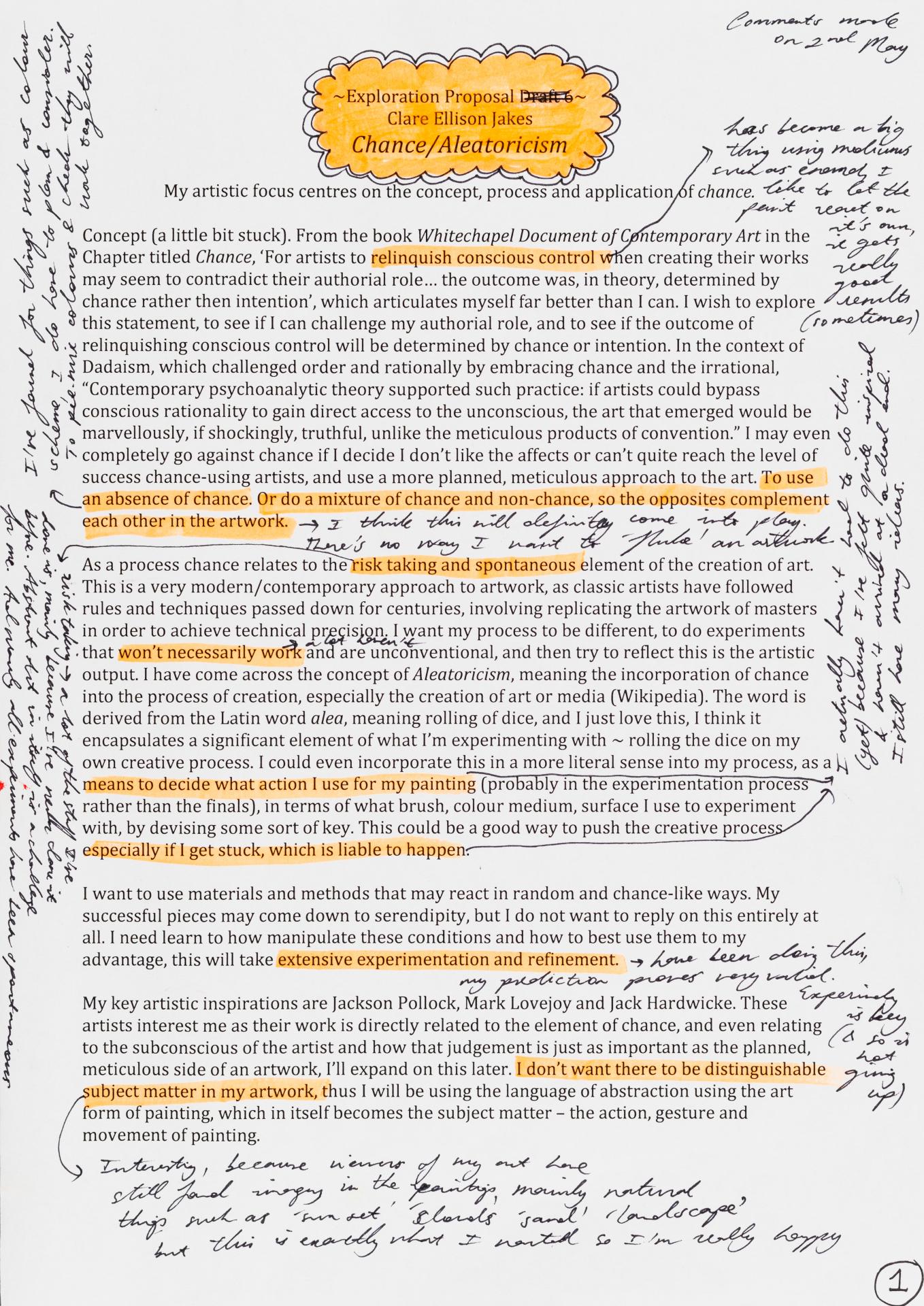 Clare Jakes shows highly effective presentation of potential directions appropriate to the selected art form(s) of the finished artworks.