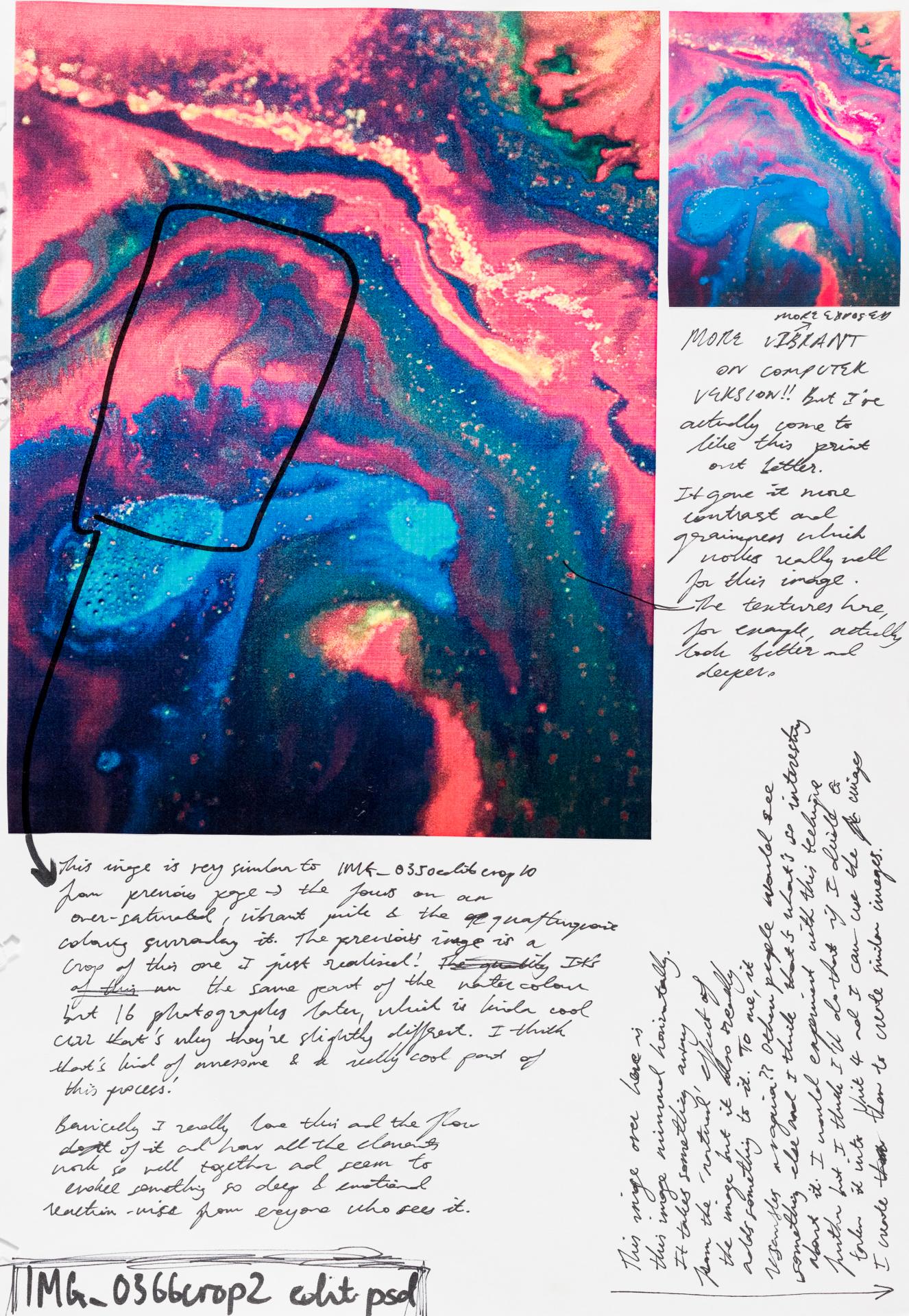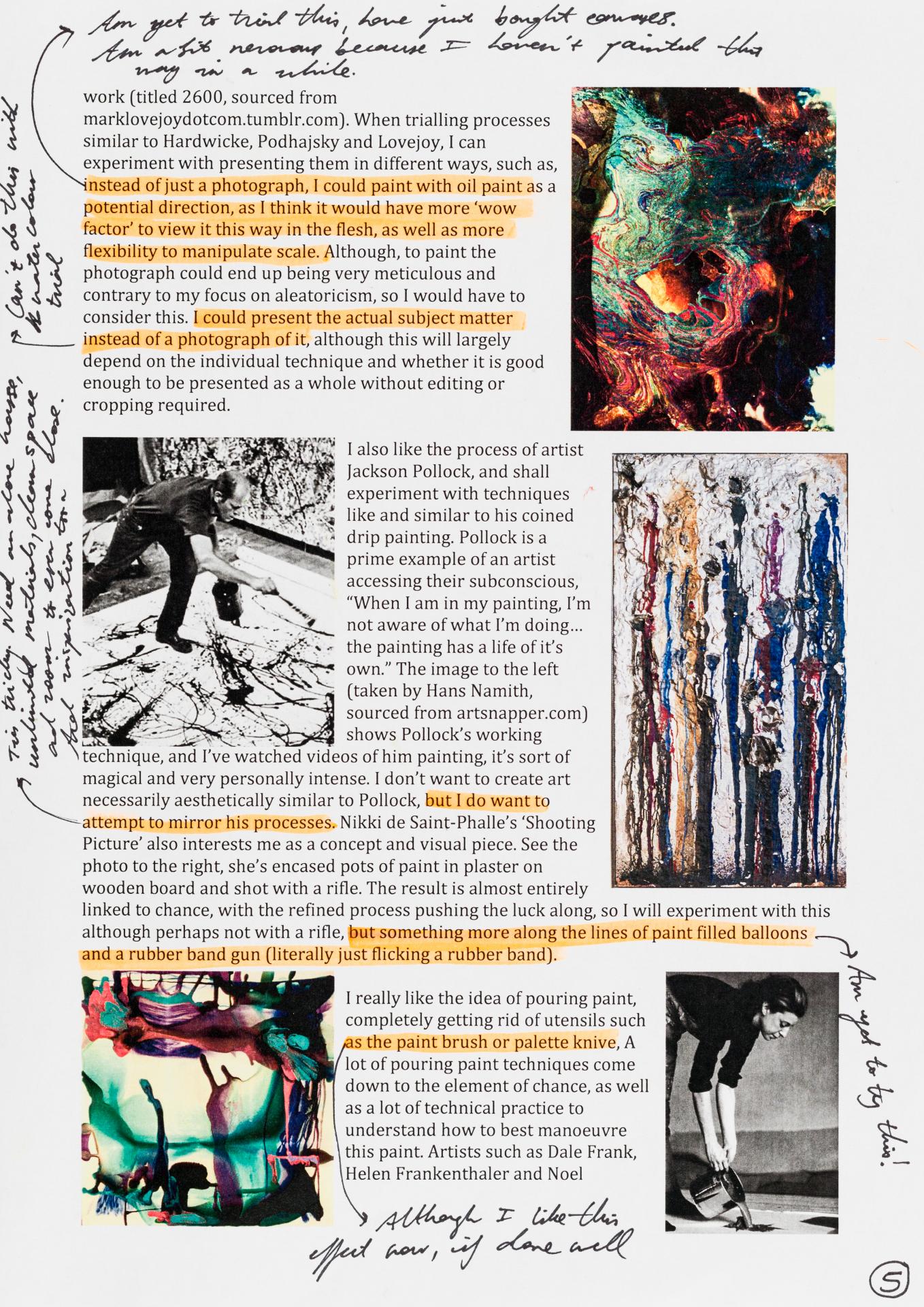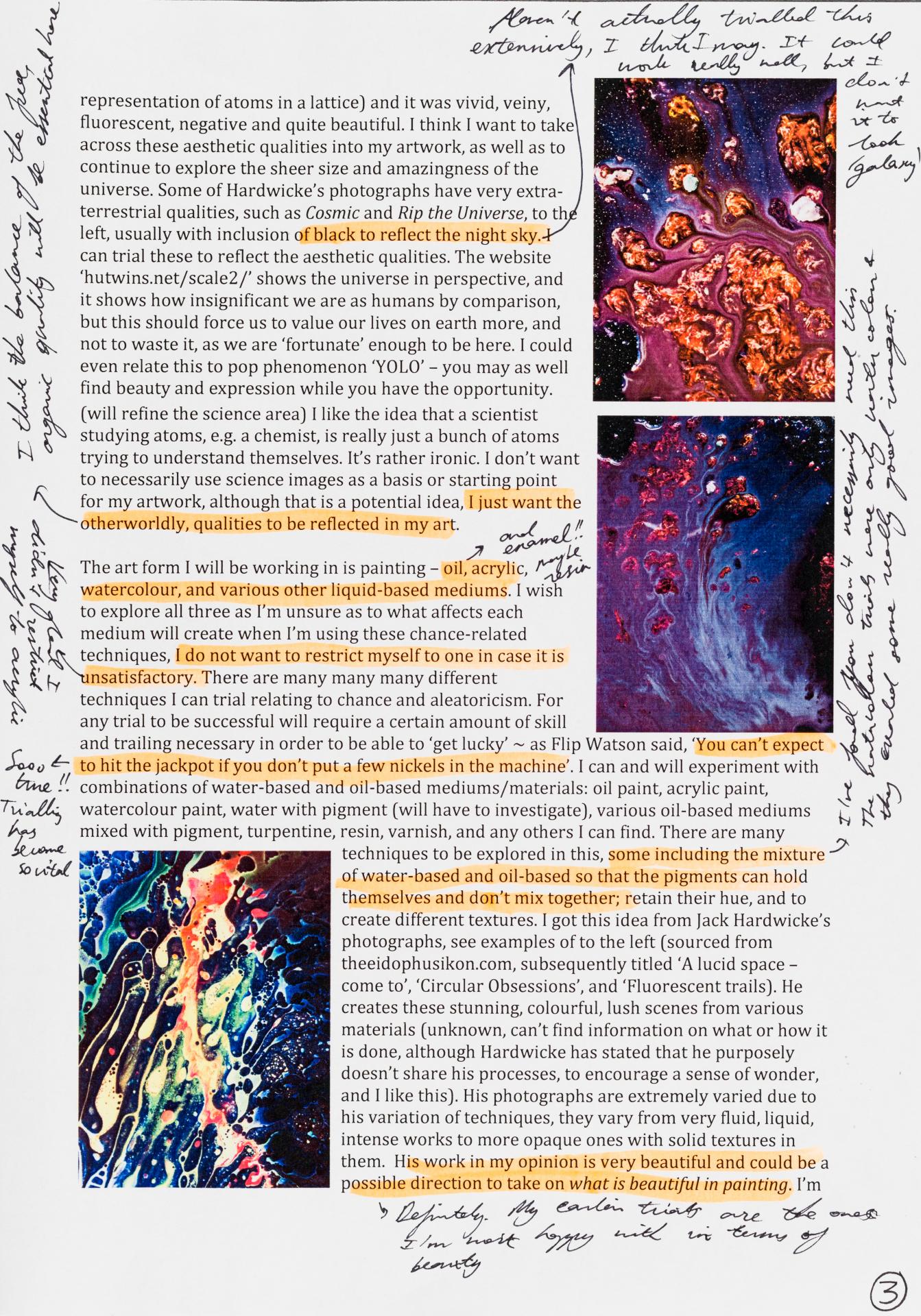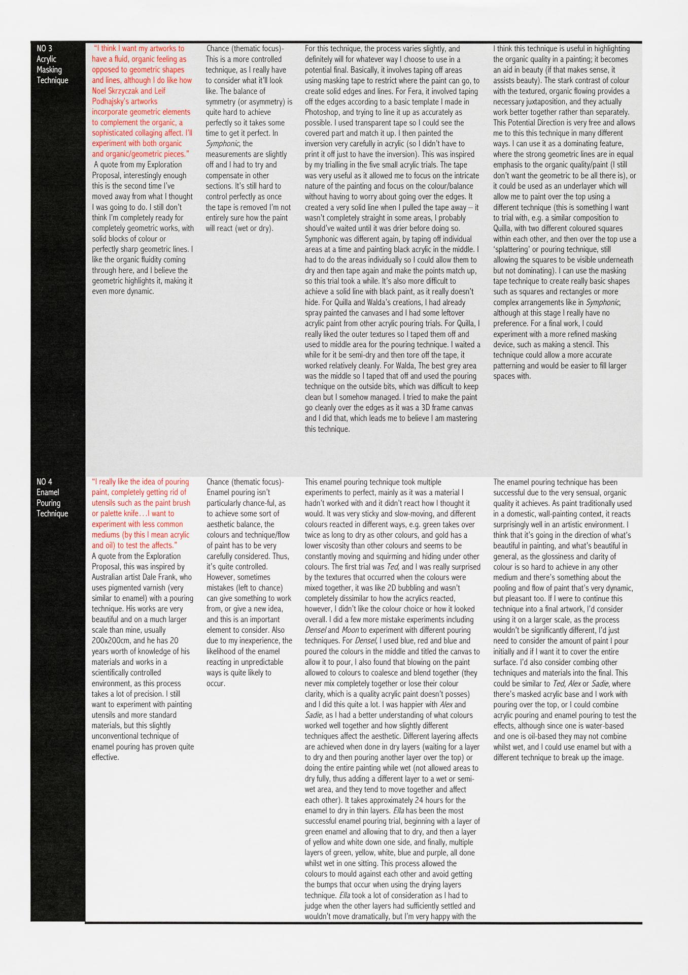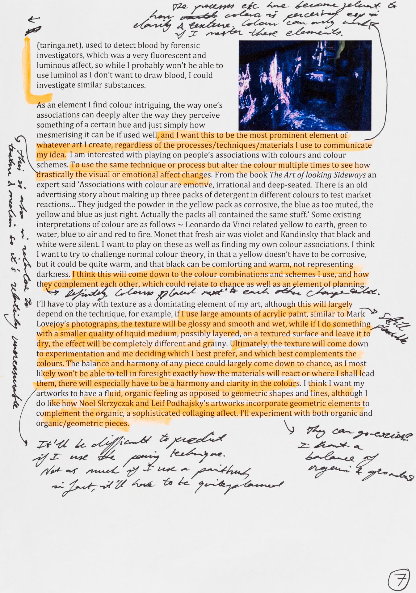 : Documentation that clarifies the focus of the folio evaluates the use of potential directions in the finished artworks and reflects on the cohesive folio