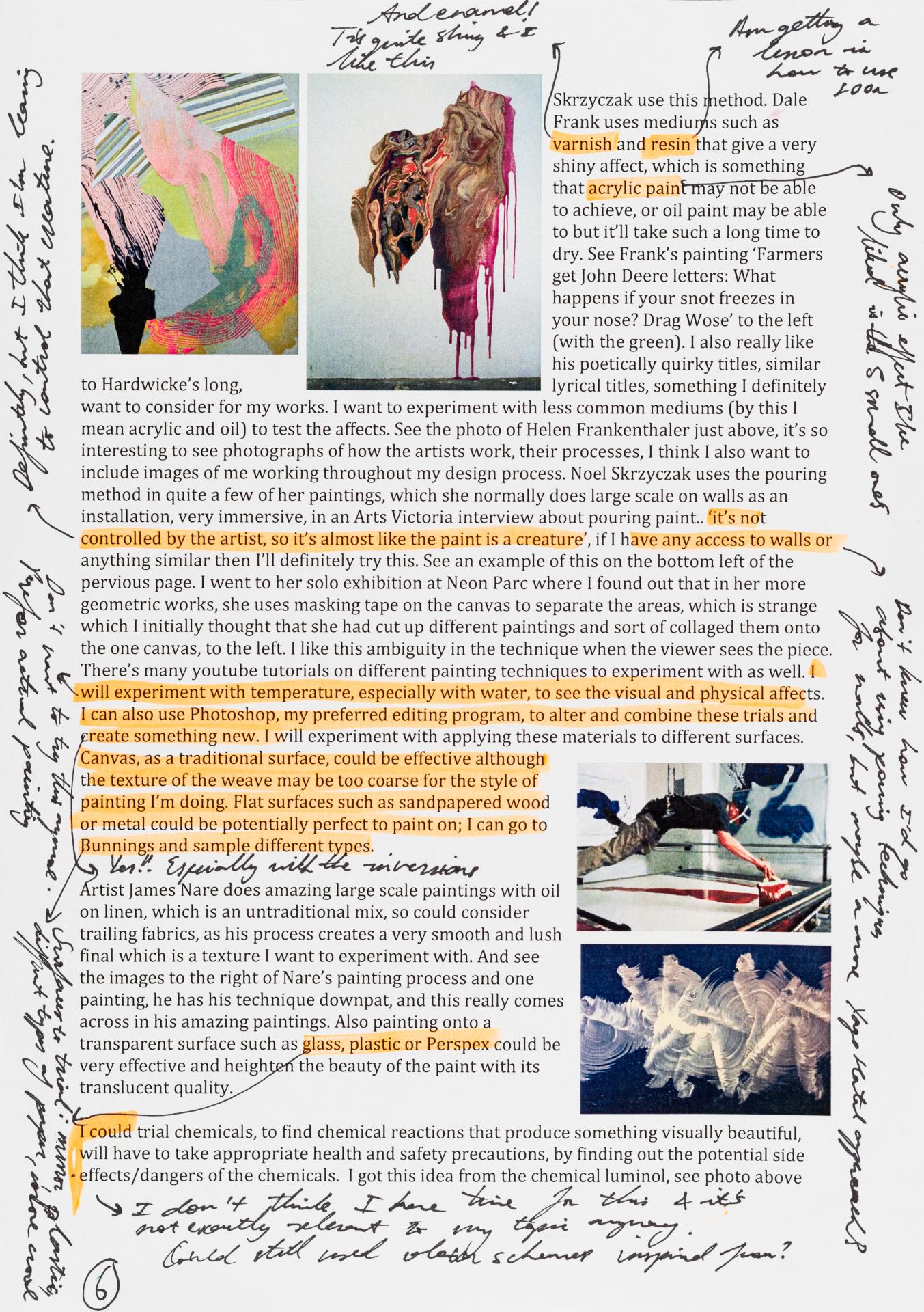 Jakes provides extensive and thoughtful exploration, comprehensive documentation of a range of materials and development of techniques appropriate to the selected art form/s that she has articulated in the exploration proposal.