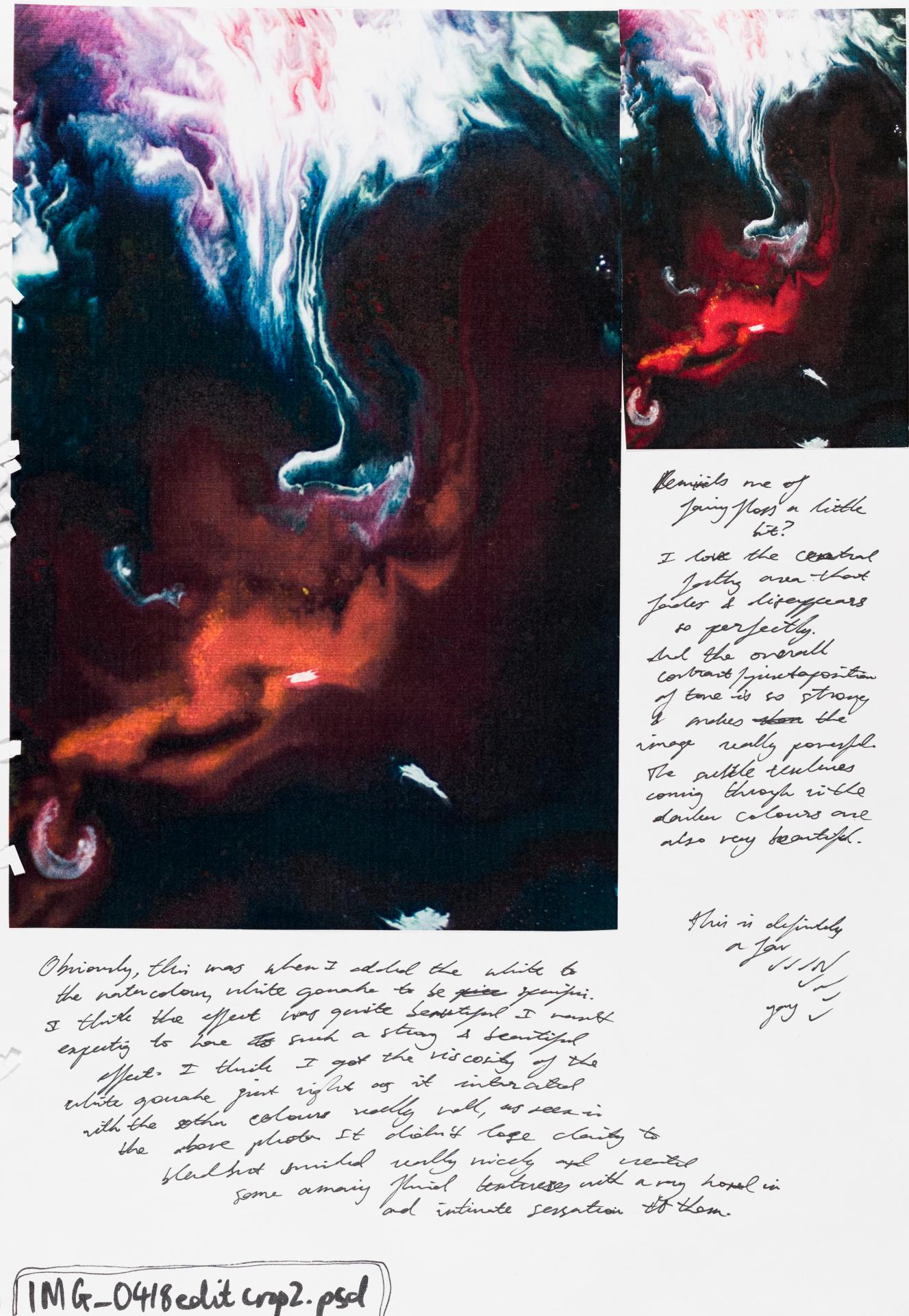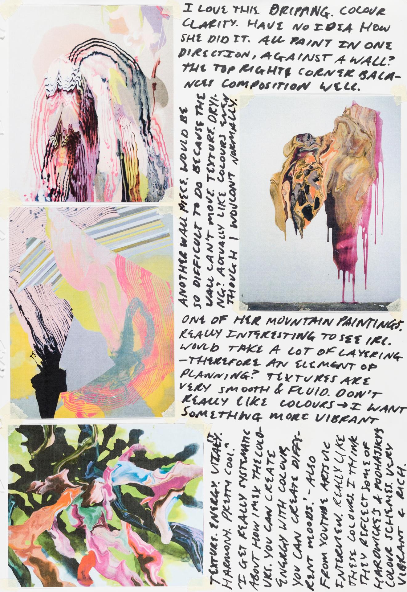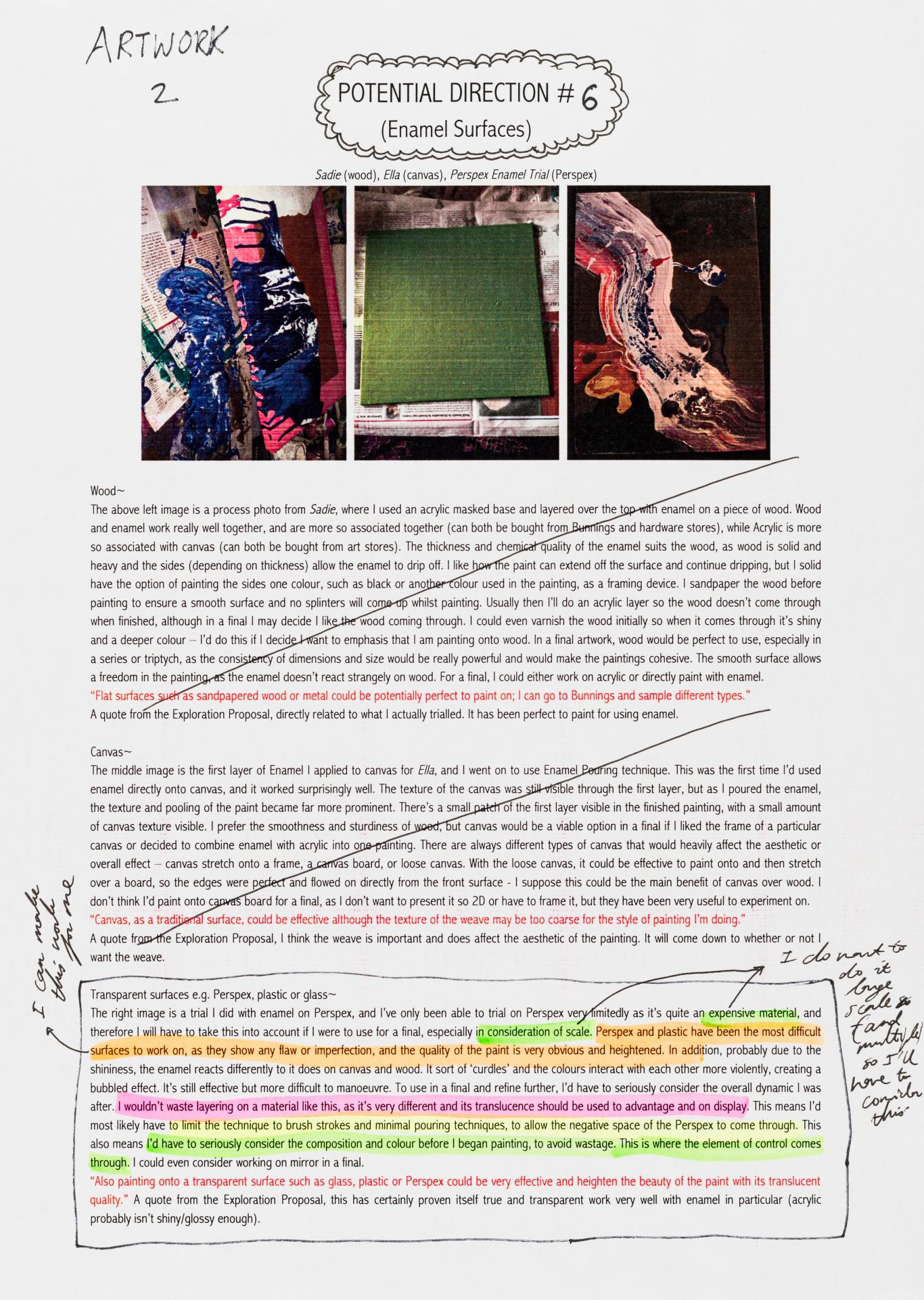 There is thorough and informative evaluation using art language of how the finished artworks reflect her potential directions.