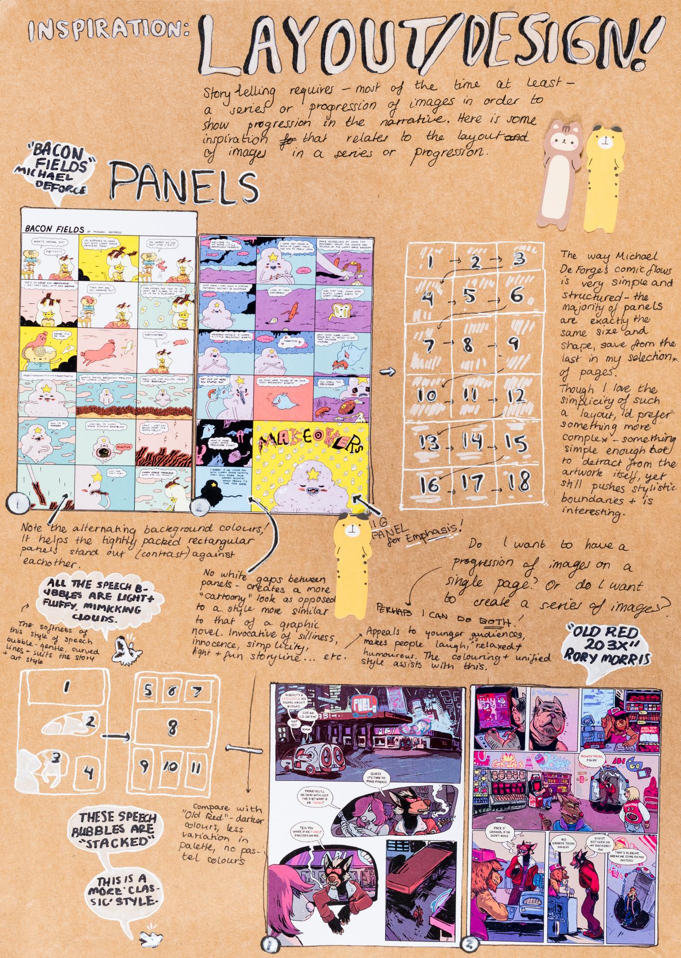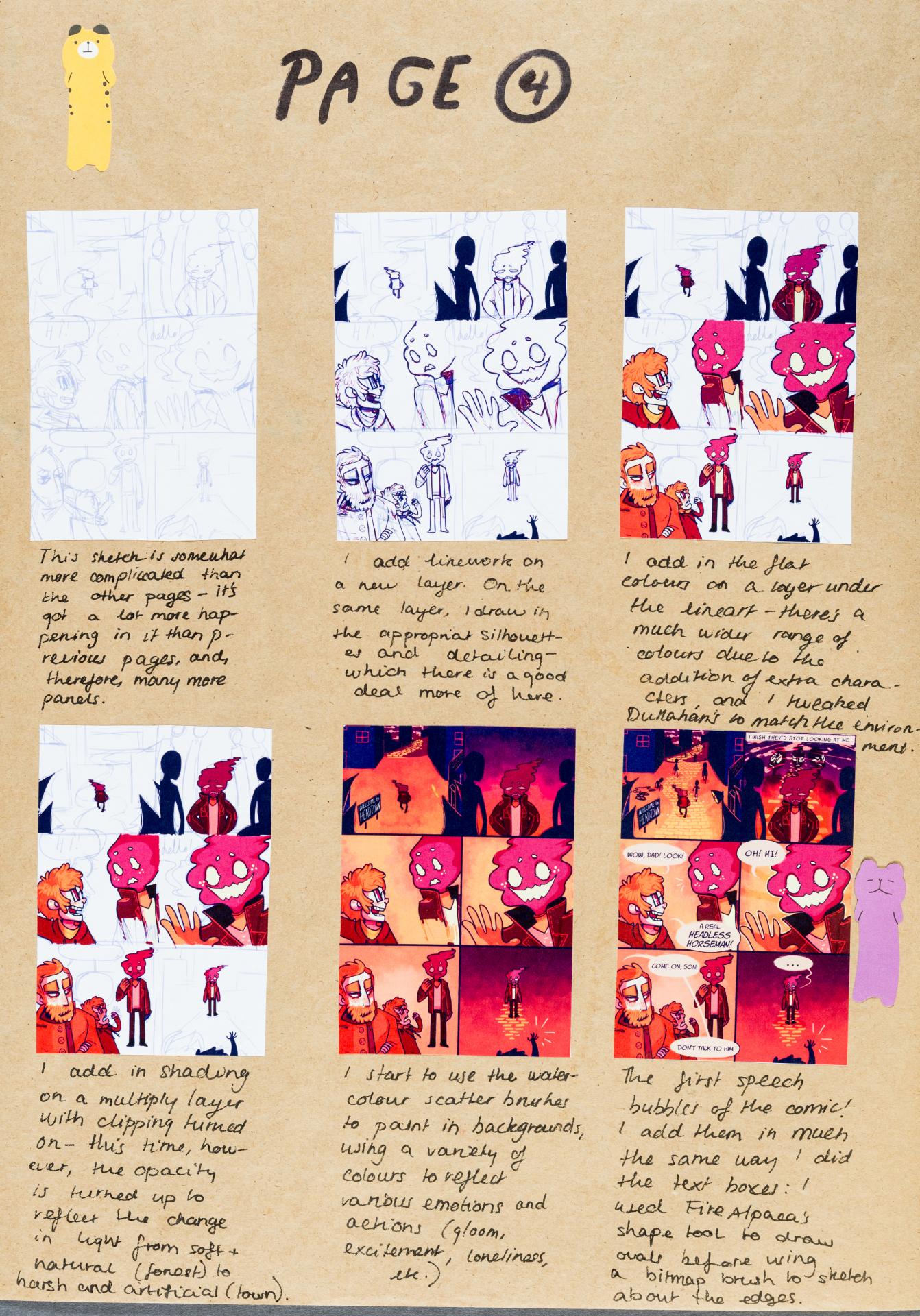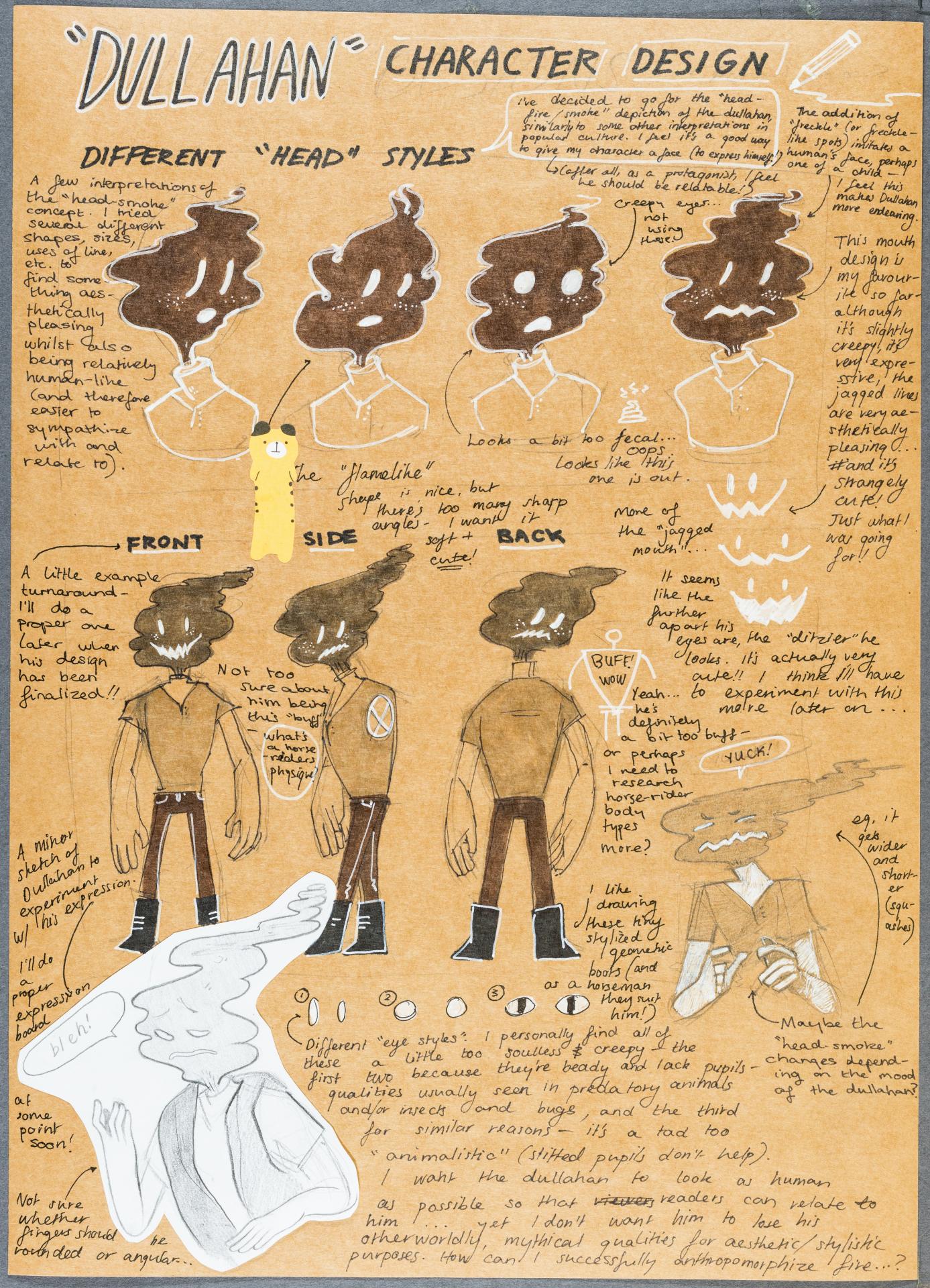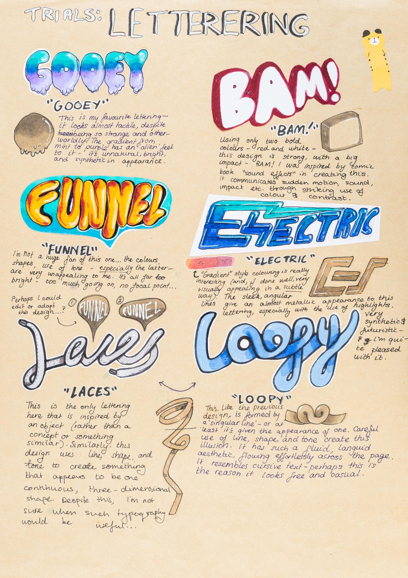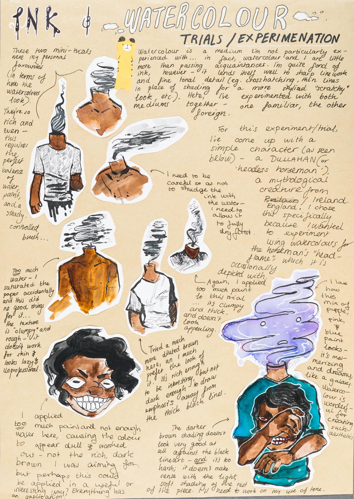Emerson began his folio by completing several concept maps of thoughts and ideas to draw upon over the year. These related to themes that involved an individual’s search for true identity, love and acceptance. He created lists of possible ideas, making connections between a range of areas of interest, including various narrative structures.