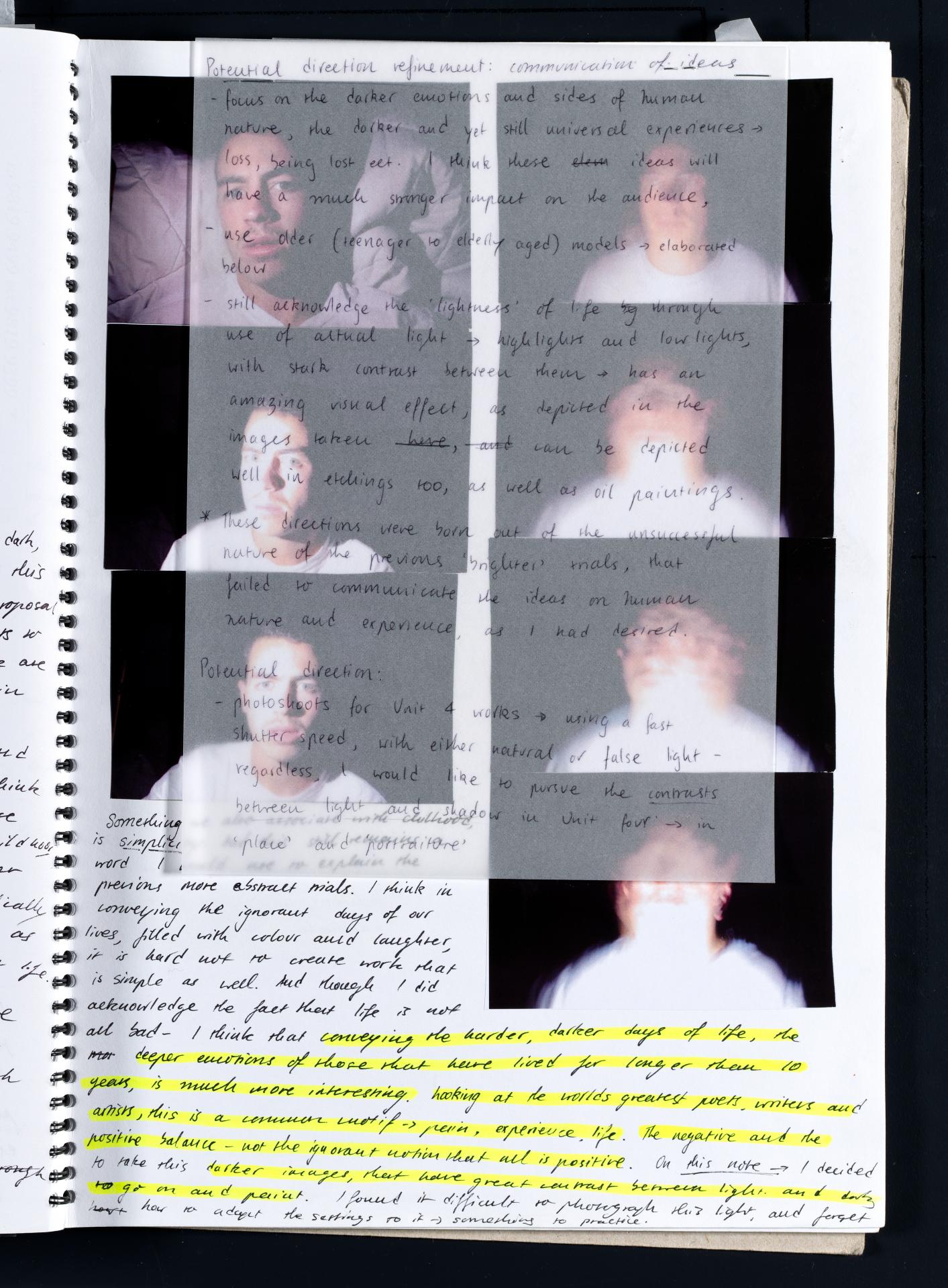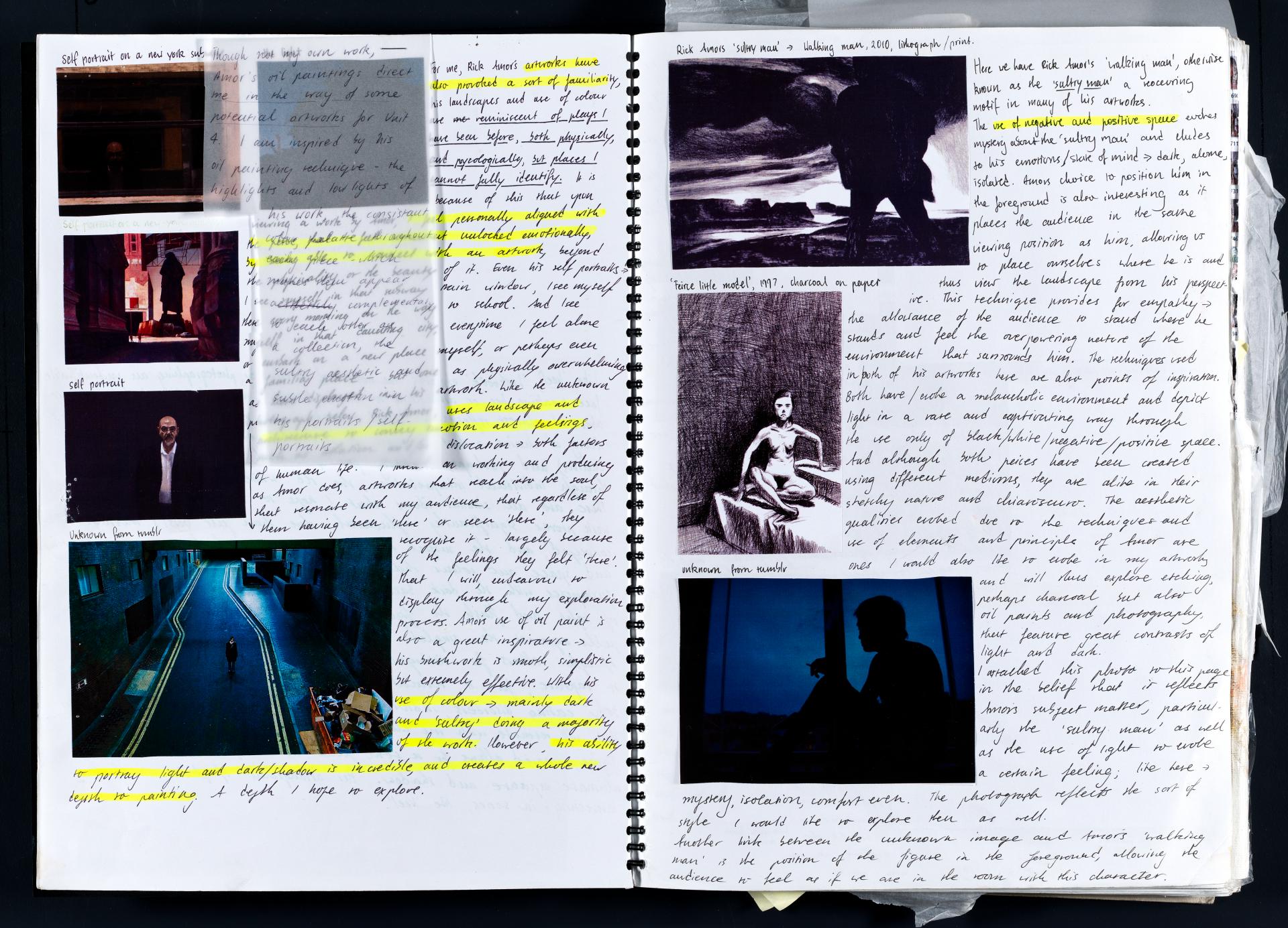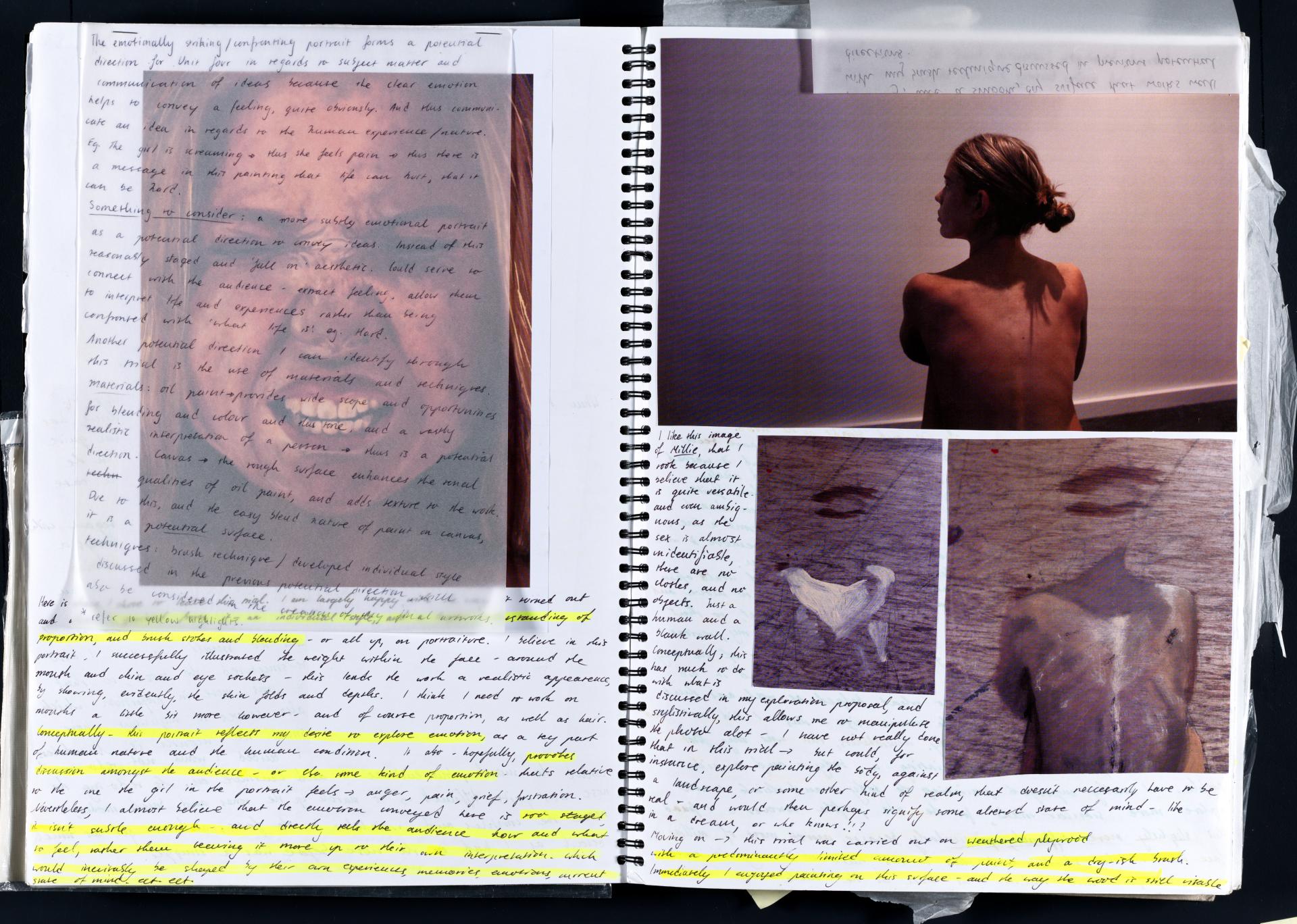 Harriet has demonstrated highly creative and insightful approaches to subject matter. She has developed a range of ideas and conceptual possibilities. Harriet has researched artists that inspire her and she is discussing these artists in terms of how she will use similar ideas and techniques within her own art works – highlighted areas show this.