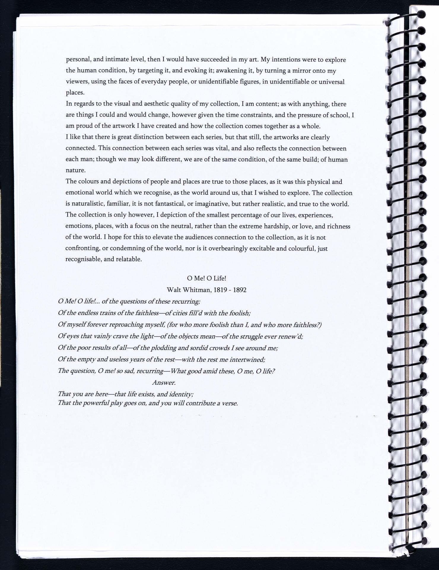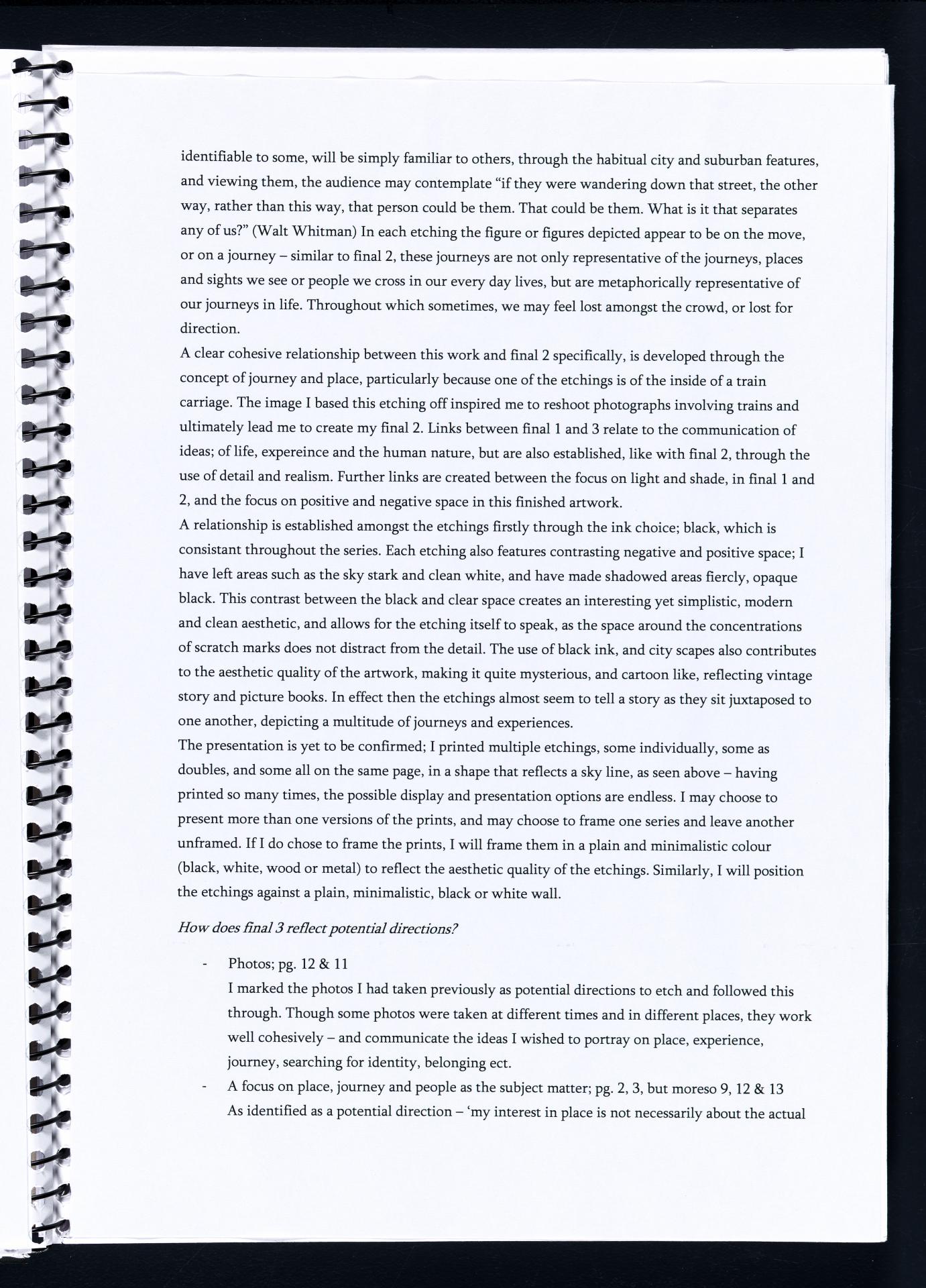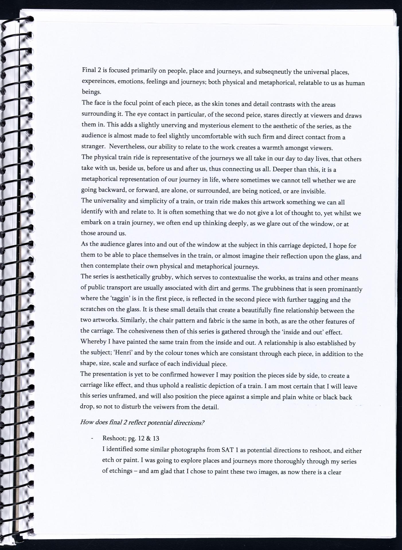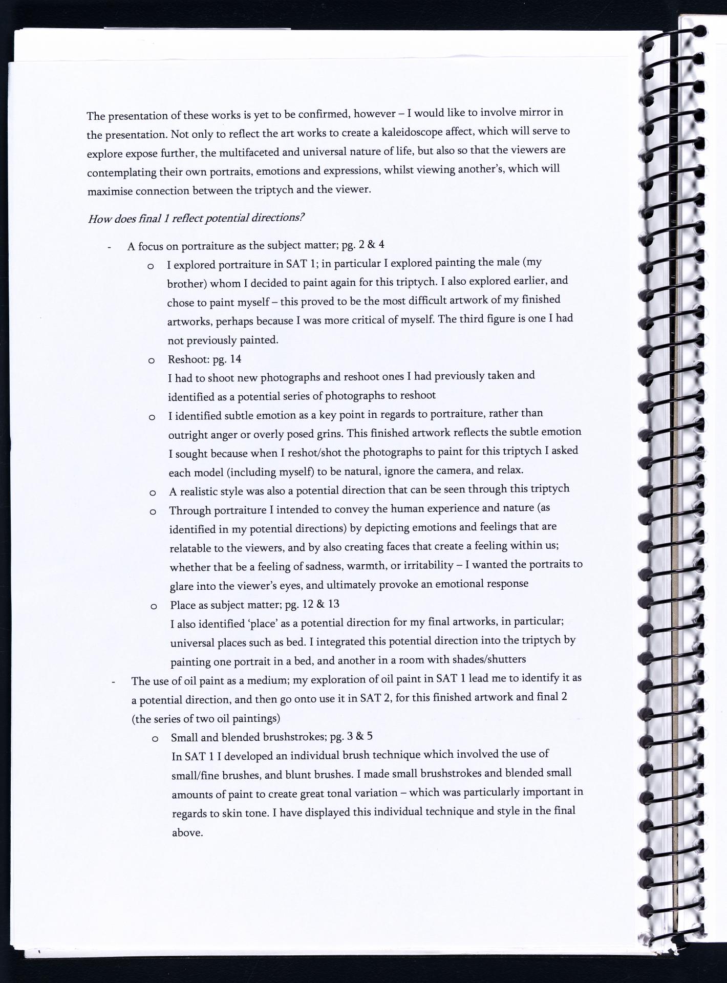 Harriet has demonstrated highly creative and insightful approaches to subject matter. She has developed a range of ideas and conceptual possibilities. Harriet has researched artists that inspire her and she is discussing these artists in terms of how she will use similar ideas and techniques within her own art works – highlighted areas show this.