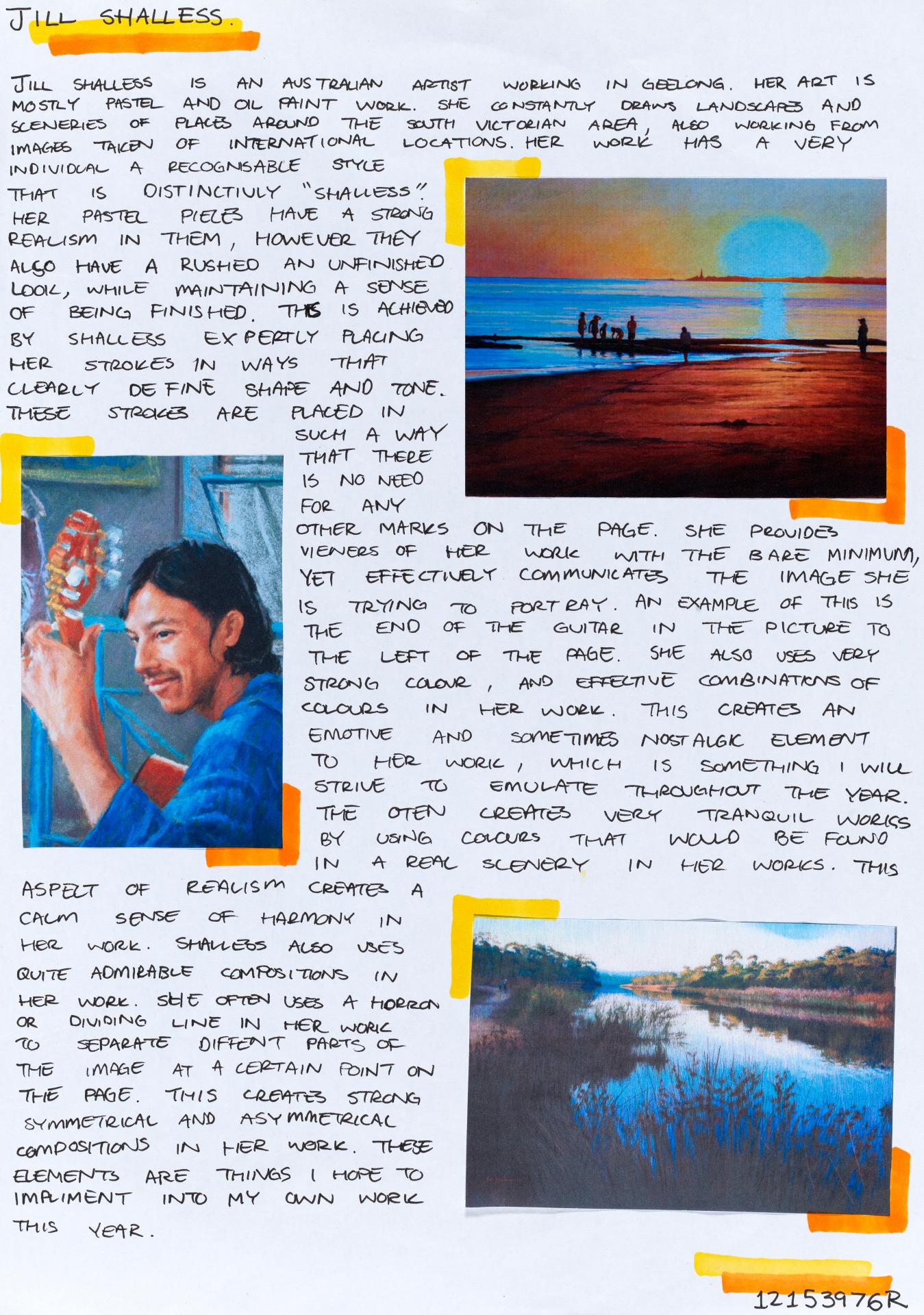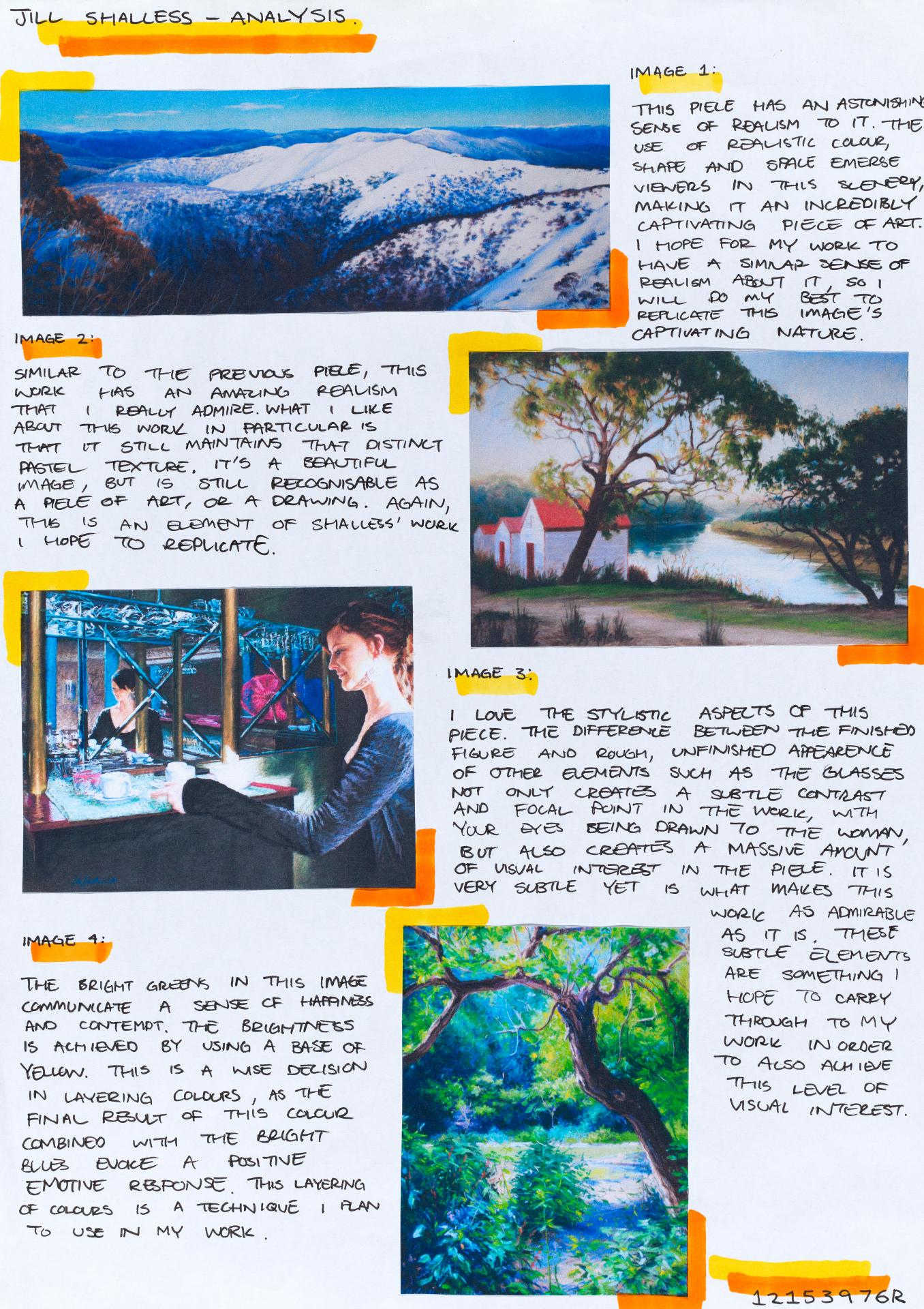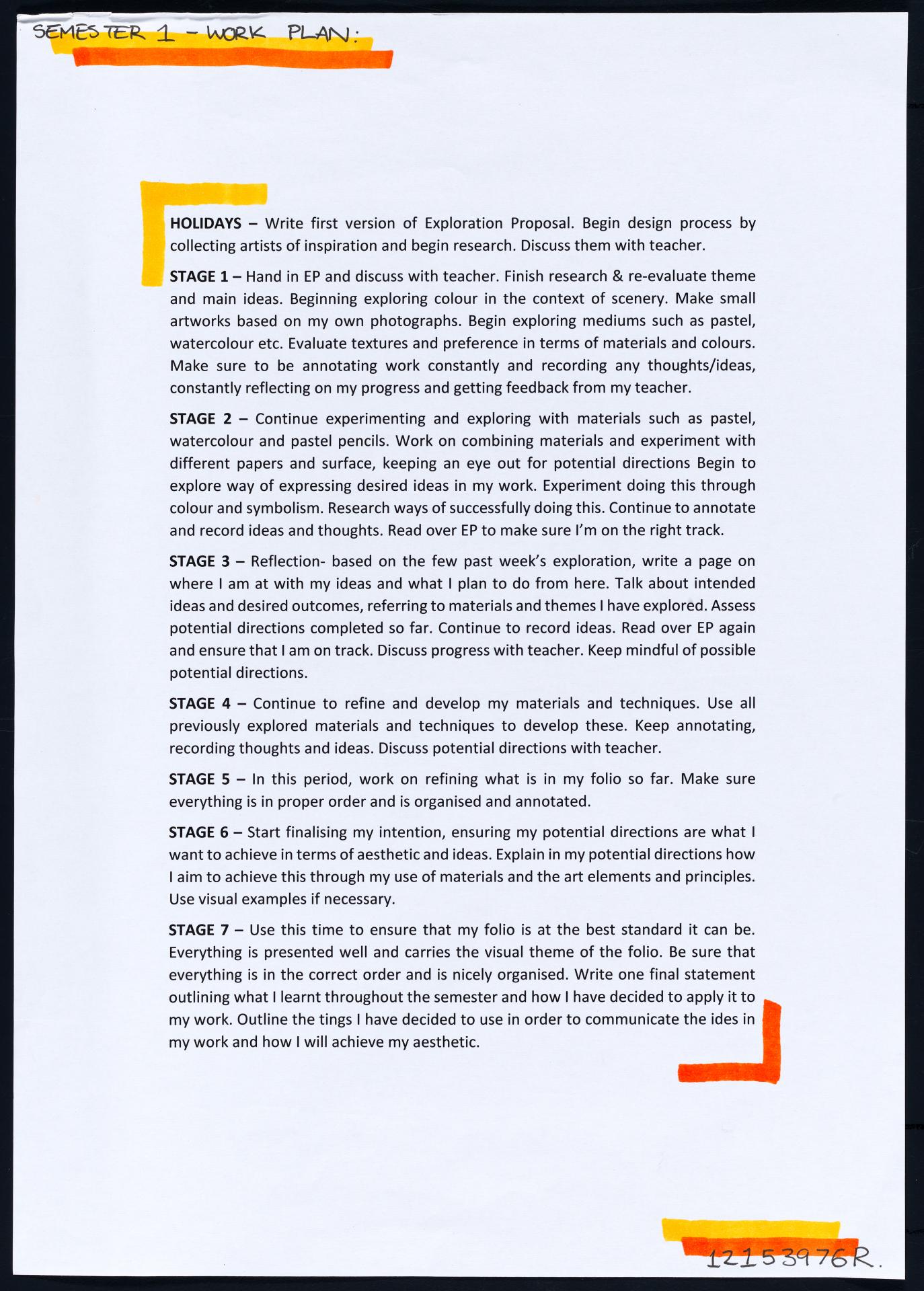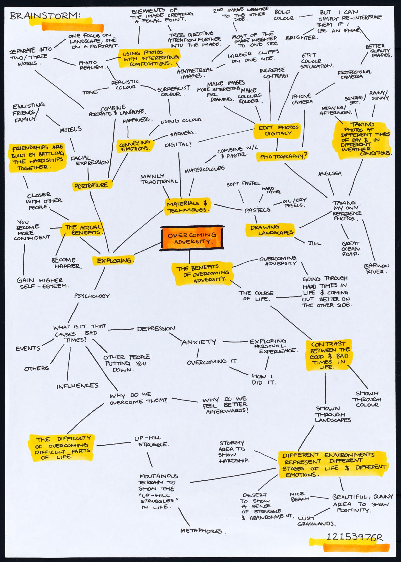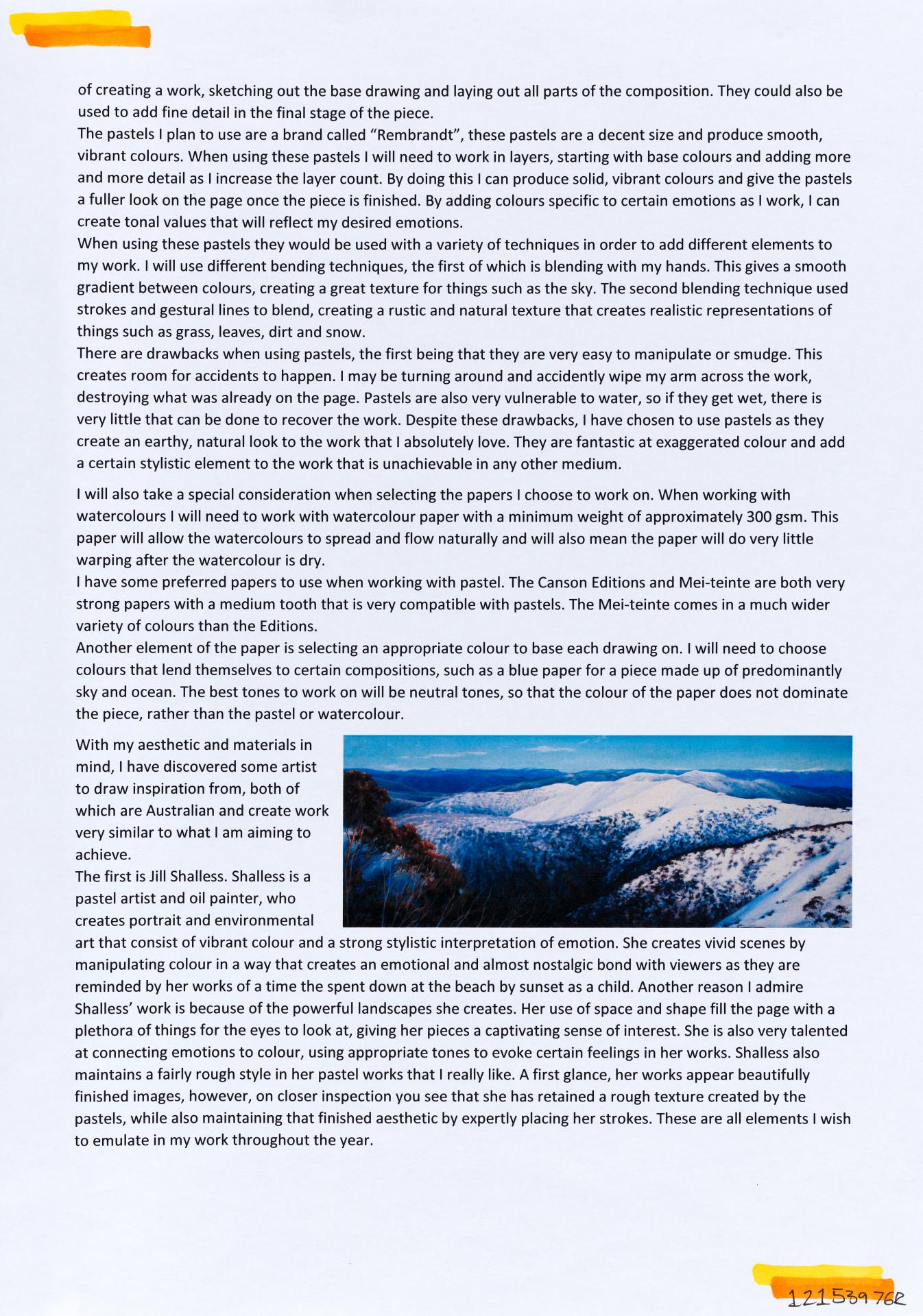 In his exploration proposal Jack has been able to provide detailed evidence of how he wants to develop his design process. He has described the focus and subject matter he will explore throughout his design process: “Overcoming Adversity” and how people do this. Jack has included personal imagery as part of his proposal to show the kind of work that he would like to make and to show how colour creates different moods and feelings within artworks. Jack describes how he wants to use the environment to explore emotions and review his own personal experiences.