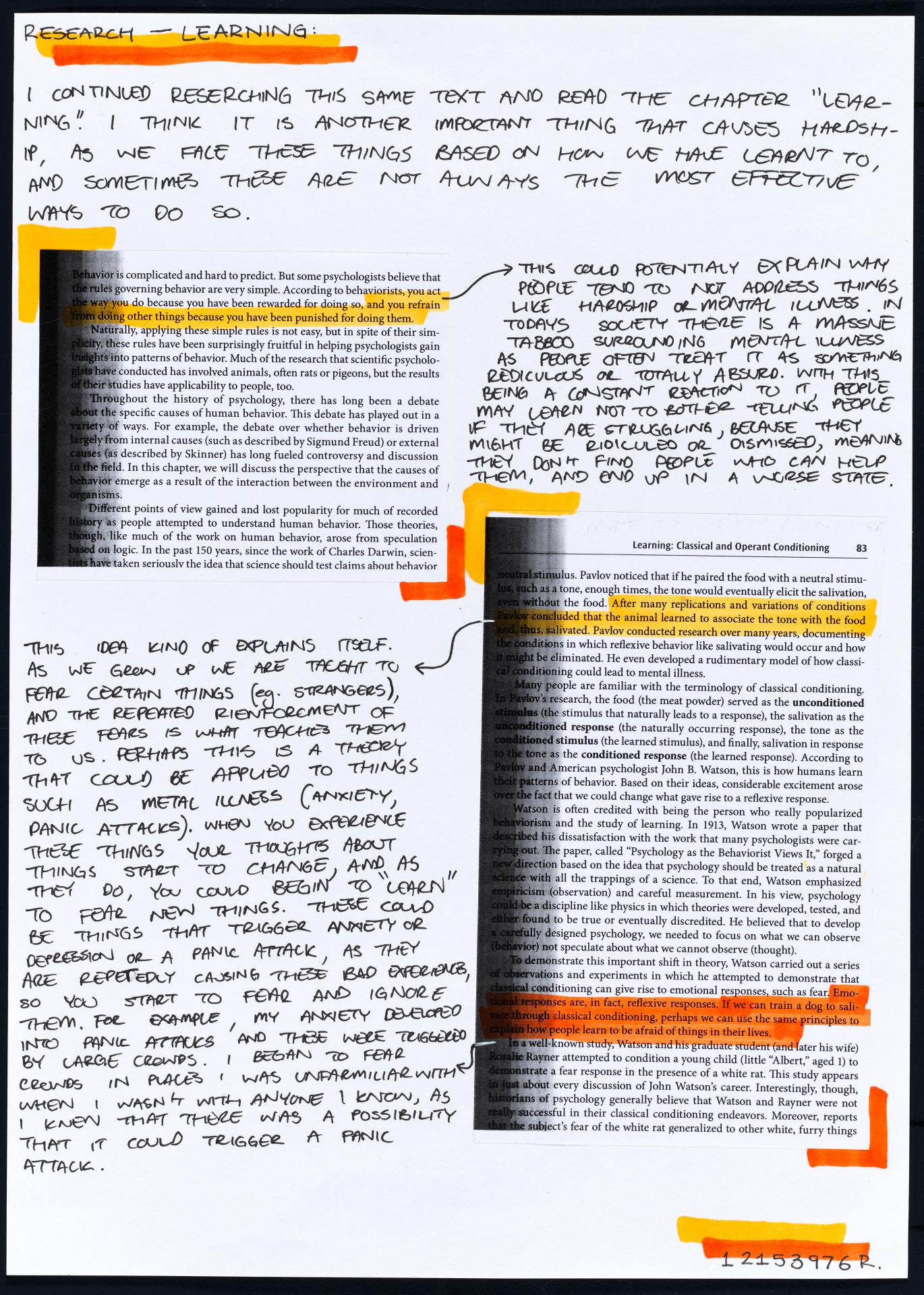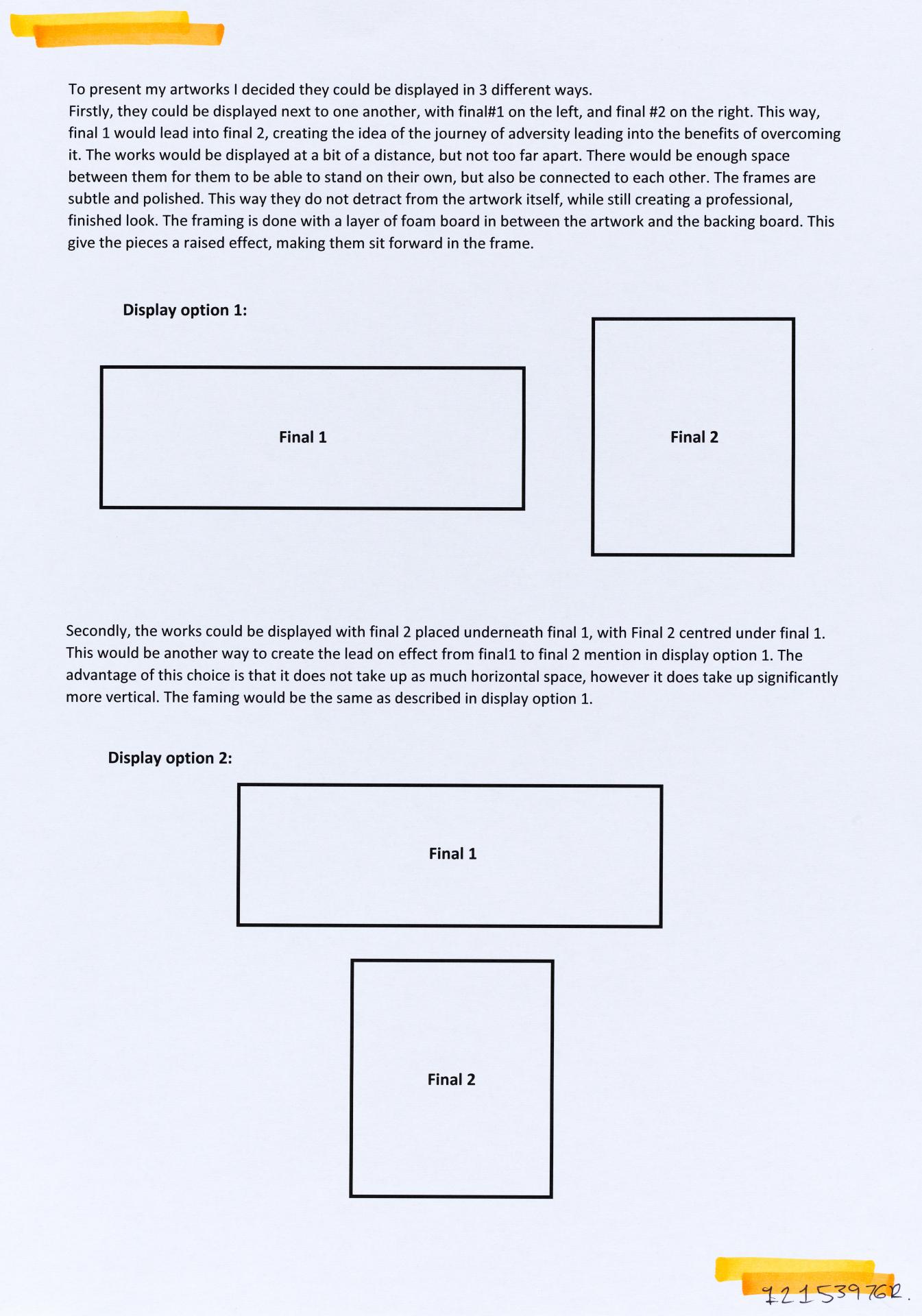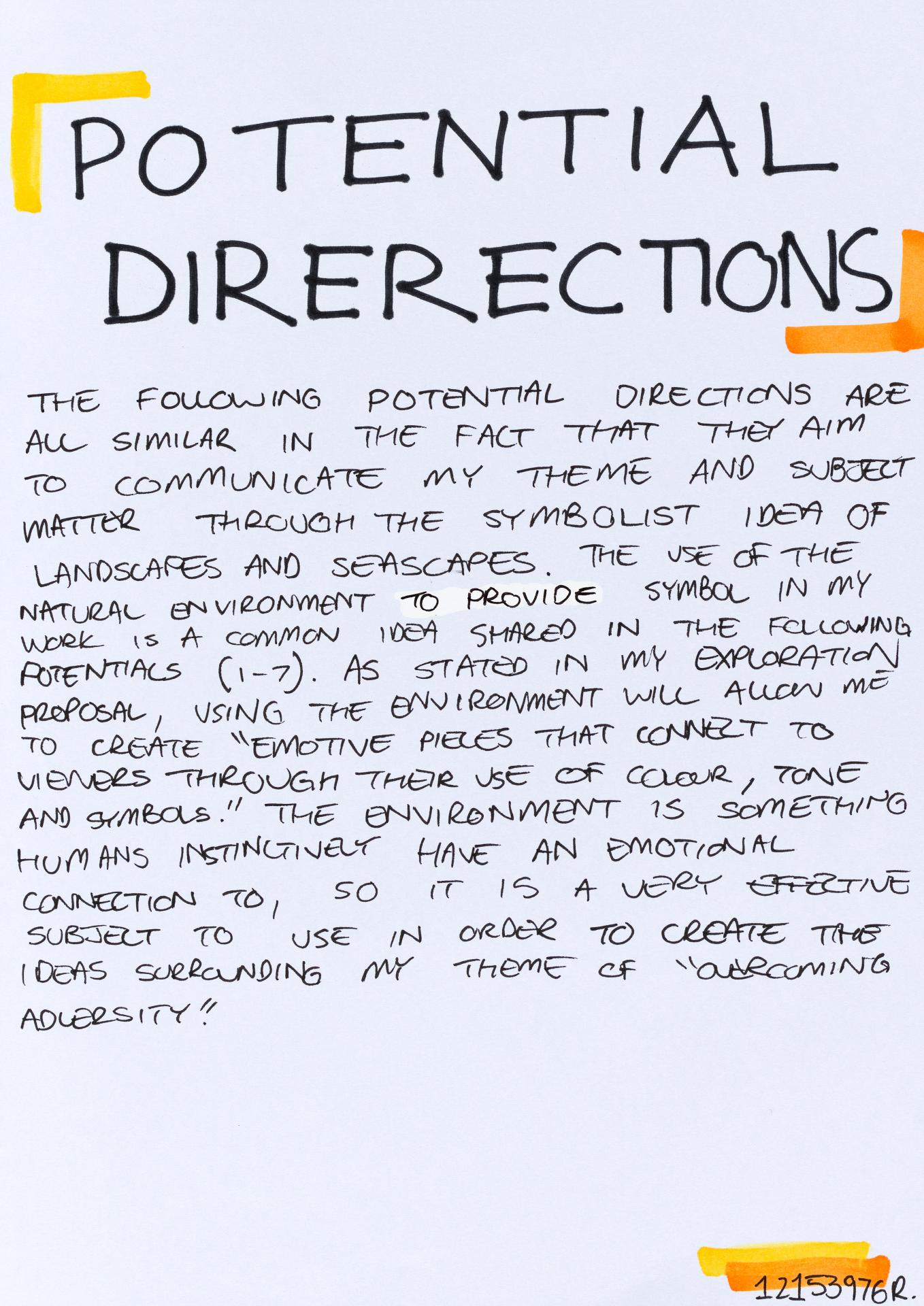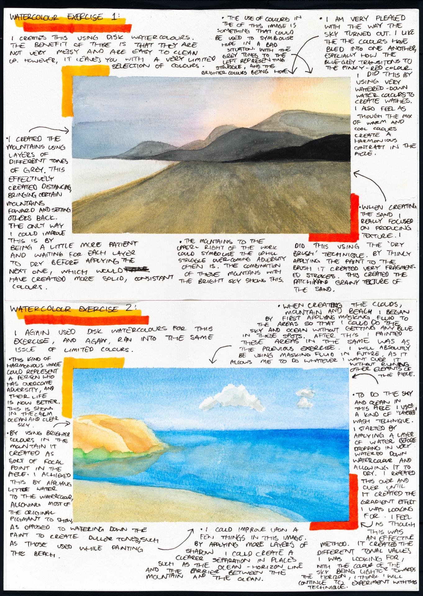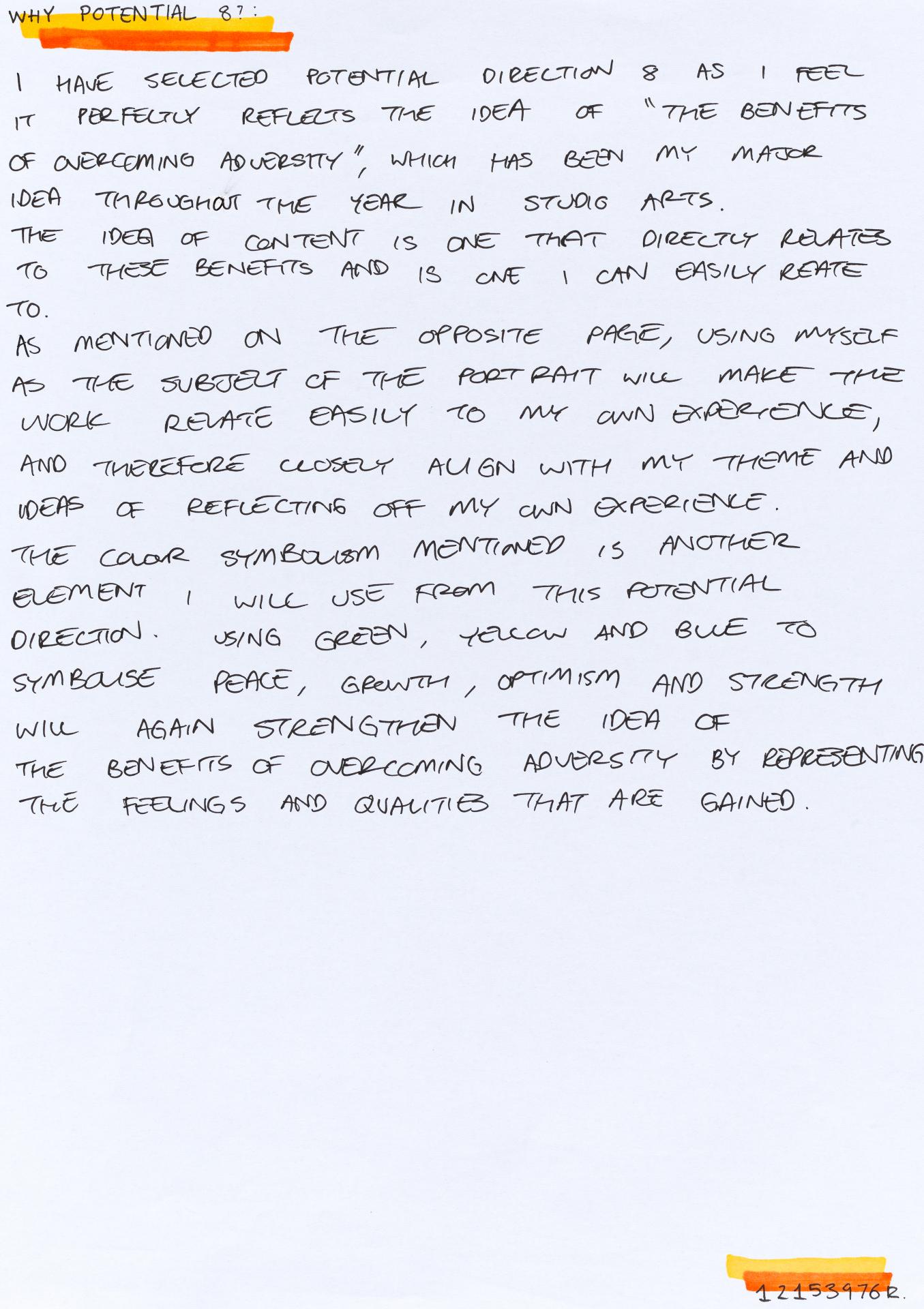 In his exploration proposal Jack has been able to provide detailed evidence of how he wants to develop his design process. He has described the focus and subject matter he will explore throughout his design process: “Overcoming Adversity” and how people do this. Jack has included personal imagery as part of his proposal to show the kind of work that he would like to make and to show how colour creates different moods and feelings within artworks. Jack describes how he wants to use the environment to explore emotions and review his own personal experiences.