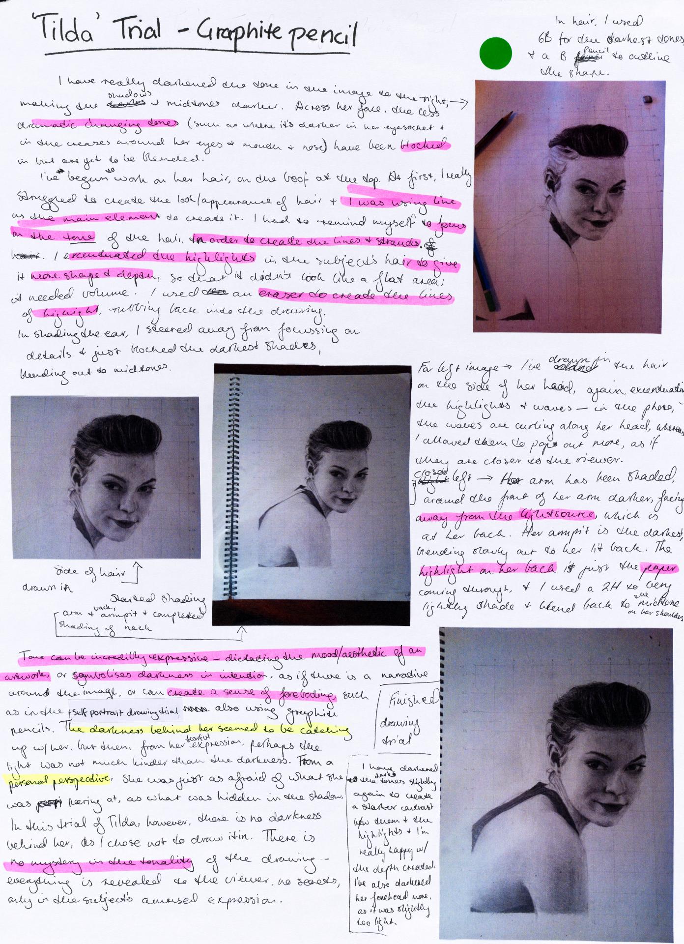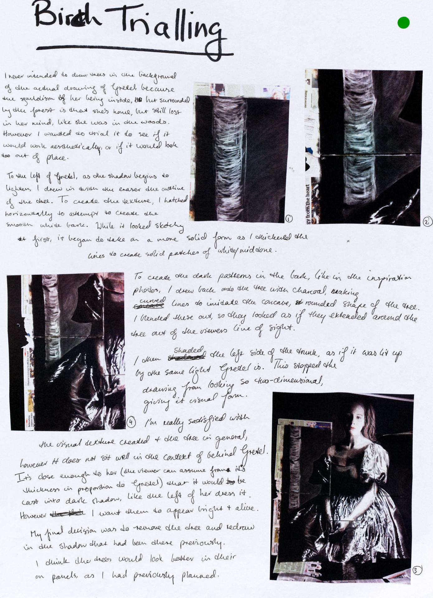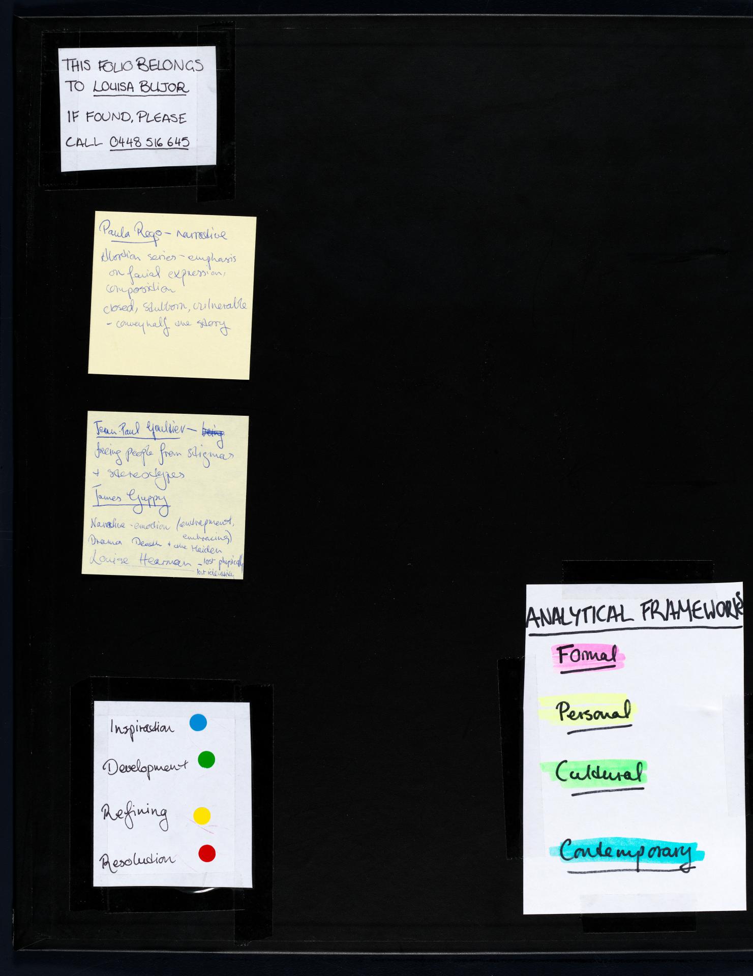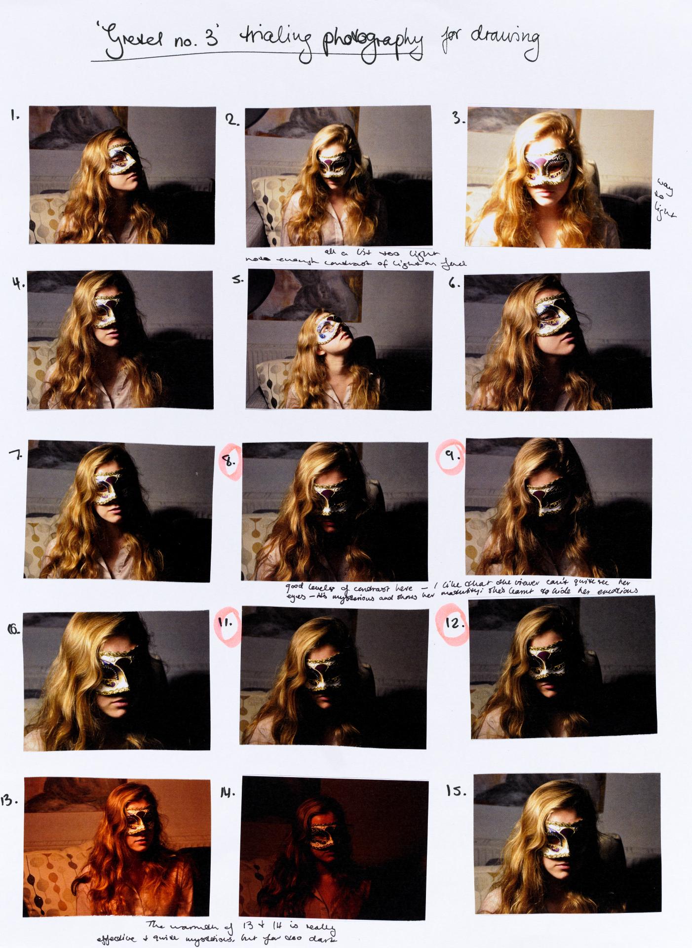 Louisa chose to start her personal exploration through a collection of ideas and mind maps. Her initial concepts and investigation are being refined and a focus on Commedia dell’arte (a form of theatre involving masks) commences. Her notes reflect possible ideas of exploration creating connections between concepts and practical artmaking.