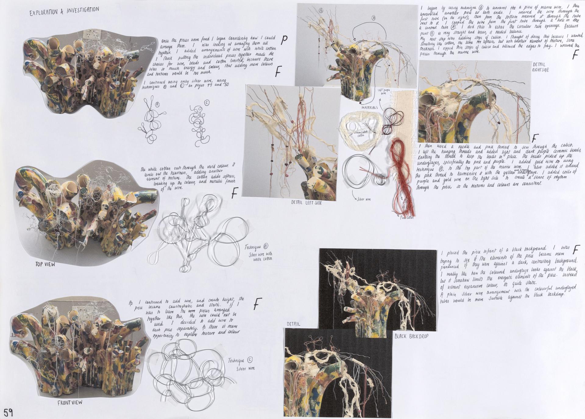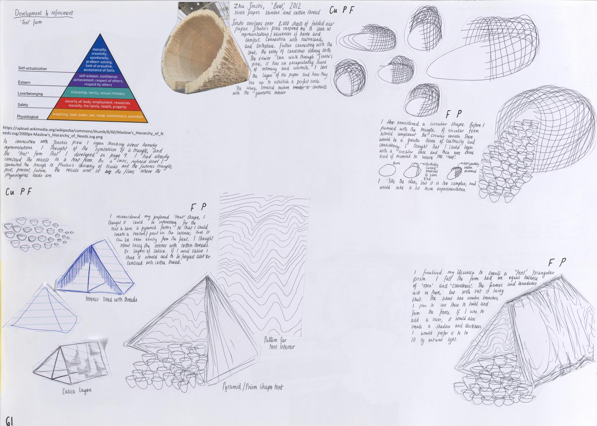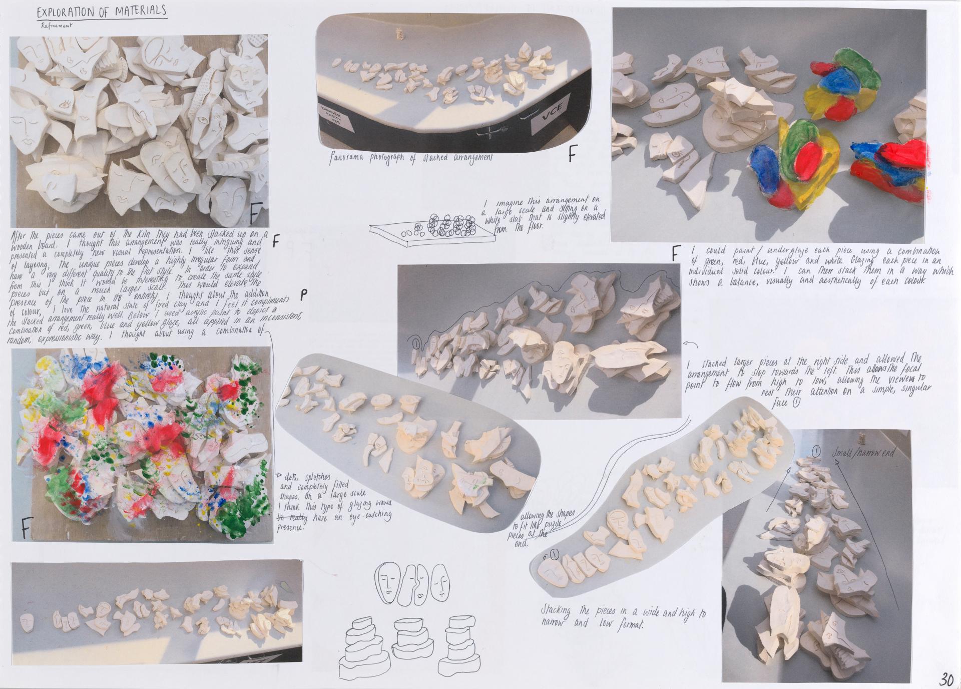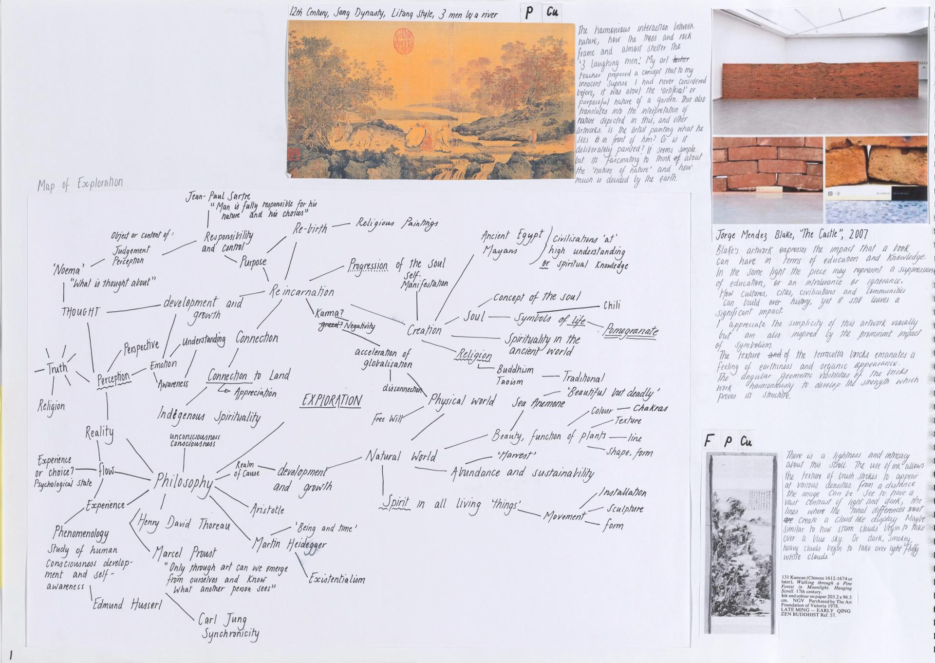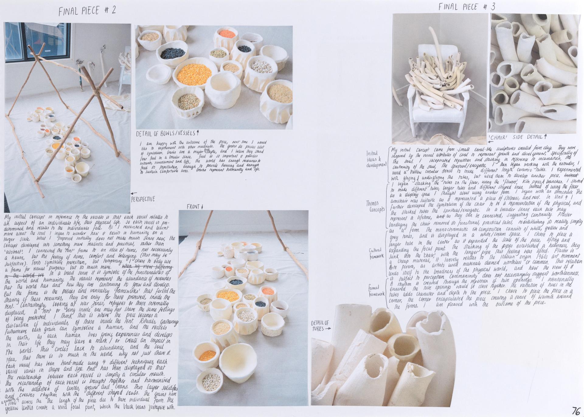 Lana’s exploration of personal responses and ideas focuses on the individual and the notion of soul. Using mind maps, brainstorms and thumbnail sketches she begins to develop a conceptual and practical investigation. Here we see a focused exploration of personal ideas that continues throughout her body of work providing evidence of the exploration of concepts, skills and directions.