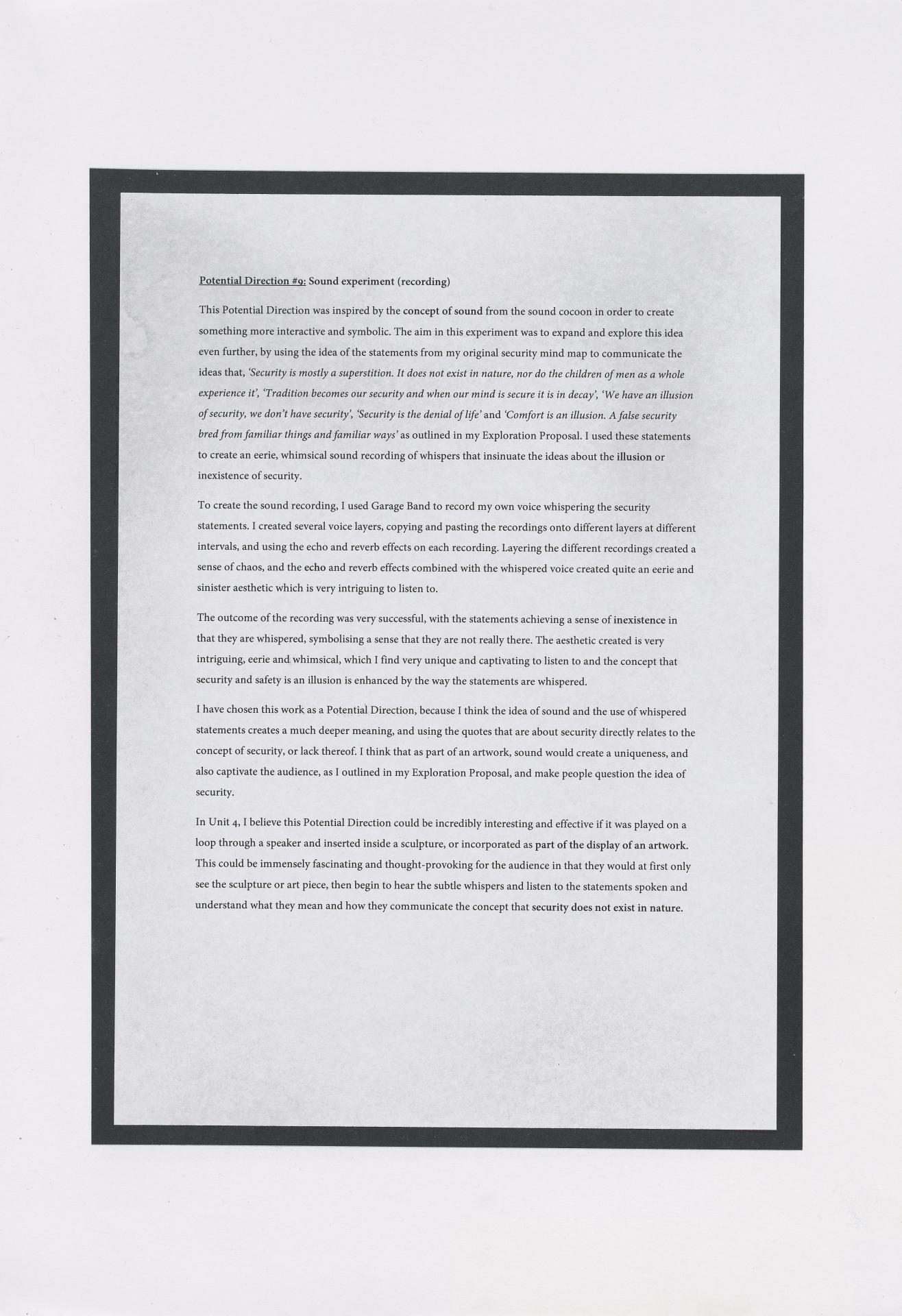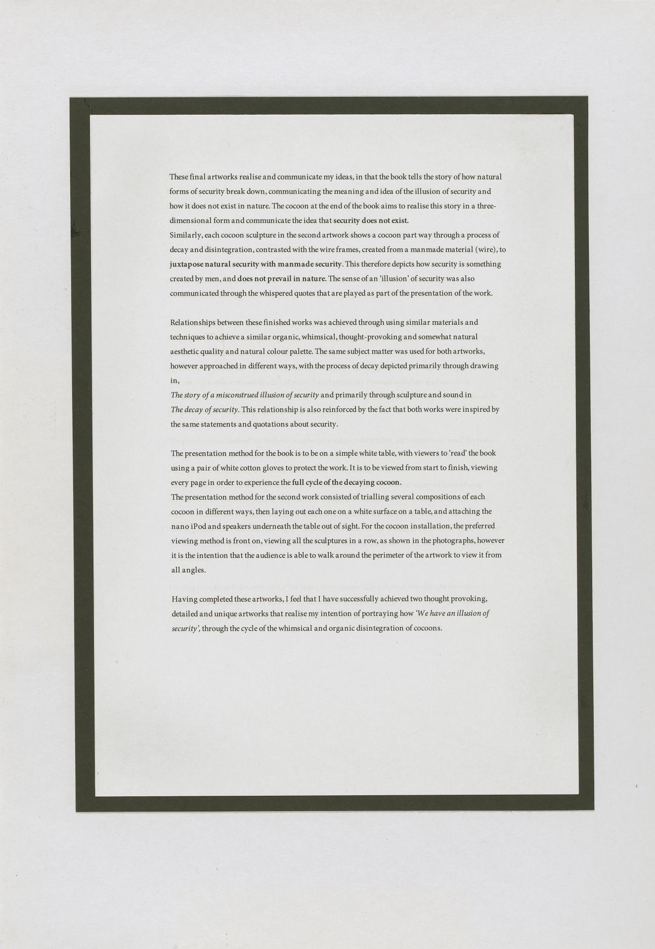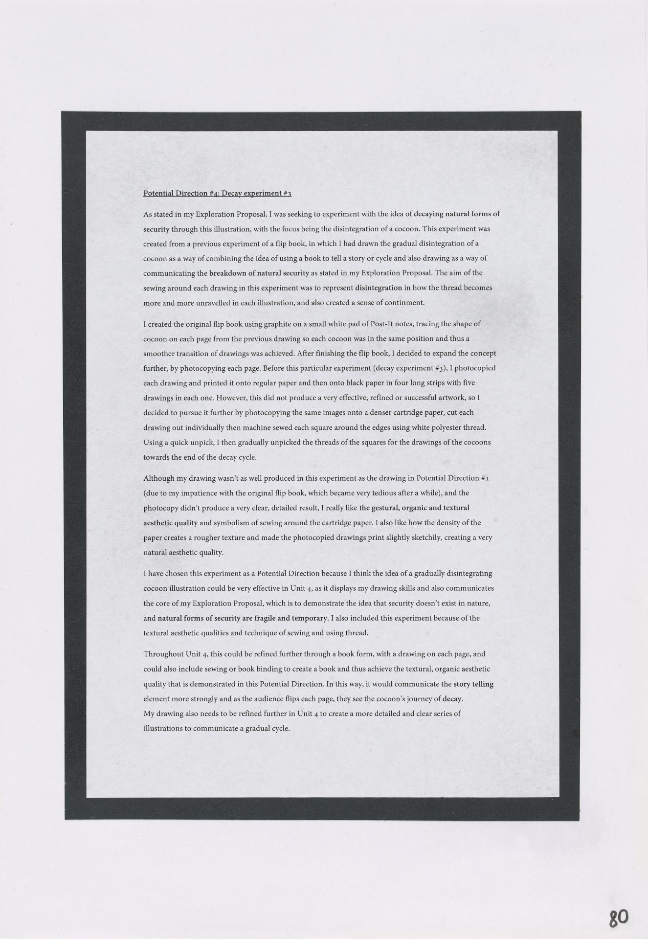 Ruby has completed a comprehensive, highly detailed exploration proposal. (Please refer to current study design for word limit) Ruby has been able to provide detailed evidence of how she will to develop her studio process. She has described the focus and subject matter she will explore throughout this process.